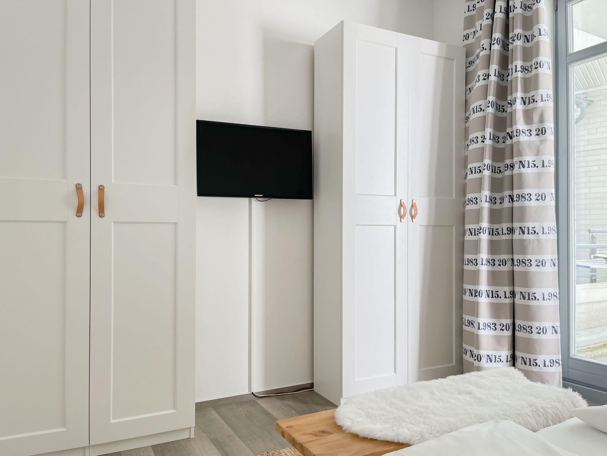 Die Ferienwohnung Promenaden Loge befindet sich in der ersten Etage und bietet auf 75 qm mit 2 Schlafzimmern ausreichend Raum für 4 Personen, um einen entspannten Urlaub zu verleben, das Auto kann getrost stehen bleiben. Besonders hervorzuheben ist, dass die Wohnung über 2 Balkone verfügt, einer in Ostausrichtung vor dem Wohnbereich zur Seeseite und einer in Westausrichtung vor dem Hauptschlafzimmer nach hinten heraus, d.h. zur abgewandten Seite der Promenade. Im großzügigen Wohnraum erwartet Sie ein gemütliches Sofa, TV, WLAN und der vorgelagerte Balkon, Ihre private Loge, um das lebhafte Treiben auf der Promenade zu beobachten. Der integrierte Essbereich bietet ausreichend Platz für 4 Personen zum gemeinsamen Essen und Beisammensein. In der anschließenden Wohnküche, die über alle technischen Geräte wie Ceranfeld, Backofen, Spülmaschine und eine gute Ausstattung verfügt, kann gemeinsam gekocht werden. Es gibt 2 separate Schlafzimmer, die mit Doppelbetten (180x200 und 160x200), Kleiderschränken, Verdunkelungsvorhängen (nicht blickdicht) und TV ausgestattet sind. Das moderne Bad ist großzügig angelegt und verfügt über eine Badewanne kombiniert mit Dusche, einen Handtuchtrockner und ein Fenster sowie einer Waschmaschine. Zur Ferienwohnung gehört eine fester Tiefgaragen Stellplatz (höhe 1,90 m) und das Haus verfügt selbstverständlich über einen Fahrstuhl. [nbsp]