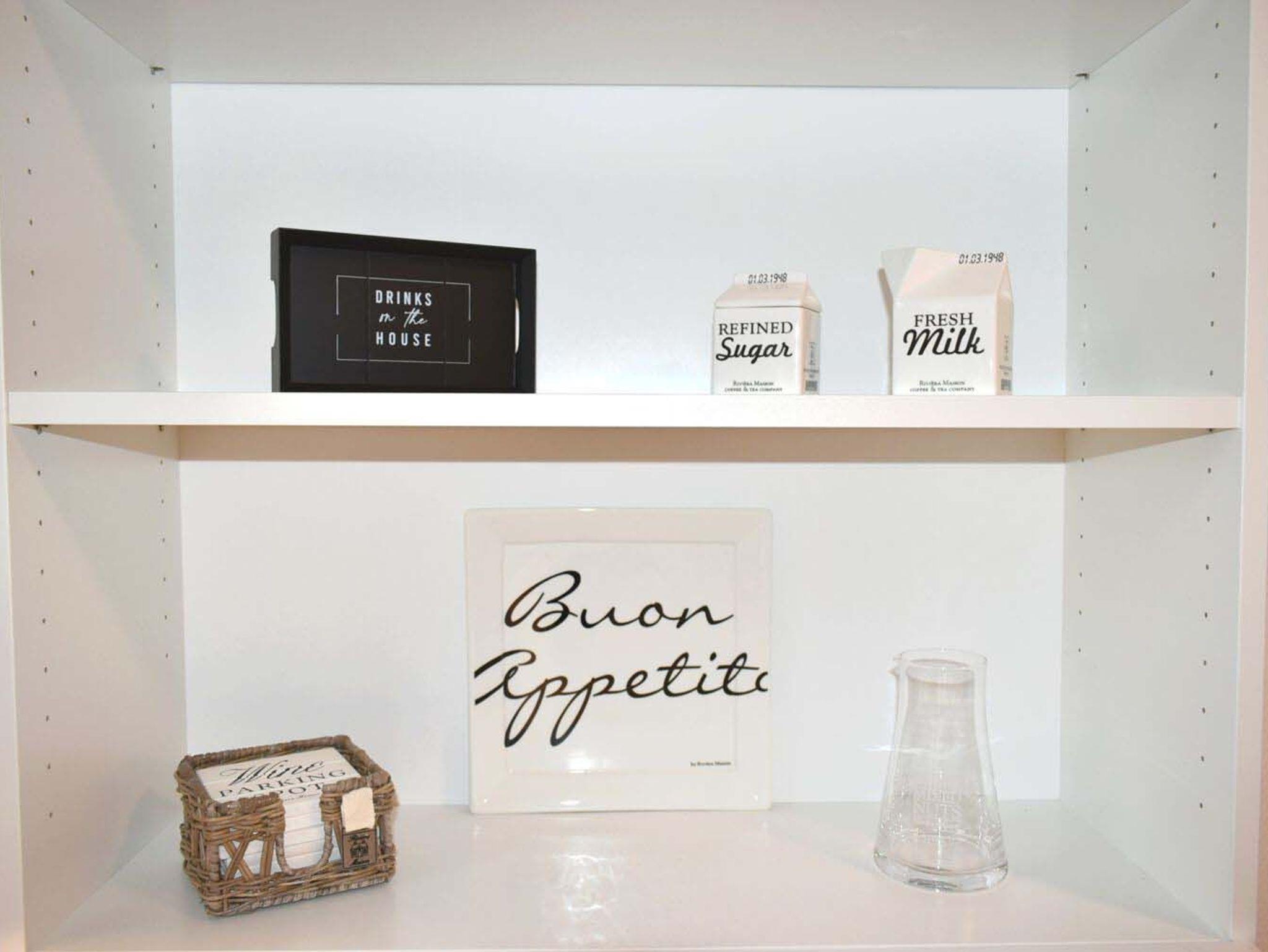 Küche: 4 Plattenherd mit Ceranfeld und Backofen, Dunstabzugshaube, Einbauküche, Geschirr, Kaffeemaschine, Kochtöpfe, Kühlschrank mit 3* Gefrierfach, Mikrowelle, Nespresso Maschine, Rollregal, Spülmaschine, Toaster, Wasserkocher