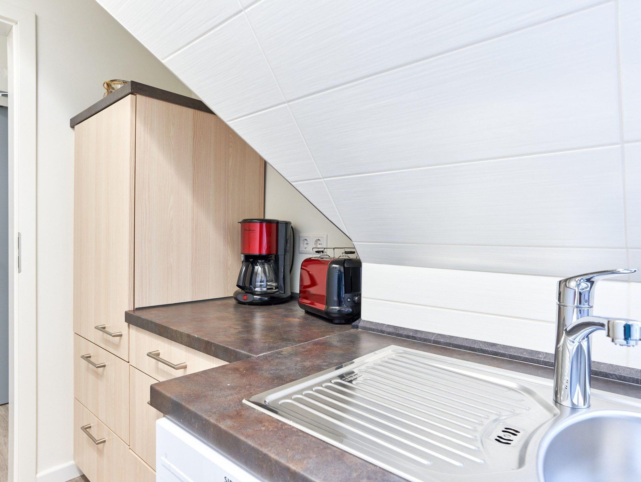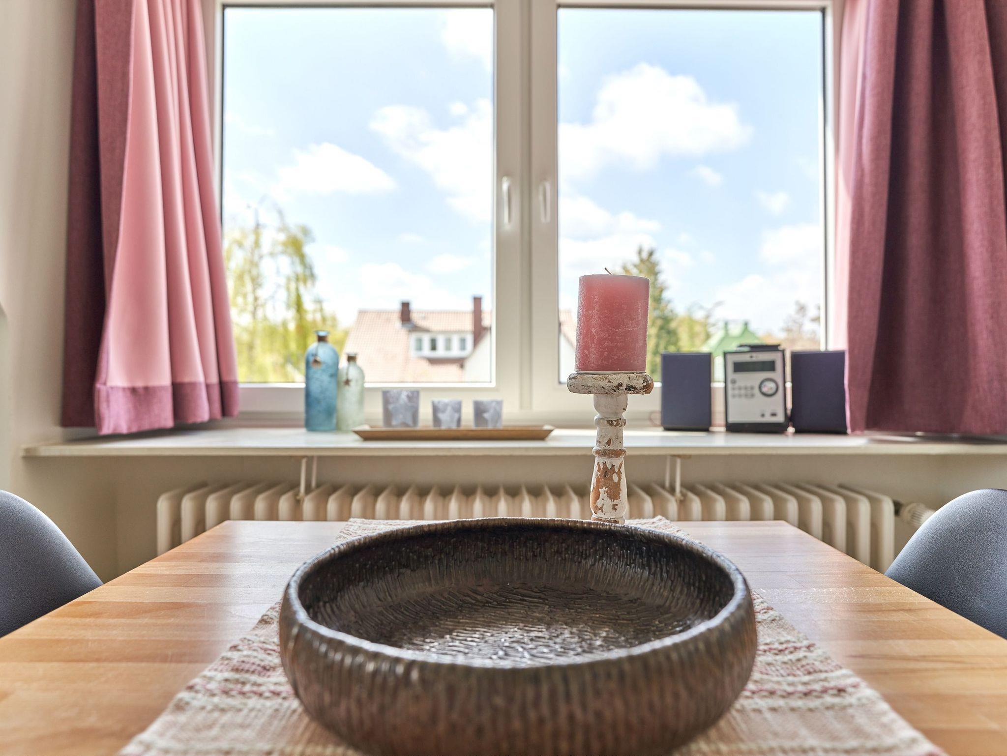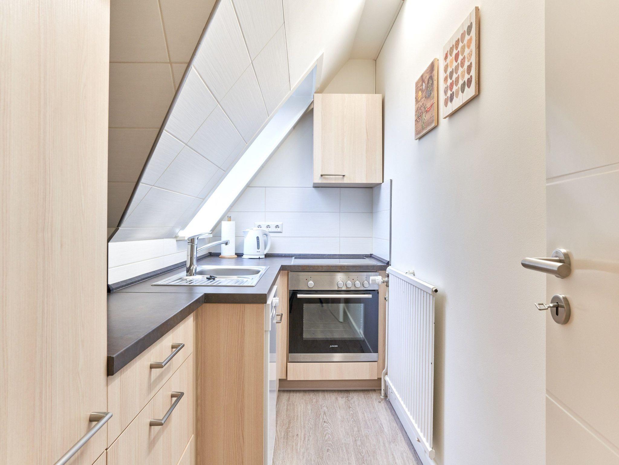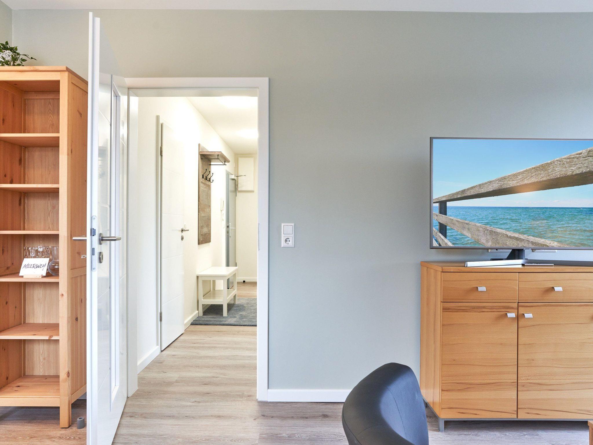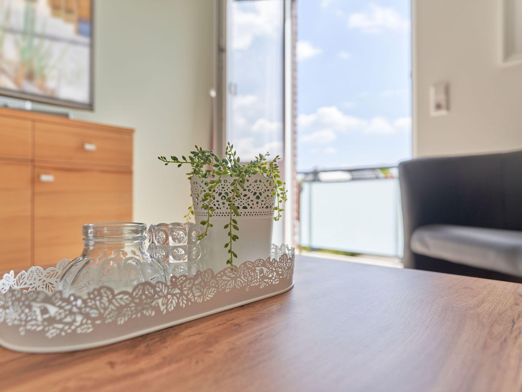 Dieses in 2022 umfassend renovierte Apartment teilt sich auf in Küche, Flur, Bad, Schlafzimmer, Wohnzimmer und Balkon Die Einbauküche ist komplett ausgestattet und im neu gestalteten, kleinen aber feinen Badezimmer finden Sie eine Echtglasdusche, neue Badobjekte sowie einen Badheizkörper für Handtücher. Der moderne Wohnbereich ist mit großzügigem Erkerfenster, Sofa (mit Schlafoption für eine dritte Person), Flachbildschirmfernseher, sowie einem Essplatz ausgestattet. Zusätzlichen Stauraum bieten eine Kommmode sowie ein Bücherregal. Im modern eingerichteten Schlafzimmer finden Sie ein Doppelbett, einen offenen Kleiderschrank und einen zweiten Fernseher. Verdunkelungsgardinen sorgen in Wohn- und Schlafzimmer für eine gemütliche Atmosphäre und ungestörten Schlaf.