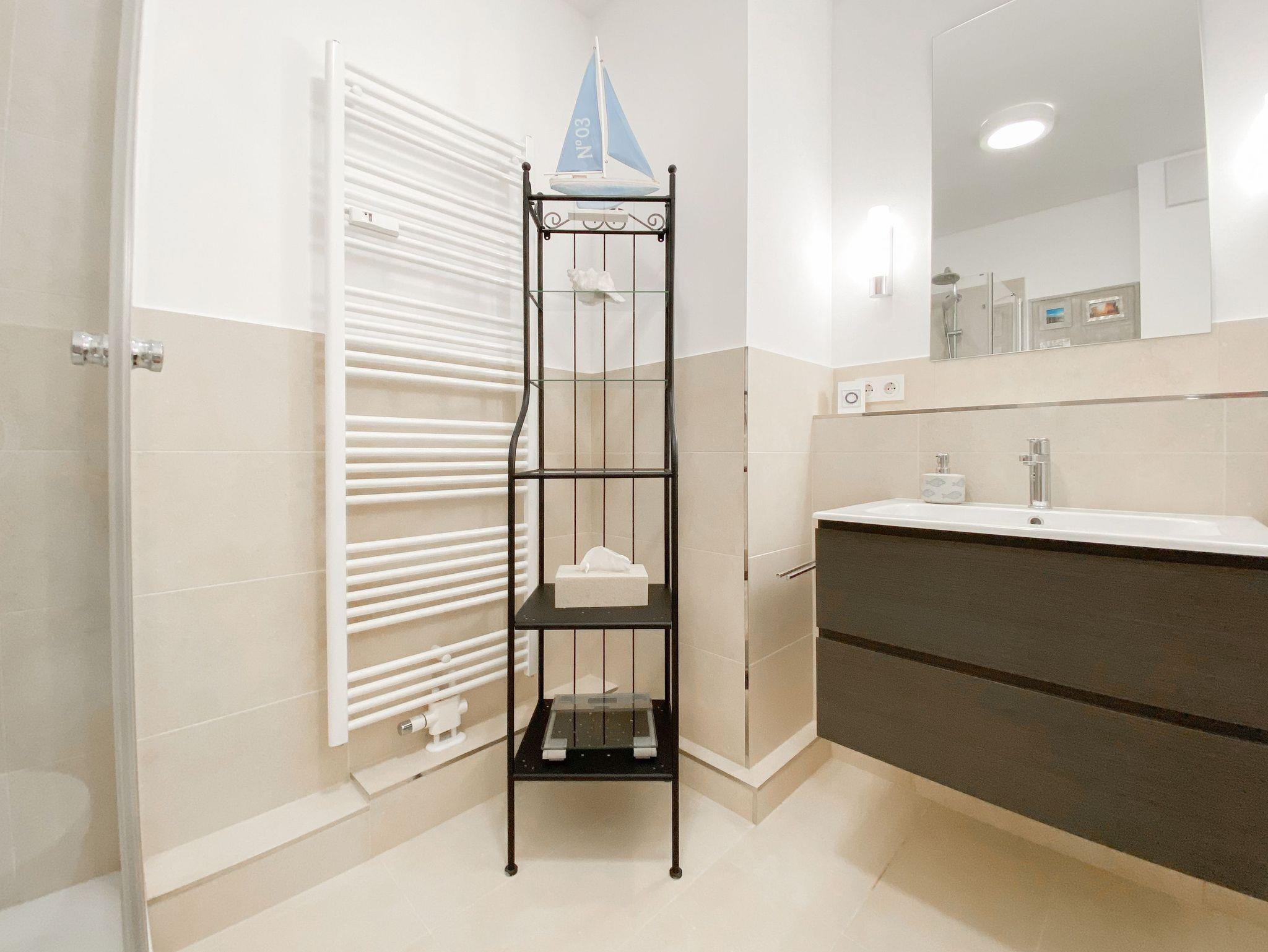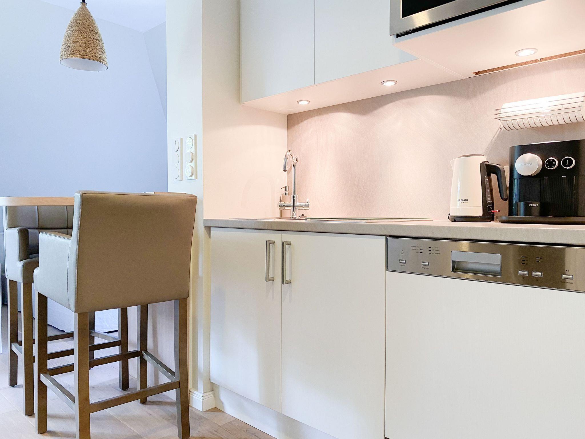 Klein aber fein, besticht das Studio mit vielen liebevollen Wohndetails und lädt 2[nbsp] Personen zum Wohlfühlen in Strandnähe ein. Es erwartet Sie ein heller, freundlicher Wohnraum mit bodentiefen Fensterflächen, geschmackvoll gestaltet und hochwertig eingerichtet mit einem gemütlichen Sofa[nbsp] und TV. Highlight ist der vorgelagerte Balkon mit Nachmittagssonne und herrlichem Blick bis zur Ostsee. Der Schlafbereich ist optisch durch einen Raumteiler getrennt und mit 2 Einzelbetten als Doppelbett mit hochwertigen Tempur Matratzen und Verdunkelungsvorhängen ausgestattet. Der Essbereich ist als Bartisch mit 2 bequemen Barstühlen gestaltet und schließt direkt an die moderne Küchenzeile an. Das hochwertige Bad verfügt über eine[nbsp] Dusche, Waschtisch, WC und Handtuchwärmer. WLAN steht selbstverständlich zur kostenlosen Nutzung zur Verfügung. Ein fester Tiefgaragen Stellplatz gehört zu der Wohnung. Fahrradkeller (eine Platzgarantie für Ihre Fahrräder besteht nicht) sowie Waschmaschine und Trockner (Münzgeräte)[nbsp] zur gemeinschaftlichen Nutzung sind vorhanden.