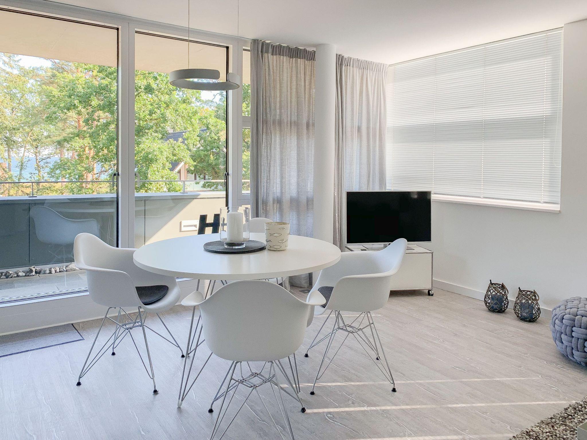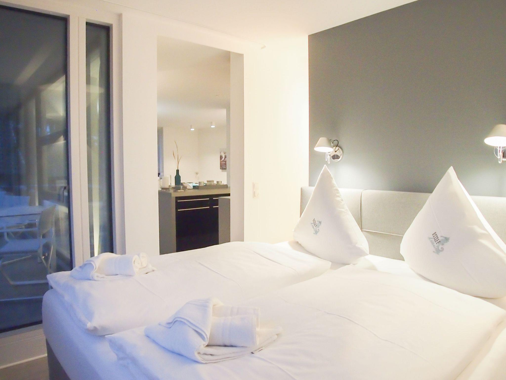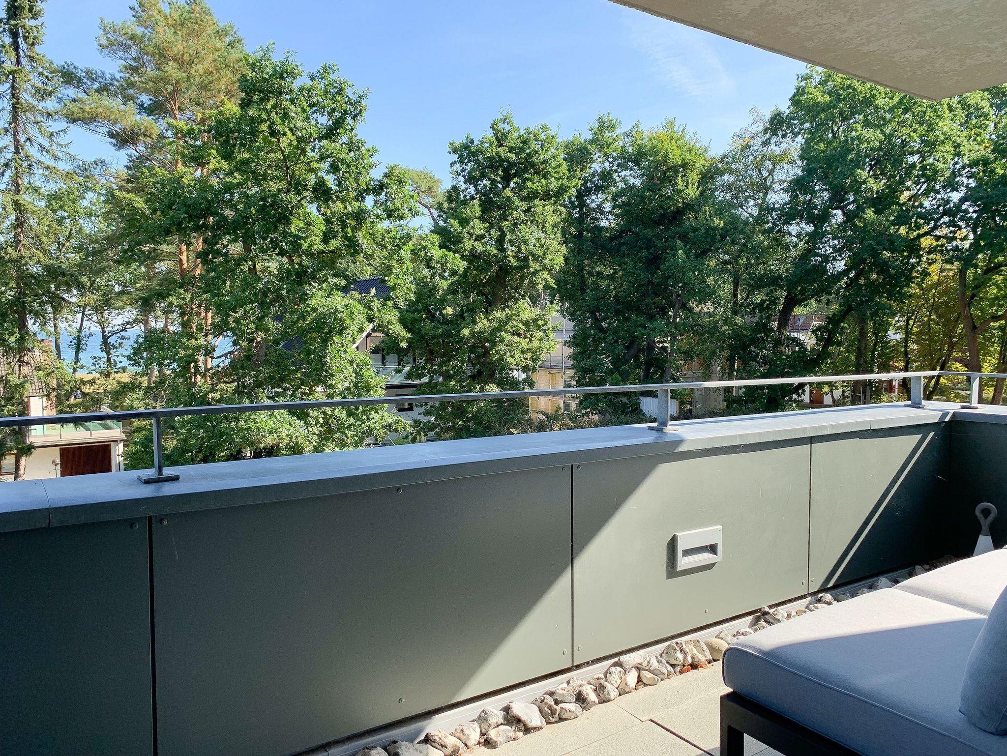 Die Ferienwohnung Sea View bietet zeitgemäßen Luxus für 2 Personen. Große Fensterflächen sorgen für helle Räumlichkeiten[nbsp] mit schönem Blick bis auf die Ostsee. Der großzügige, überdachte Balkon[nbsp] ist mit Garten- und Loungesofa ausgestattet und erstreckt sich über den gesamten Wohnbereich. Die Ferienwohnung verfügt über ein Schlafzimmer mit Boxspringbett und begehbarem Kleiderschrank, ein modernes Duschbad und einen offen gestalteten Wohn-, Essbereich mit integrierter Einbauküche. Die absolut hochwertige, designorientierte[nbsp] Einrichtung machen dieses Objekt zu etwas Besonderem.