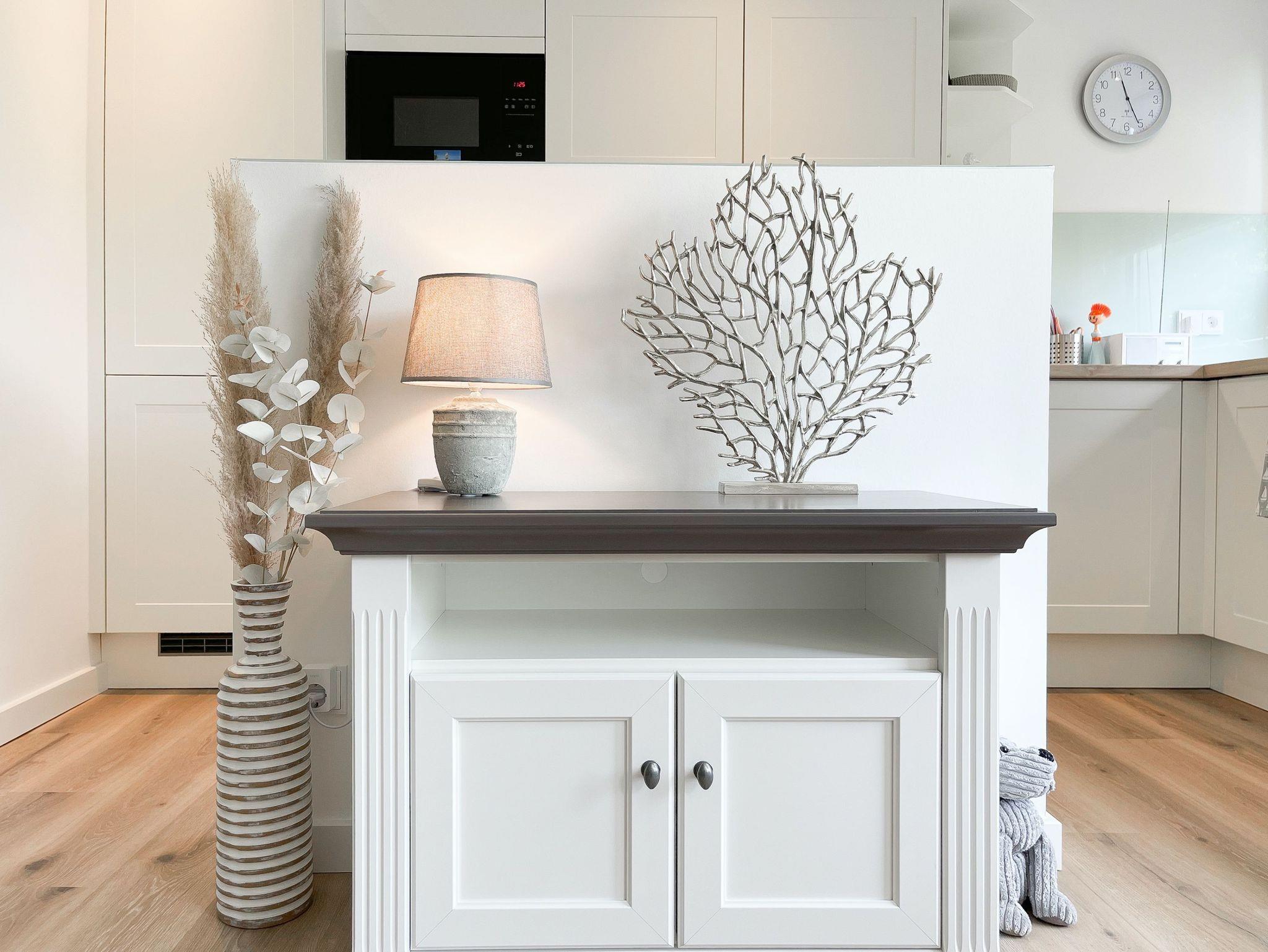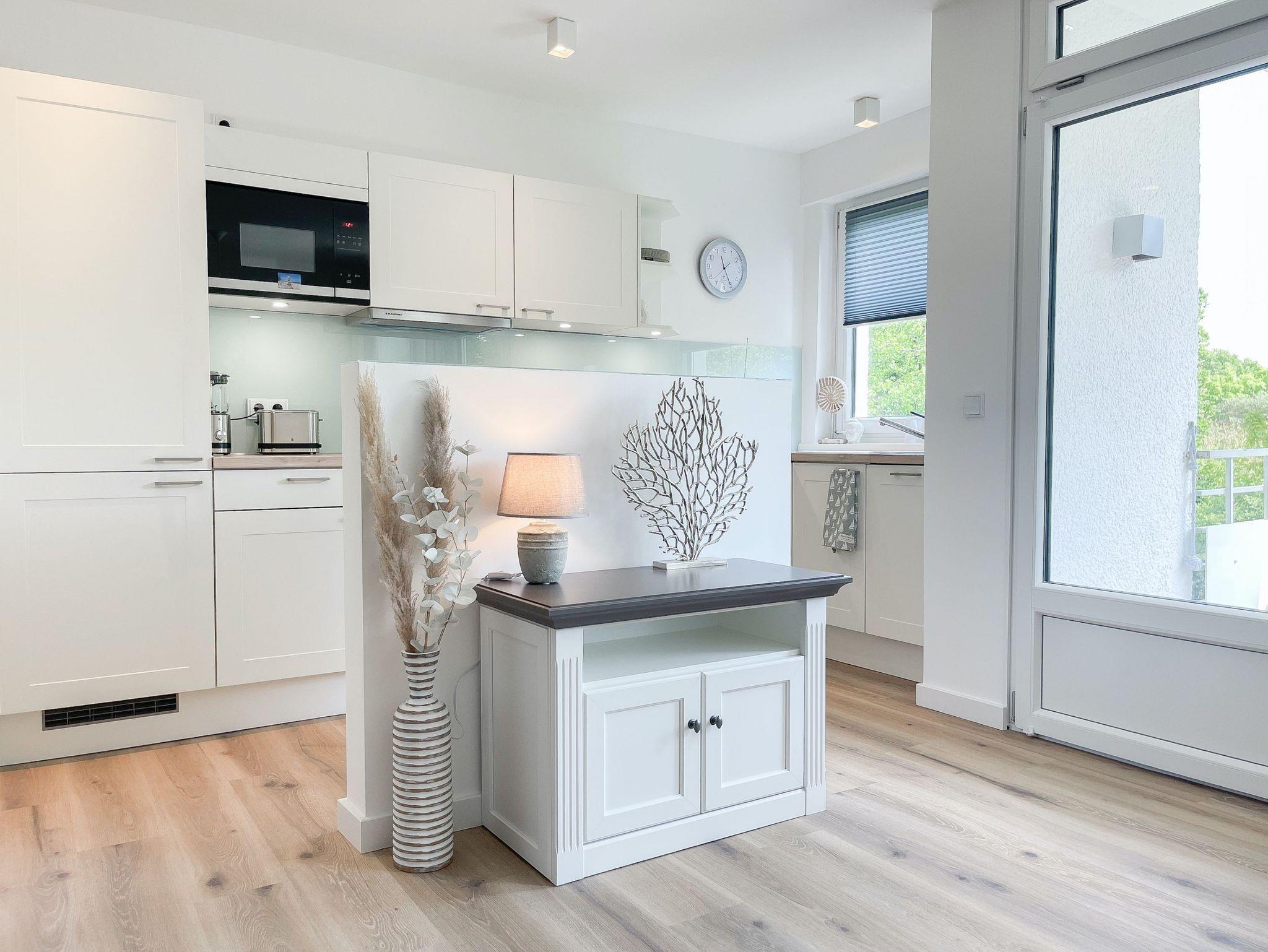 Die Strandlounge bietet alles was das Herz begehrt, um einen entspannten Urlaub zu verleben. Es erwartet Sie eine wunderschöne Ferienwohnung, hochwertig eingerichtet mit Liebe zum Detail und einer herrlichen Wohnatmosphäre. Es gibt einen schönen Balkon zur Meerseite mit einer gemütlichen Lounge und je nach Jahreszeit kann man sogar die Ostsee blitzen sehen. Der großzügige Wohnbereich verfügt über eine schöne Sofalandschaft, TV und einen Essbereich mit reichlich Platz für 4 Personen. Die bestens ausgestattete Einbauküche wird jeden Hobby Koch erfreuen und die optische Trennung vom Wohnbereich durch eine kleine Wandscheibe, ist sehr gelungen. Es gibt 2 separate Schlafzimmer mit ausreichend Staufläche für die Urlaubsgarderobe und Außenjalousien für erholsamen Schlaf. Ein Schlafzimmer verfügt über eine Doppelbett, das andere über 2 Einzelbetten und einen zusätzlichen TV. Das neue Bad ist klein aber sehr fein mit einer herrlichen Walk In Dusche, Handtuchtrockner und Föhn.