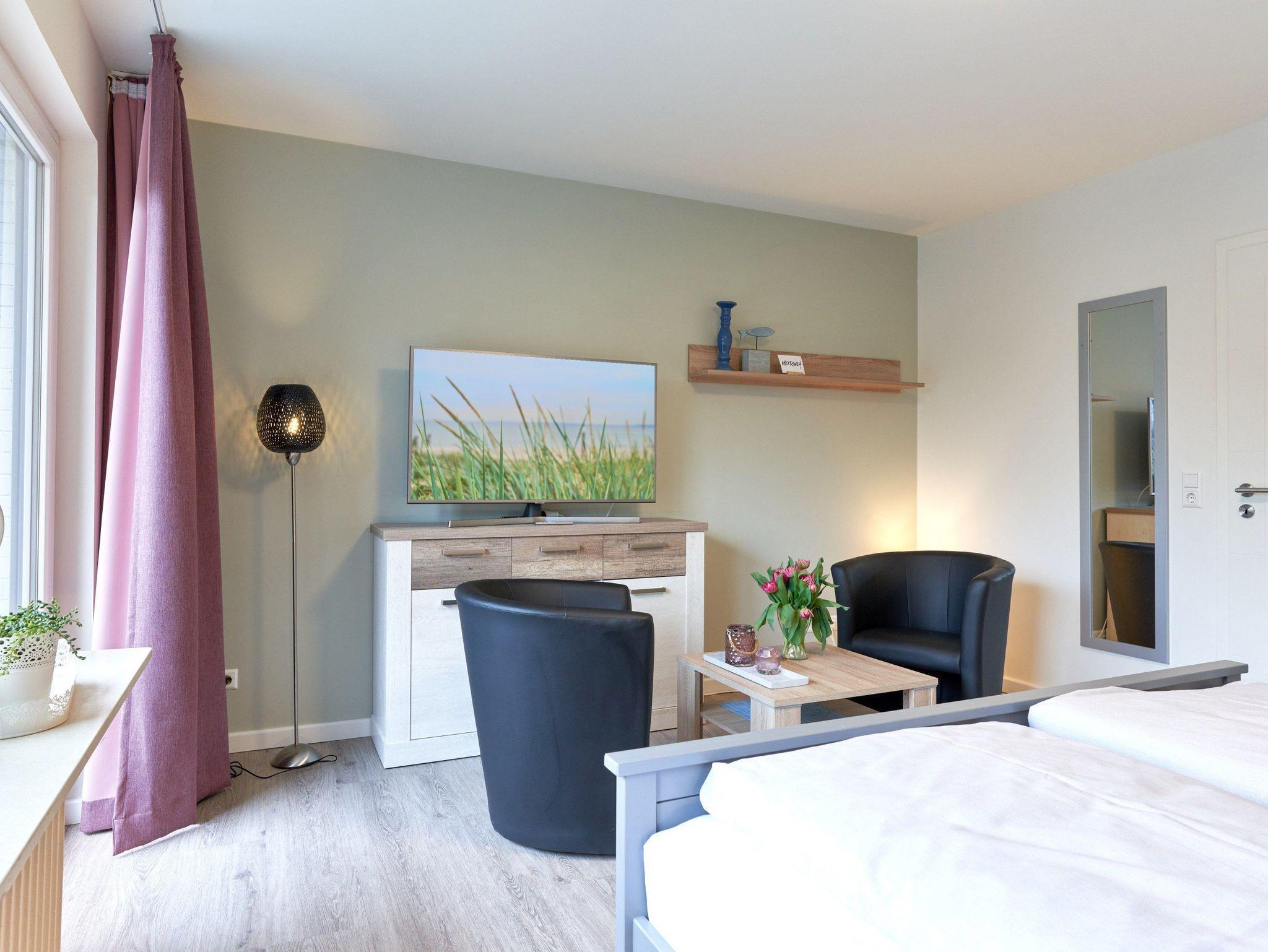 Dieses, in 2022 umfassend renovierte Apartment bietet ein Wohn-/Schlafzimmer, Küche, Bad und einen möblierten Balkon. Die Einbauküche ist komplett ausgestattet und mit Essplatz, neuer Filter-Kaffeemaschine und Geschirrspüler ausgestattet. Im neu gestalteten, kleinen aber feinen Badezimmer finden Sie eine Echtglasdusche, neue Badobjekte sowie einen Badheizkörper für Handtücher. Der neue und modern gestaltete Wohnbereich ist mit großen Fenstern, Doppelbett, ausreichend Stauraum und Fachbildschirmfernseher eingerichtet. Verdunkelungsgardinen sorgen für eine gemütliche Atmosphäre und ungestörten Schlaf.