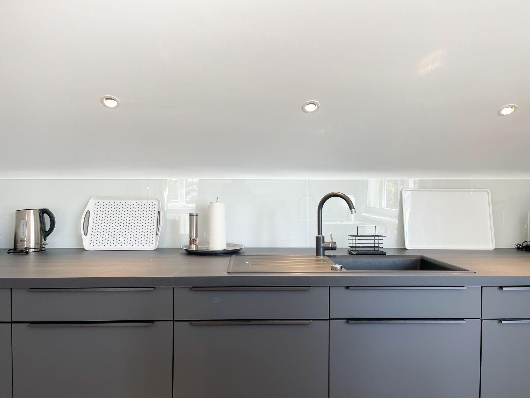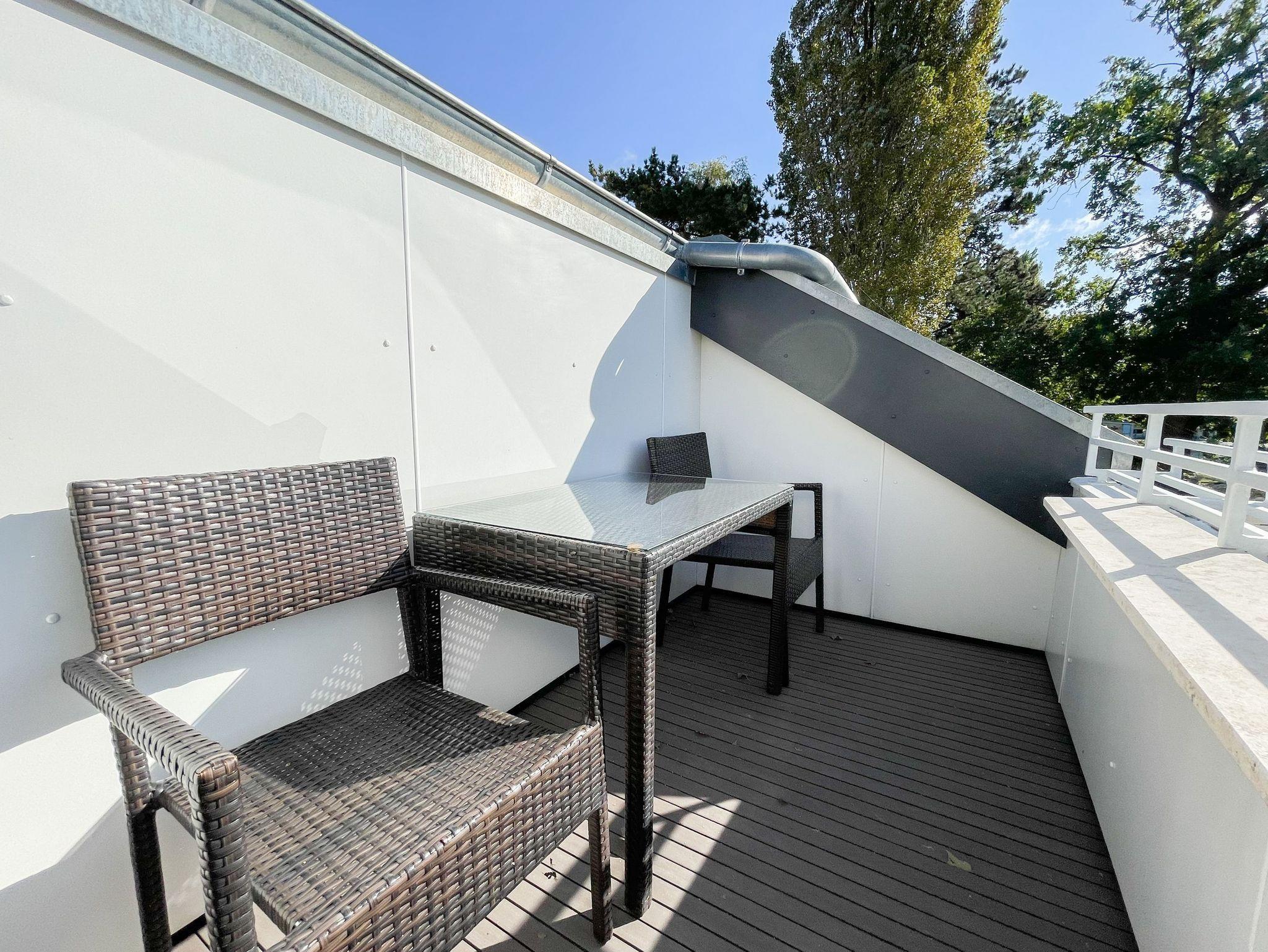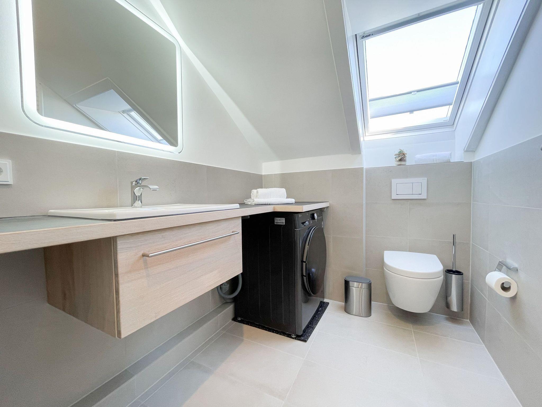 Im Jahr 2024 frisch und aufwendig renoviert, erwartet Sie in der Endetage (2. Stock) eine lichtdurchflutete Wohlfühloase für Ihren wohlverdienten Ostseeurlaub. Großzügige Räumlichkeiten, warme Farben und eine hochwertige Ausstattung sorgen für einen hohen Wohnstandard in einem schönem Ambiente. Der sonnige Wohnbereich ist mit einem komfortablen Schlafsofa und einer gemütlichen Leseecke eingerichtet. Der anschließende Essbereich für 4 Personen ist geschickt mit einem Einbauteil vom Kochbereich abgetrennt. Die hochwertige Einbauküche in perfekter Ausstattung, wie Spülmaschine, Backofen, Mikrowelle, Induktionskochfeld, Radio und vielem mehr, lässt keine Wünsche offen und fügt sich wunderbar in den Wohnraum ein. Die Süd-Loggia mit schönem Weitblick und vielen Sonnenstunden ist mit Tisch und 2 Stühlen ausgestattet. Das großzügige Schlafzimmer verfügt über ein Boxspringbett (180x200), einen Kleiderschrank mit reichlich Stauraum, TV und einen Schreibtisch für das Homeoffice. Koffer können im anschließenden Abstellraum untergebracht werden. Die Wohnung verfügt neben einem modernen Duschbad mit Waschtisch, WC und Fenster über ein separates Gäste WC mit integriertem Waschtrockner. WLAN (Glasfaser) steht selbstverständlich zur Verfügung.