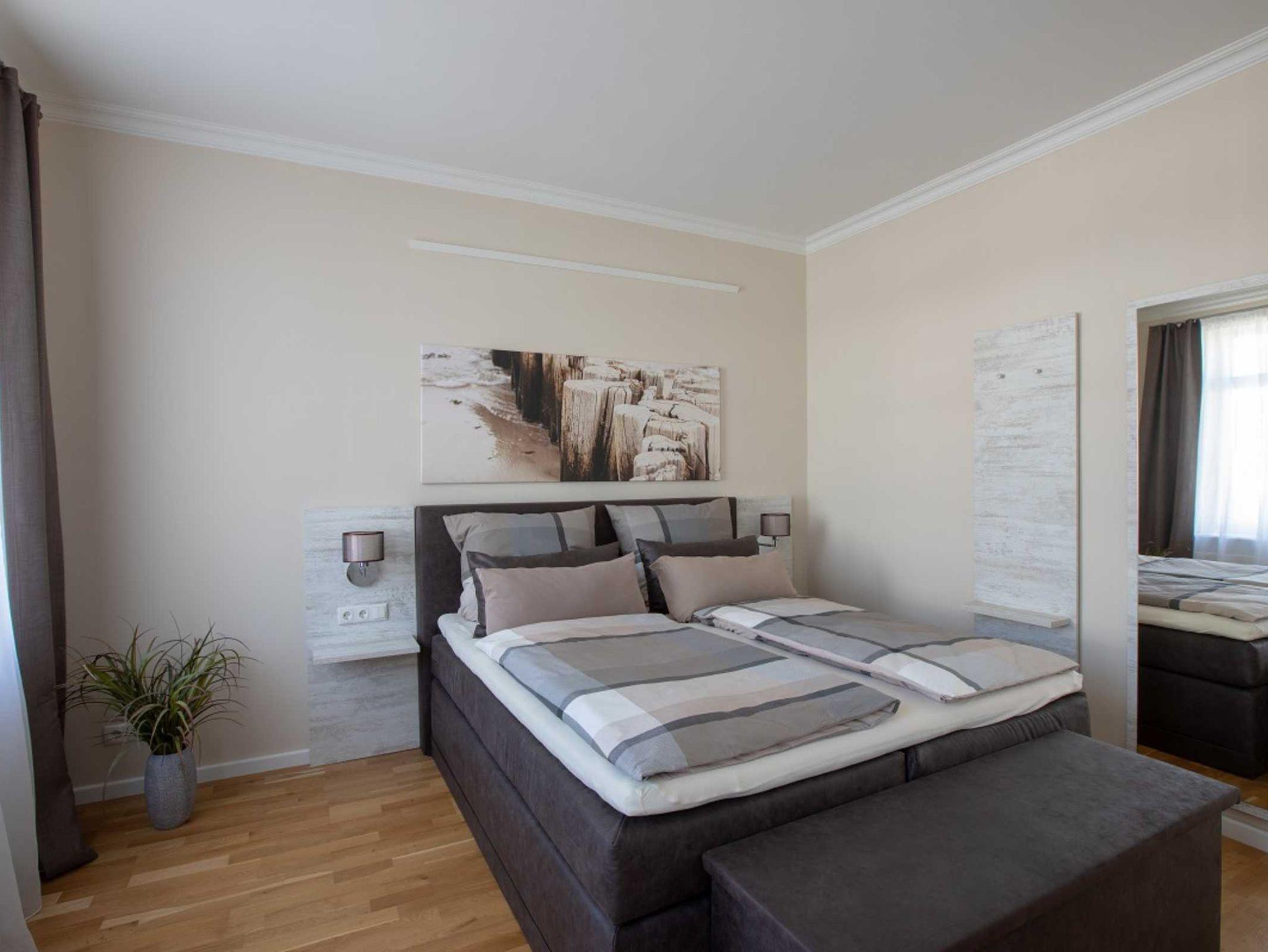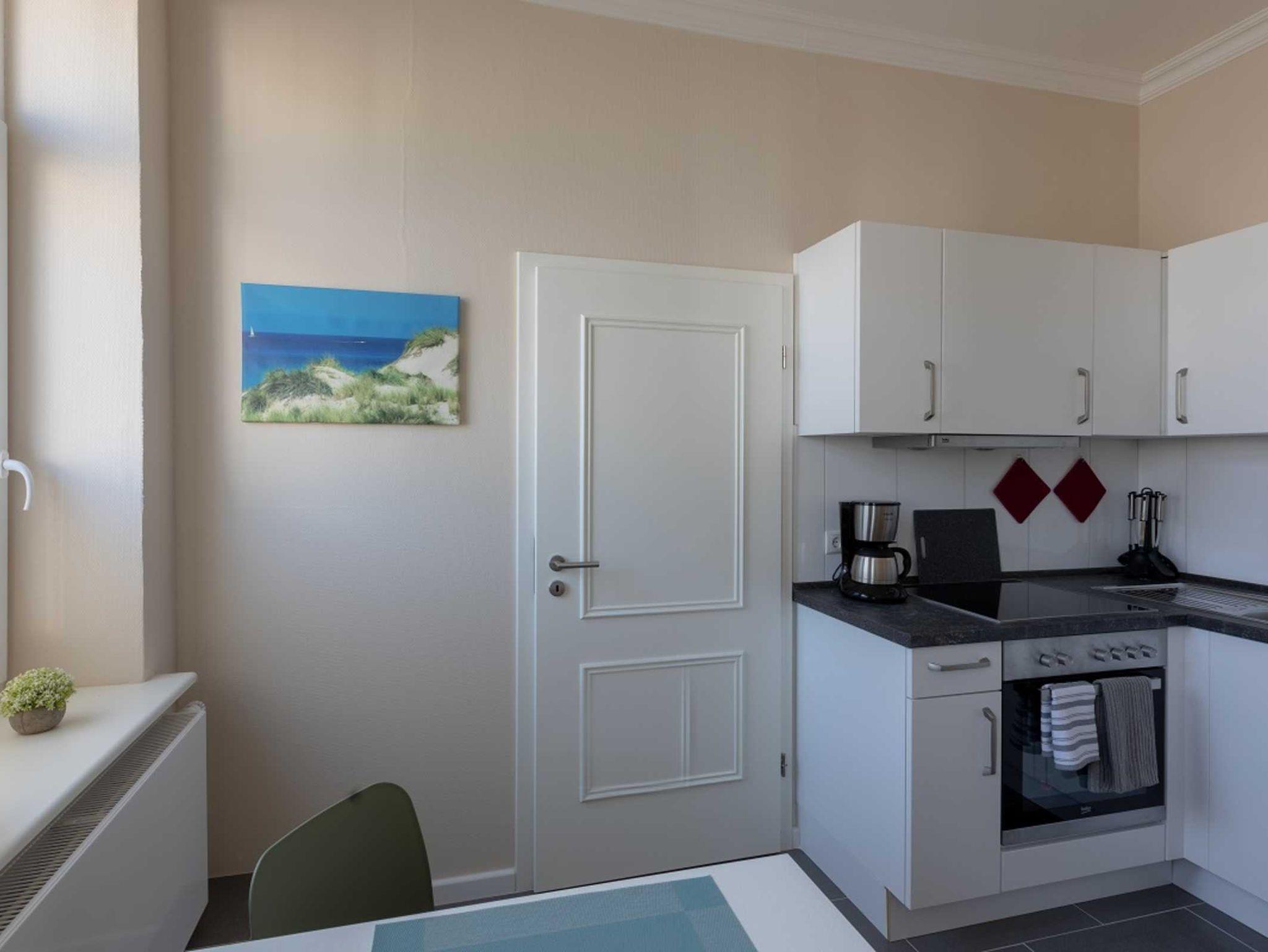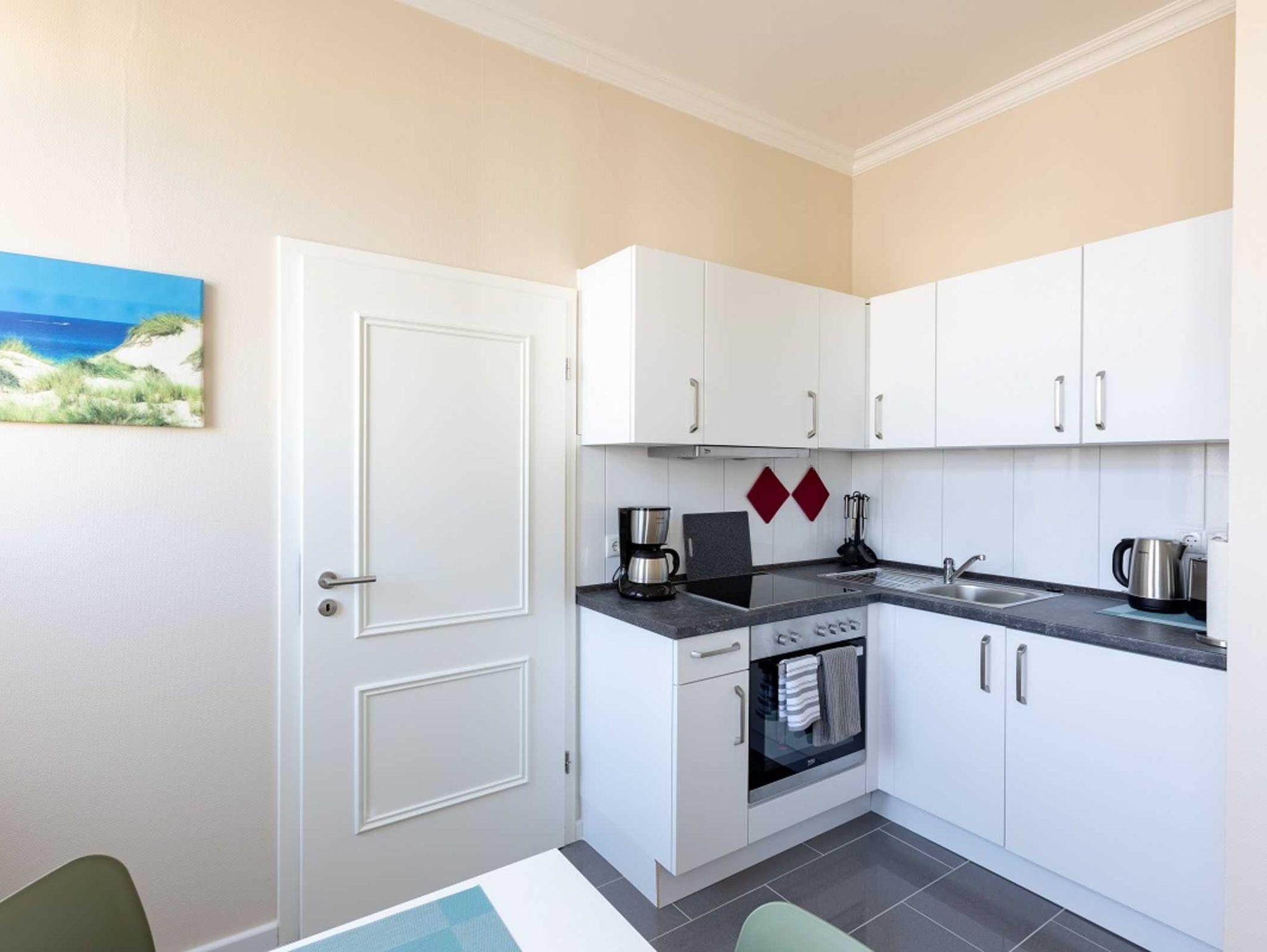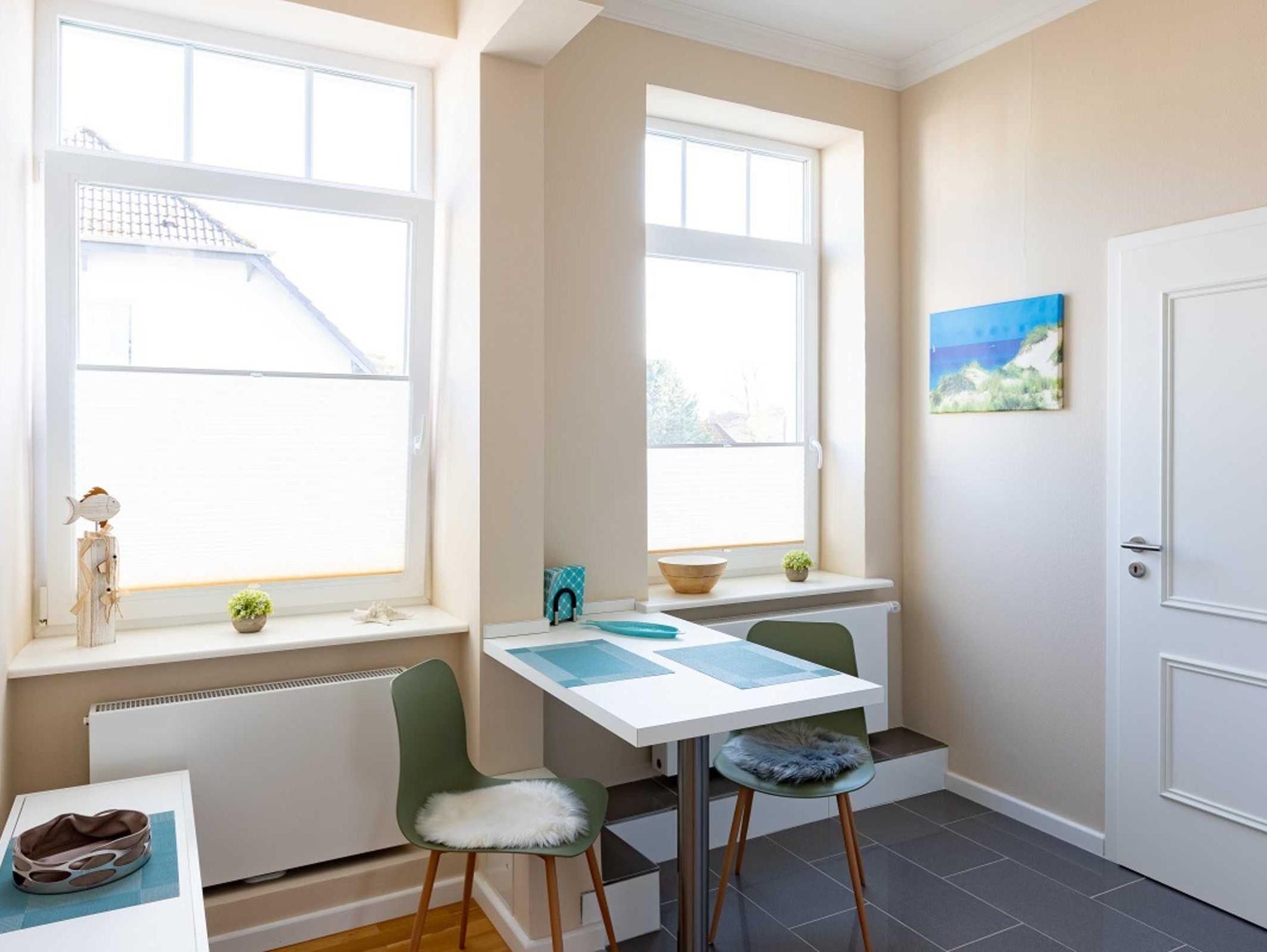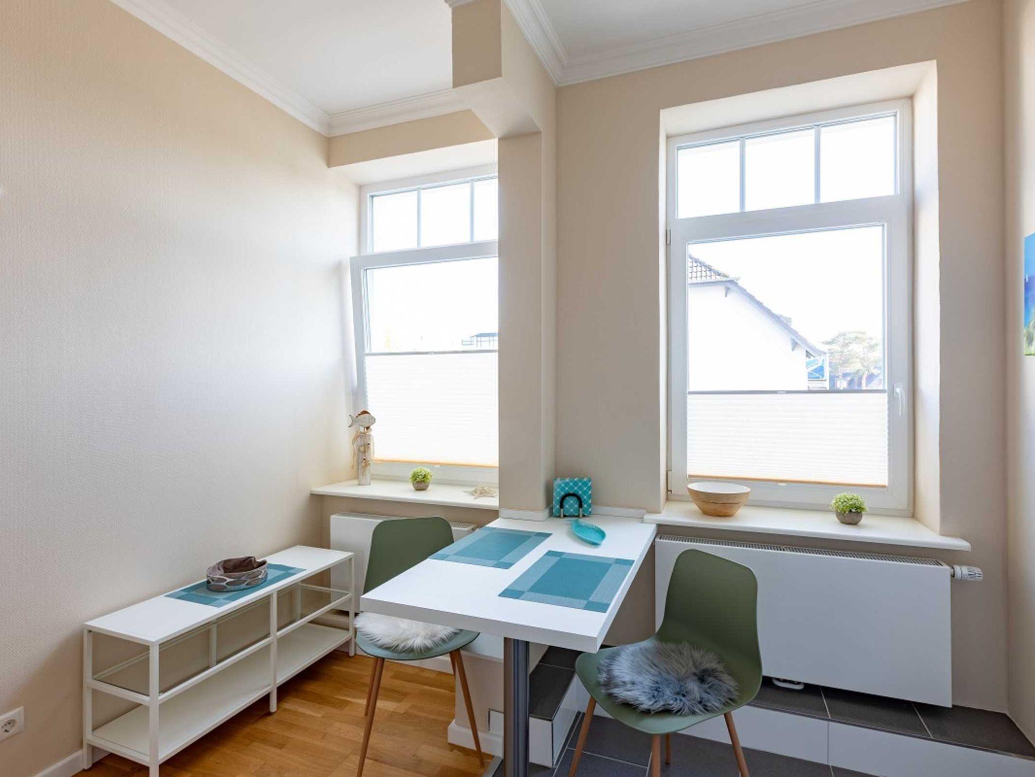 Das ca. 35 qm große Apartment Seestern ohne Balkon befindet sich im 1. Obergeschoss. Das Zimmer verfügt über ein Wohn- und Schlafbereich. Die Küche mit Essbereich ist voll ausgestattet. Das Bad mit Fenster verfügt über eine große Dusche.