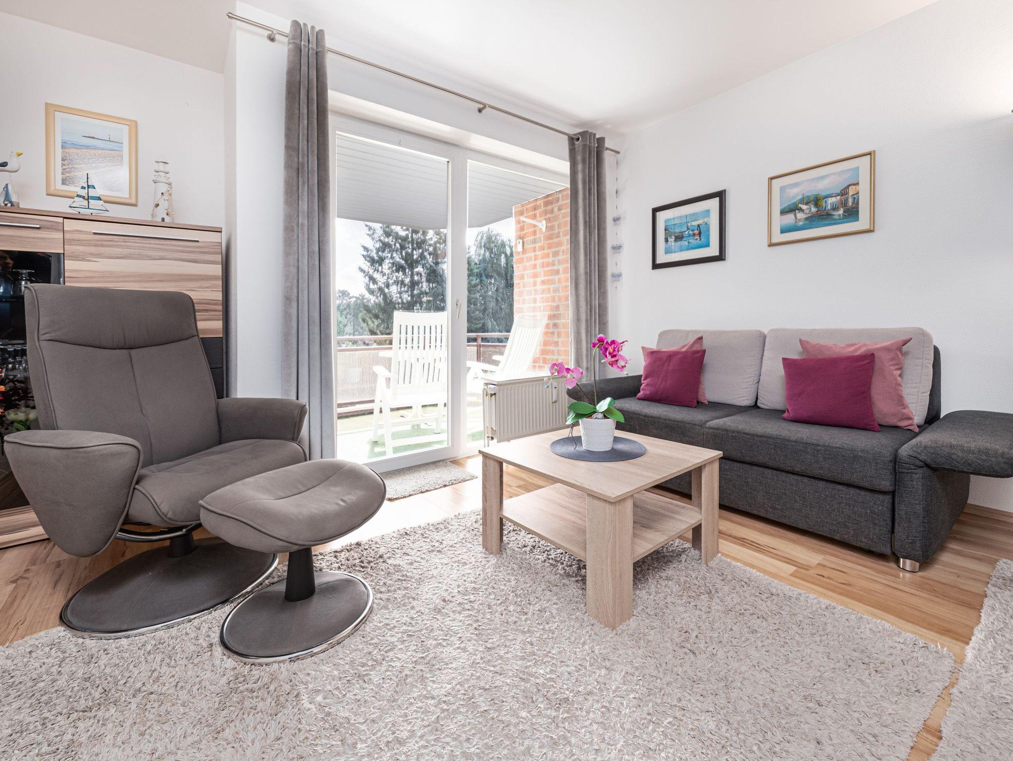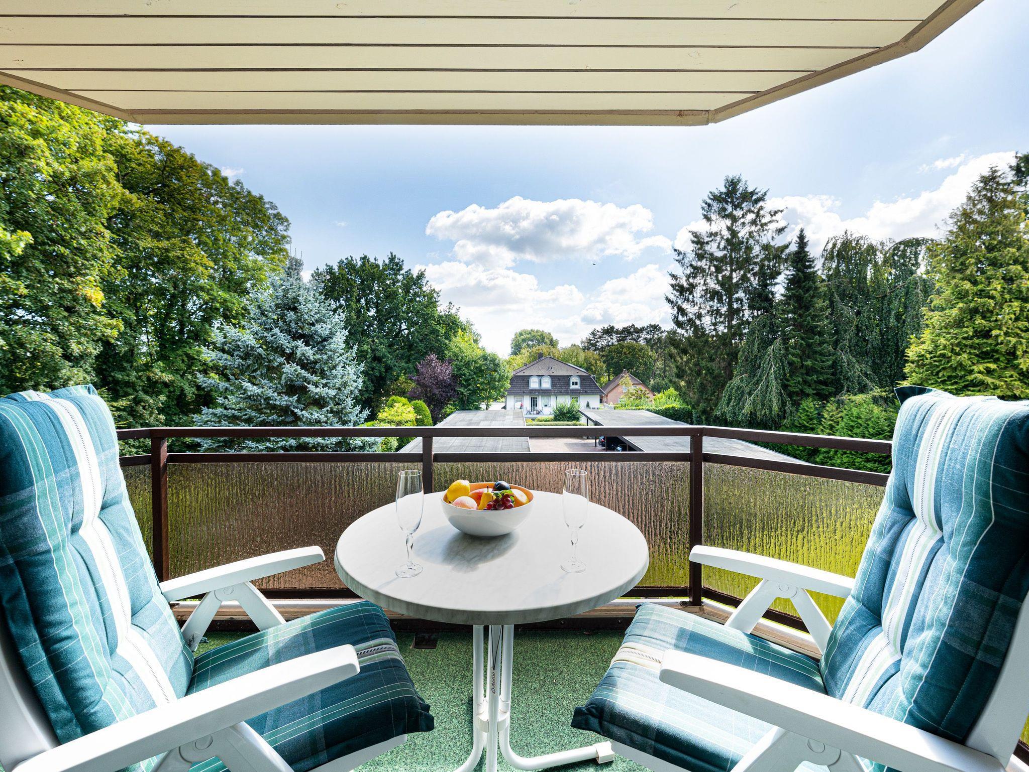 Charmantes Appartement in Timmendorfer Strand, ruhig im Grünen, nahe Strand und Zentrum mit großem Balkon.