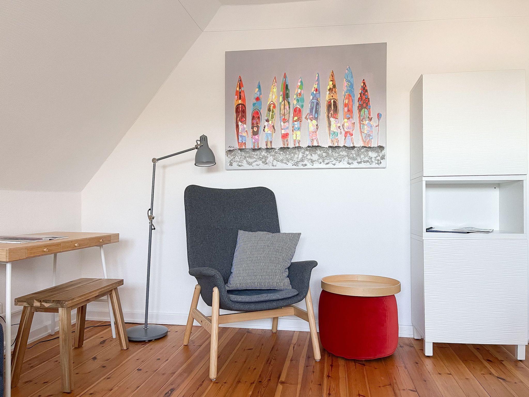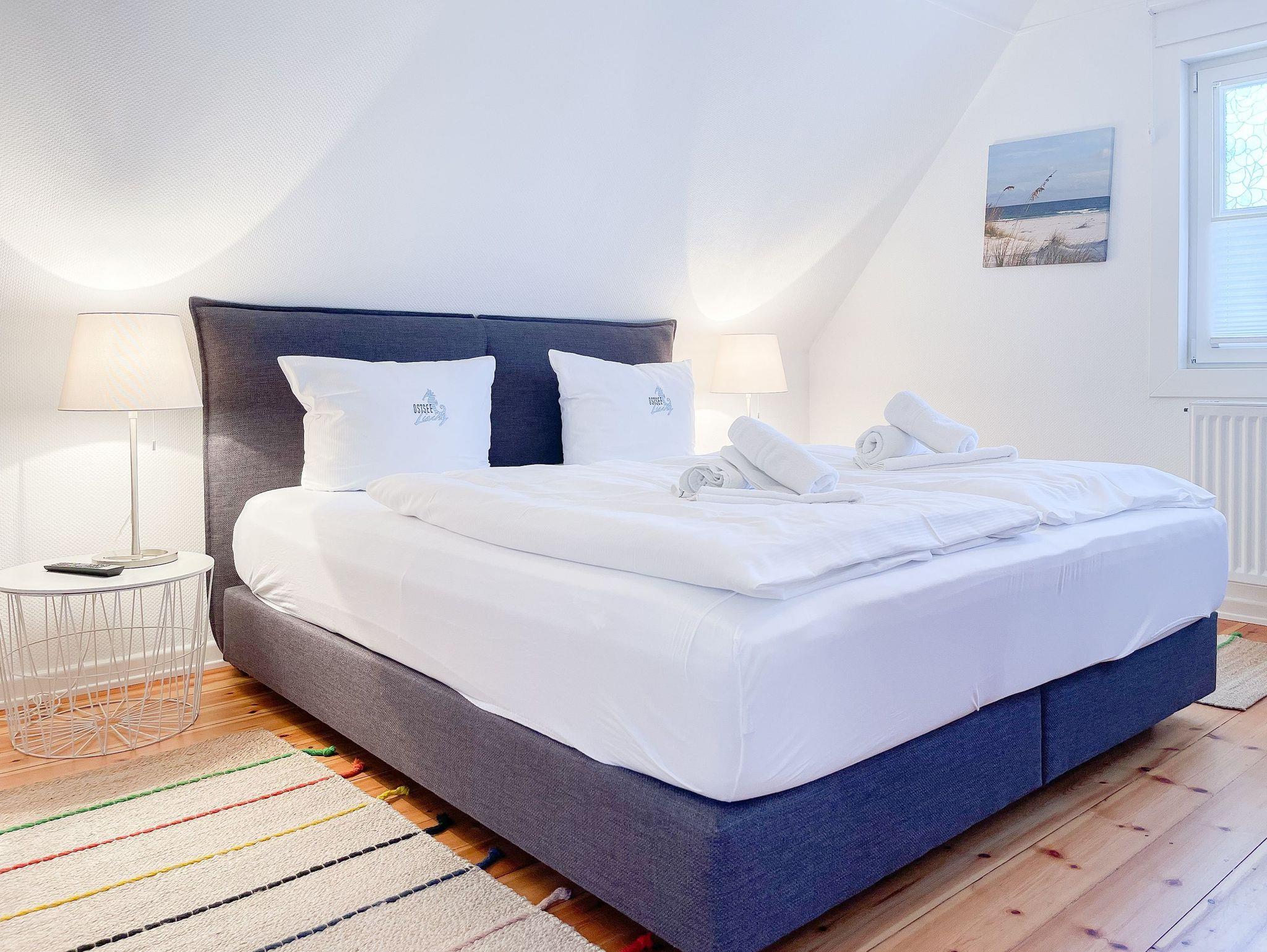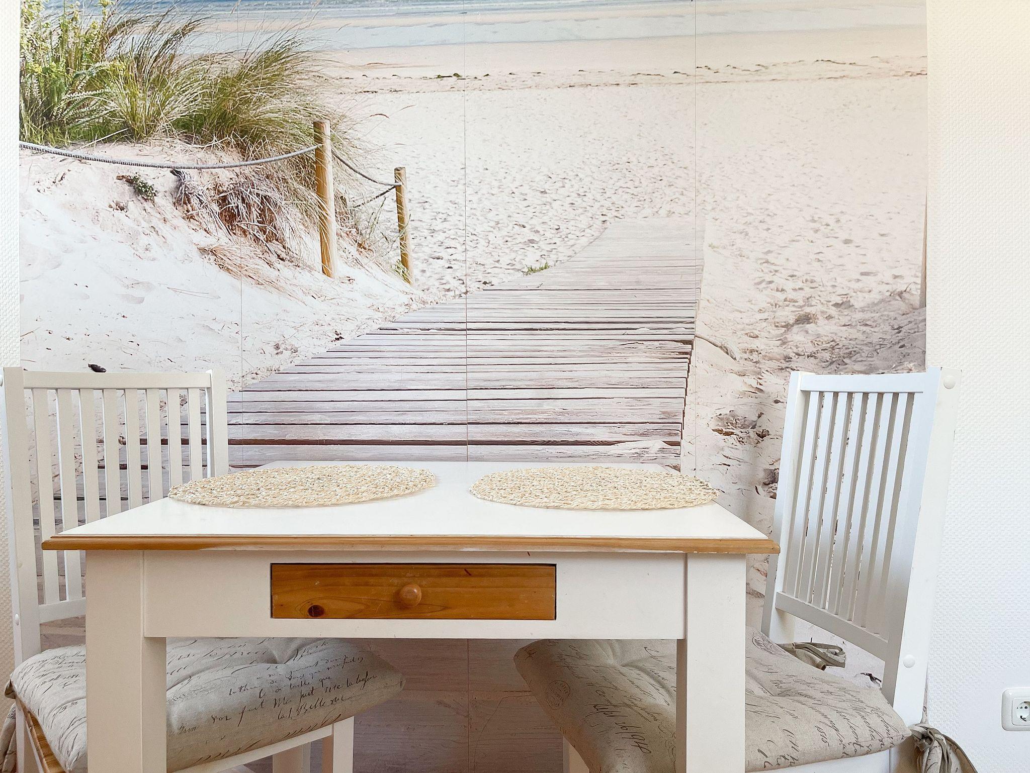 Die Wohnung verfügt über ein großzügiges Schlafzimmer mit Boxspringbett (180x200) und TV, ein helles Duschbad mit viel Tageslicht und ein gemütliches Wohnzimmer mit Schlafsofa (140x200), TV,[nbsp] Bluetoothanlage und WLAN. Die gesamte Einrichtung ist hochwertig und vermittelt eine tolle Strandatmosphäre. Die separate, neue Küche mit Essbereich für 2 - 4 Personen, ist bestens ausgestattet mit Spülmaschine, Backofen und Mikrowelle.