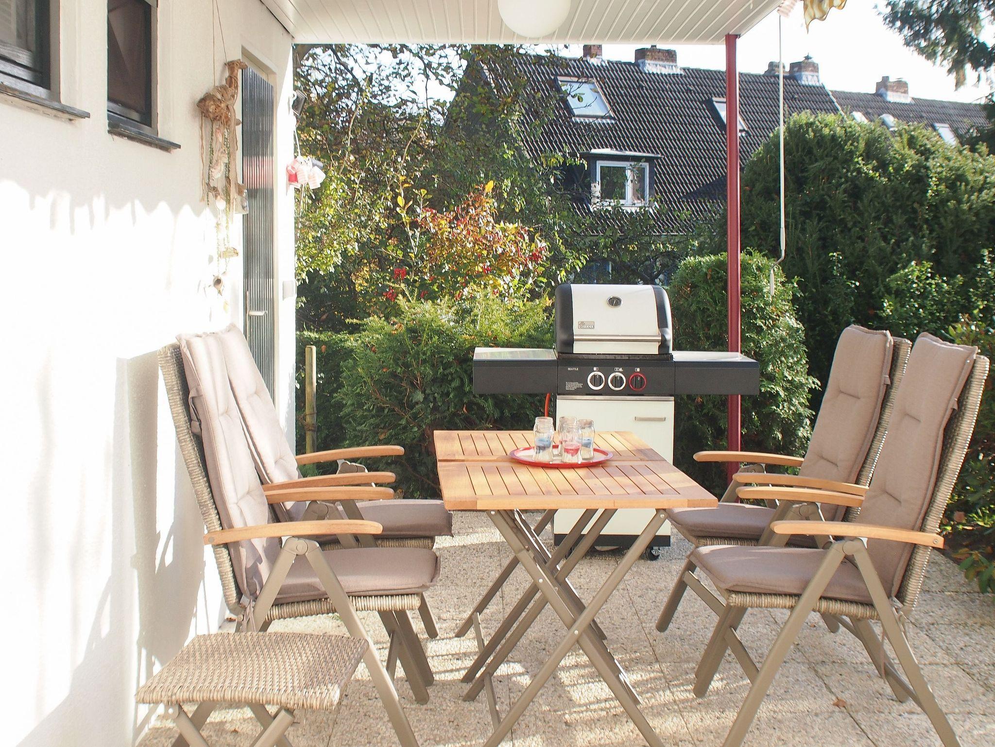 Die liebevoll renovierte Ferienwohnung befindet sich im ersten Obergeschoss eines äußerst charmanten Hauses mit nur 2 Einheiten. Im EG ist eine Praxis für Physiotherapie untergebracht, sodass der gesamte Außenbereich mit großem, eingewachsenen Garten mit Terrasse, Markise, Sonnenliegen, Strandkorb und Gasgrill ausschließlich den Gästen der Ferienwohnung zur Verfügung steht. Zusätzlich steht ein Strandkorb (saisonbedingt Mitte Mai bis Mitte September) zur kostenlosen Nutzung am Strand bereit.