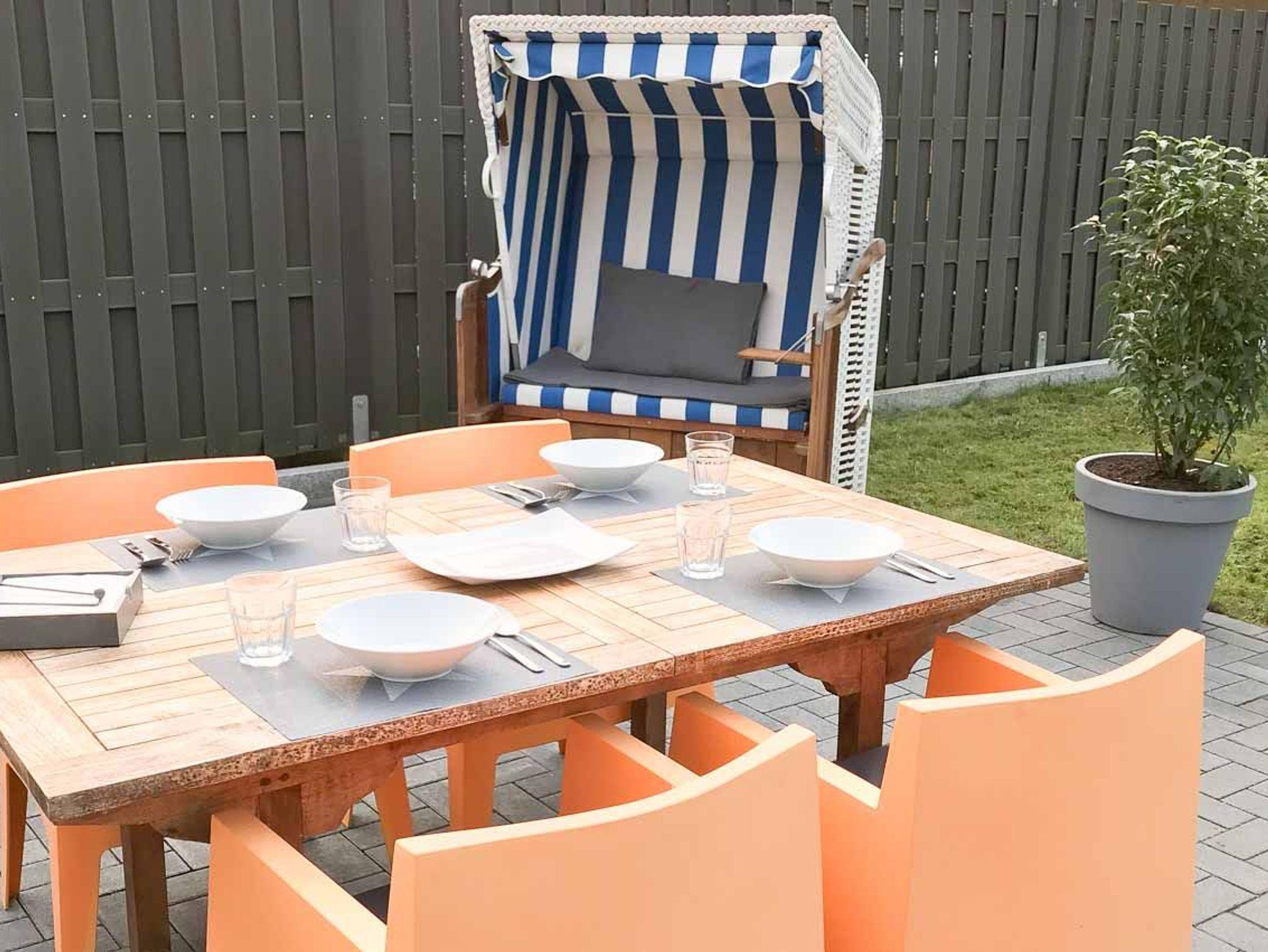 Familienfreundliches Ferienhaus in ruhiger Lage nahe Timmendorfer Strand mit Terrasse und Strandkorb.