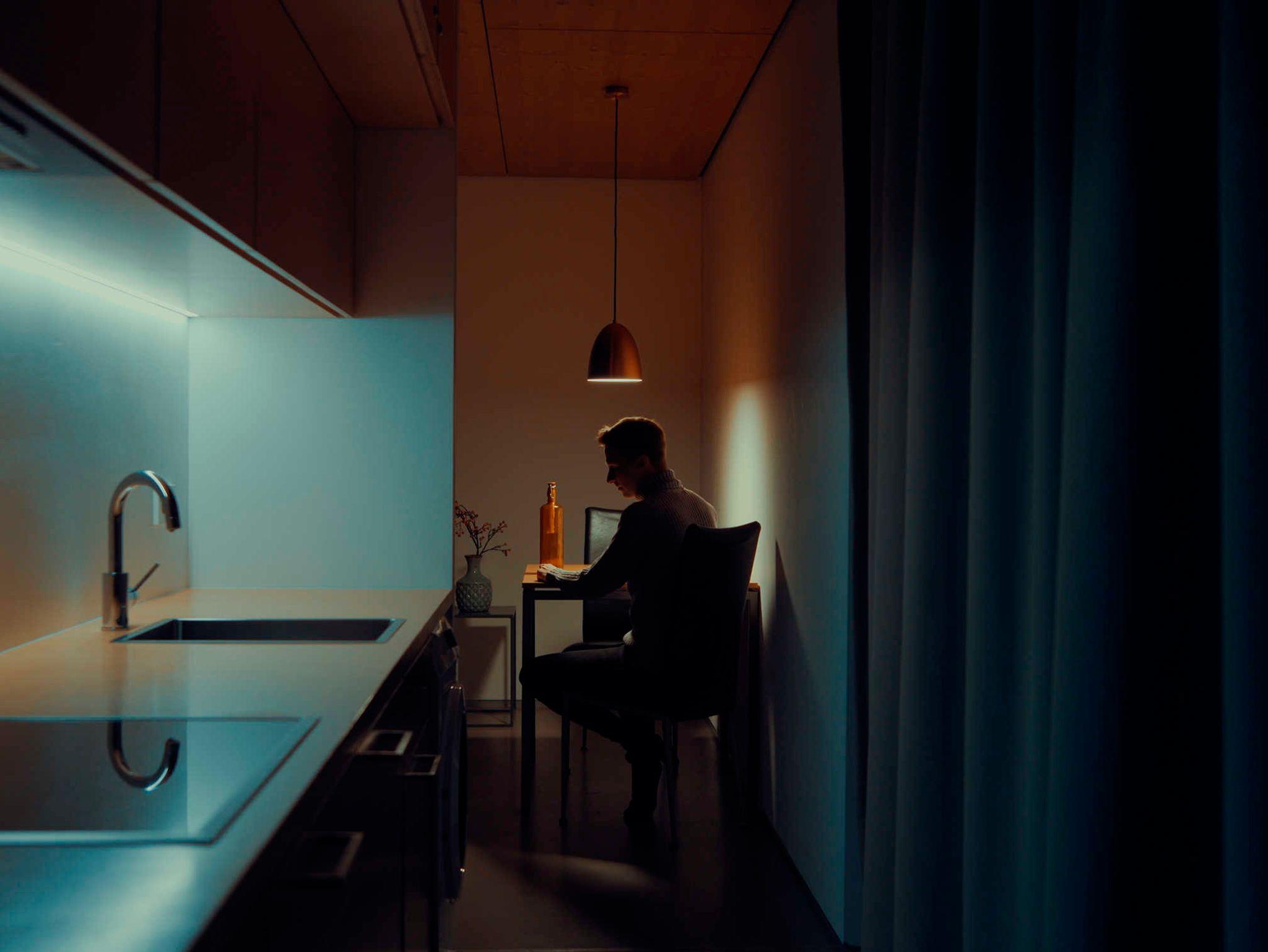 • Induktionskochfeld • Dunstabzugshaube • Kühlschrank mit Gefrierfach • Geschirrspüler • Mikrowelle • Kaffeemaschine • Wasserkocher • Toaster • Radio • Geschirrtücher und -spülmittel