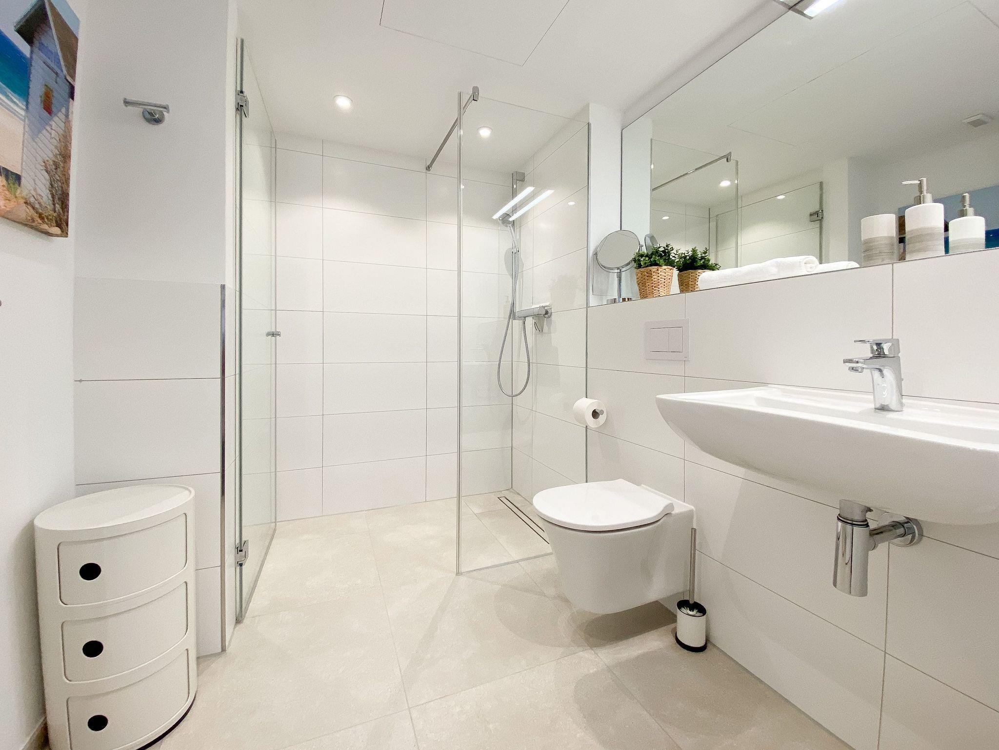 Zehn exklusive Wohnungen mit Balkonen und Terrassen zur Meerseite bieten traumhafte Ausblicke bis auf die Ostsee und jeglichen Komfort zur Gewährleistung eines hohen Wohnstandards in schönem Ambiente. Alle Wohnungen verfügen über moderne Bäder mit Walk In Duschen, Fußbodenheizung und elektrische Außenjalousien mit einstellbaren Lamellen, die gleichermaßen für Tageslicht und Privatsphäre sorgen.