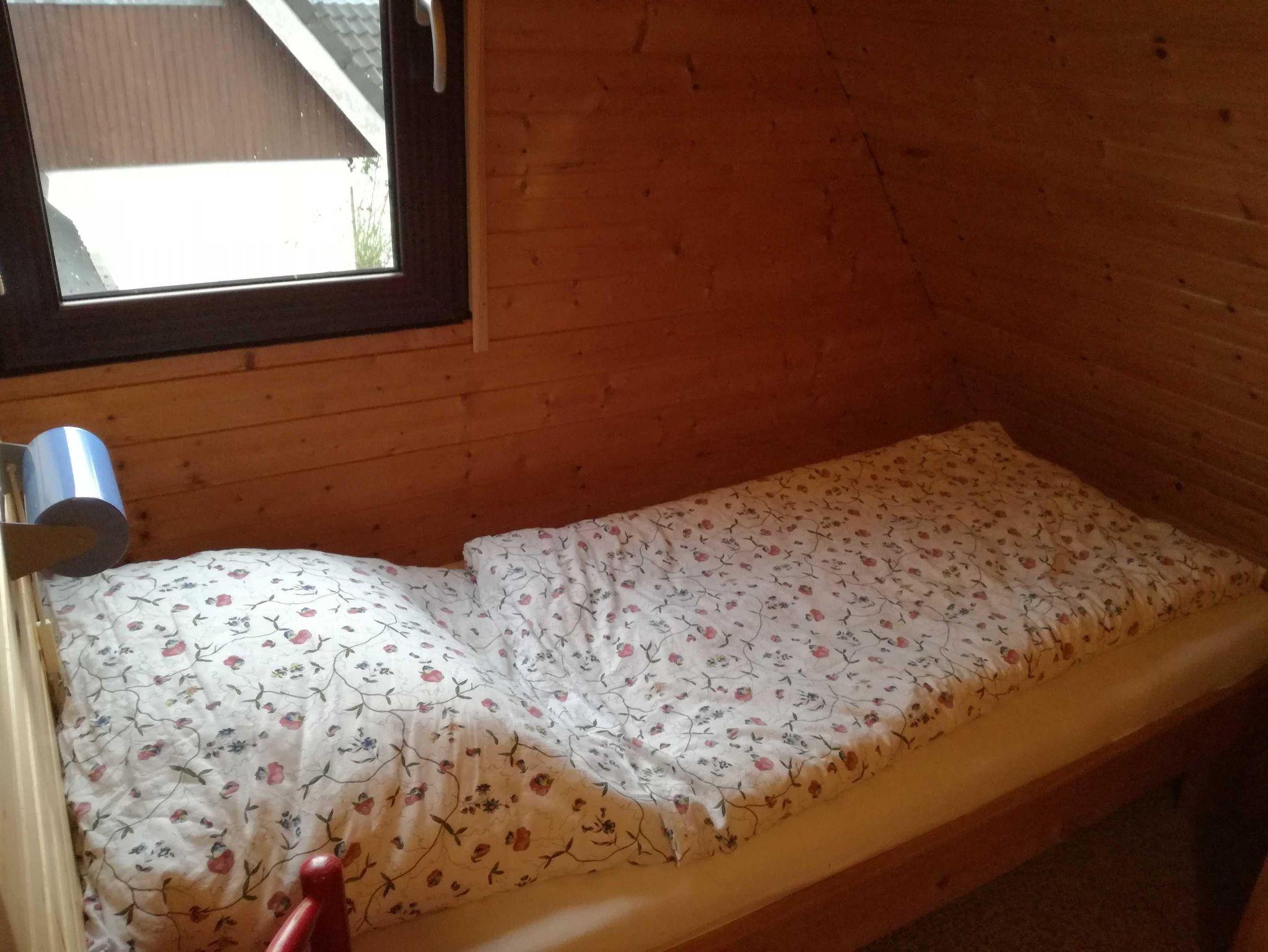 Eine steile Treppe führt zu den zwei Schlafräumen: kleiner Schlafraum mit 2 getrennt stehenden 0,90 x 1,95 m Betten, größerer Schlafraum mit 1,80 x 2,00 m Bett. (Die Einrichtung des Hauses kann von den Fotos abweichen)