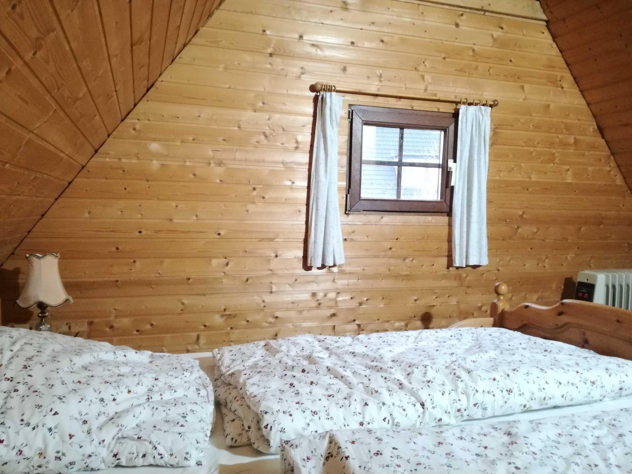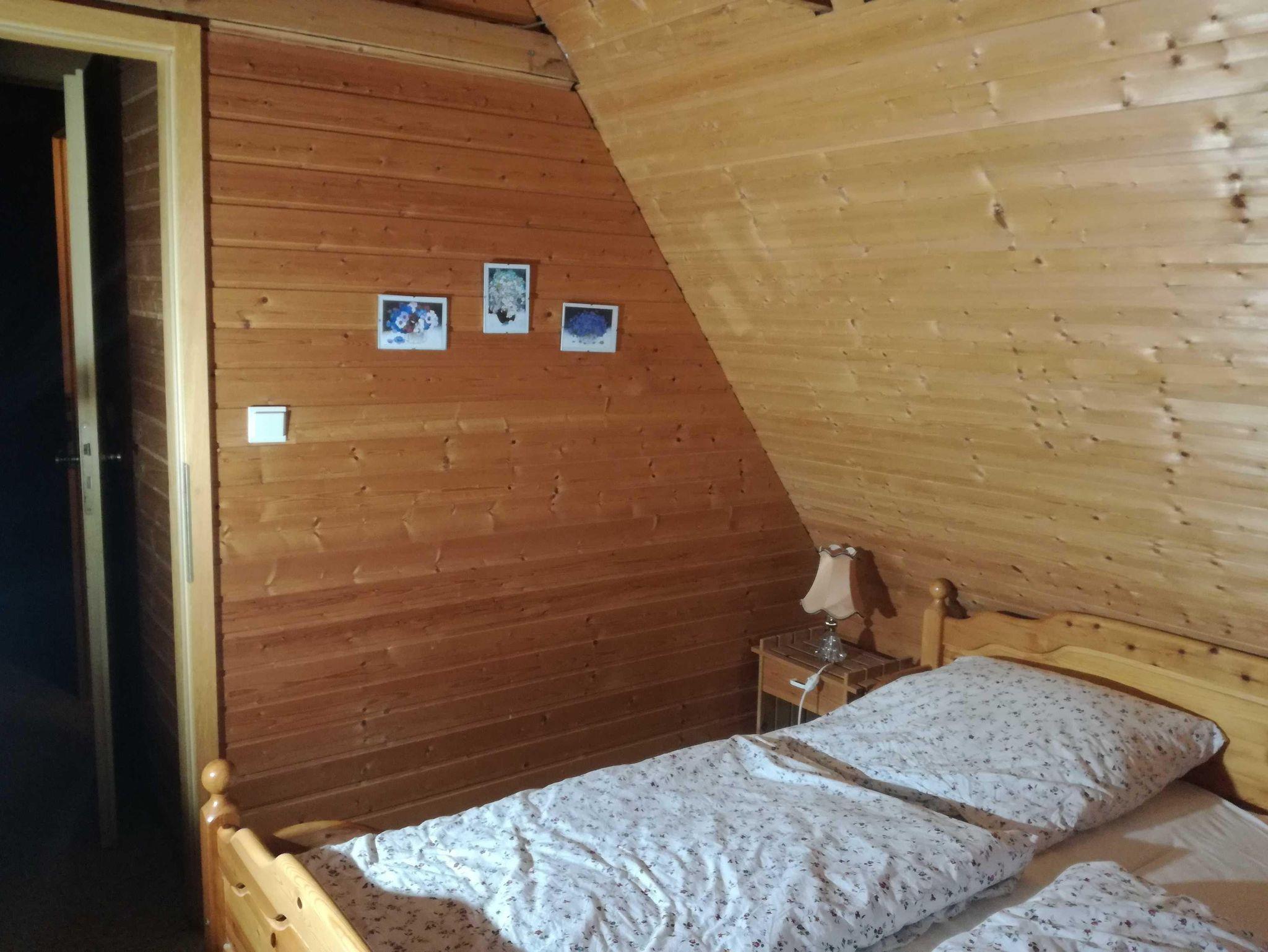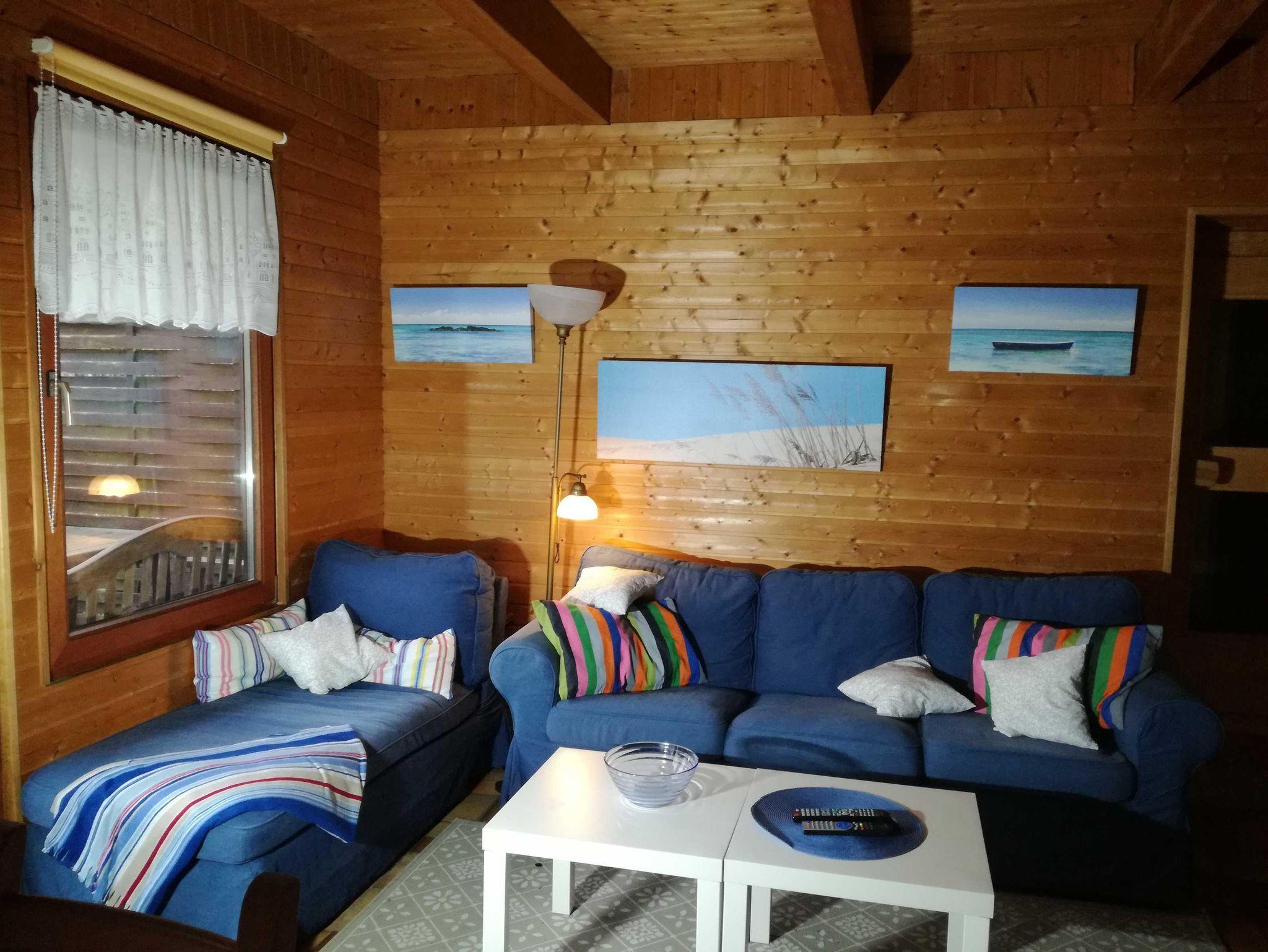 Das Ferienhaus ist für 2-4 Personen, 60 m² Wohnfläche, die Terrasse mit Grillkamin und Markiese ist nach Süden hin ausgerichtet. Im unteren Bereich befindet sich eine gemütliche Sitzecke mit Radio+ TV, W-LAN Zugang, eine Küchenzeile (Ceranfeld, Heißluftmikrowelle, Kaffeemaschiene, Toaster, Wasserkocher), mit Essecke.