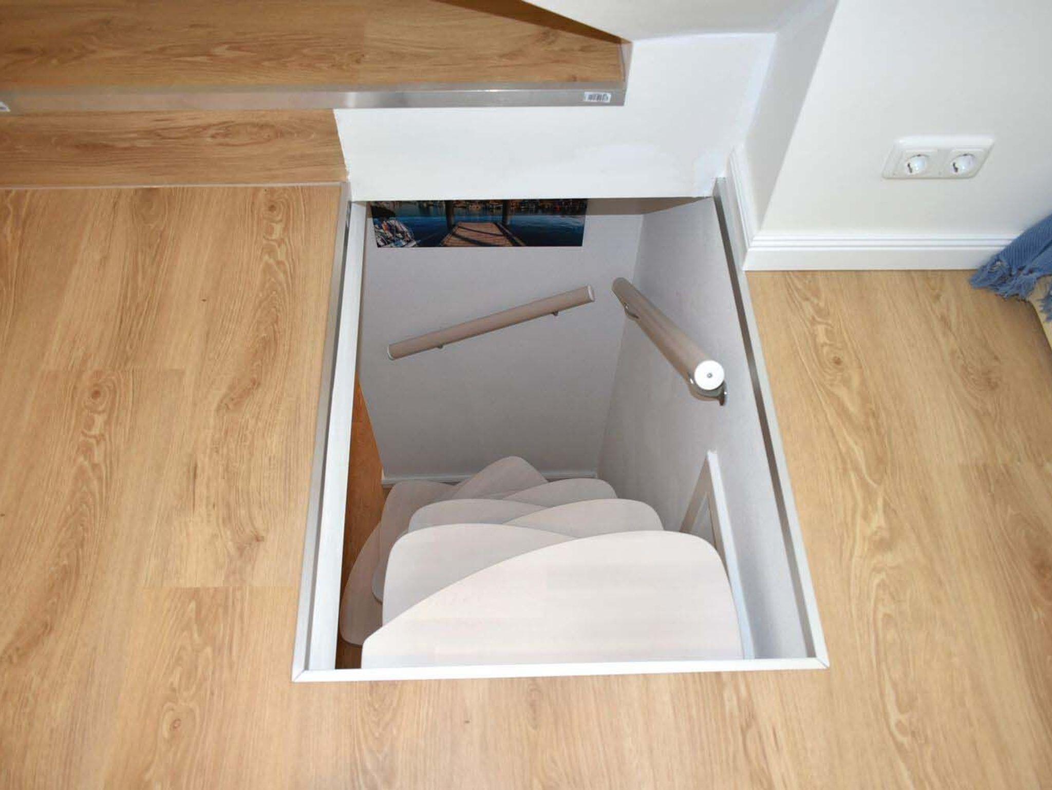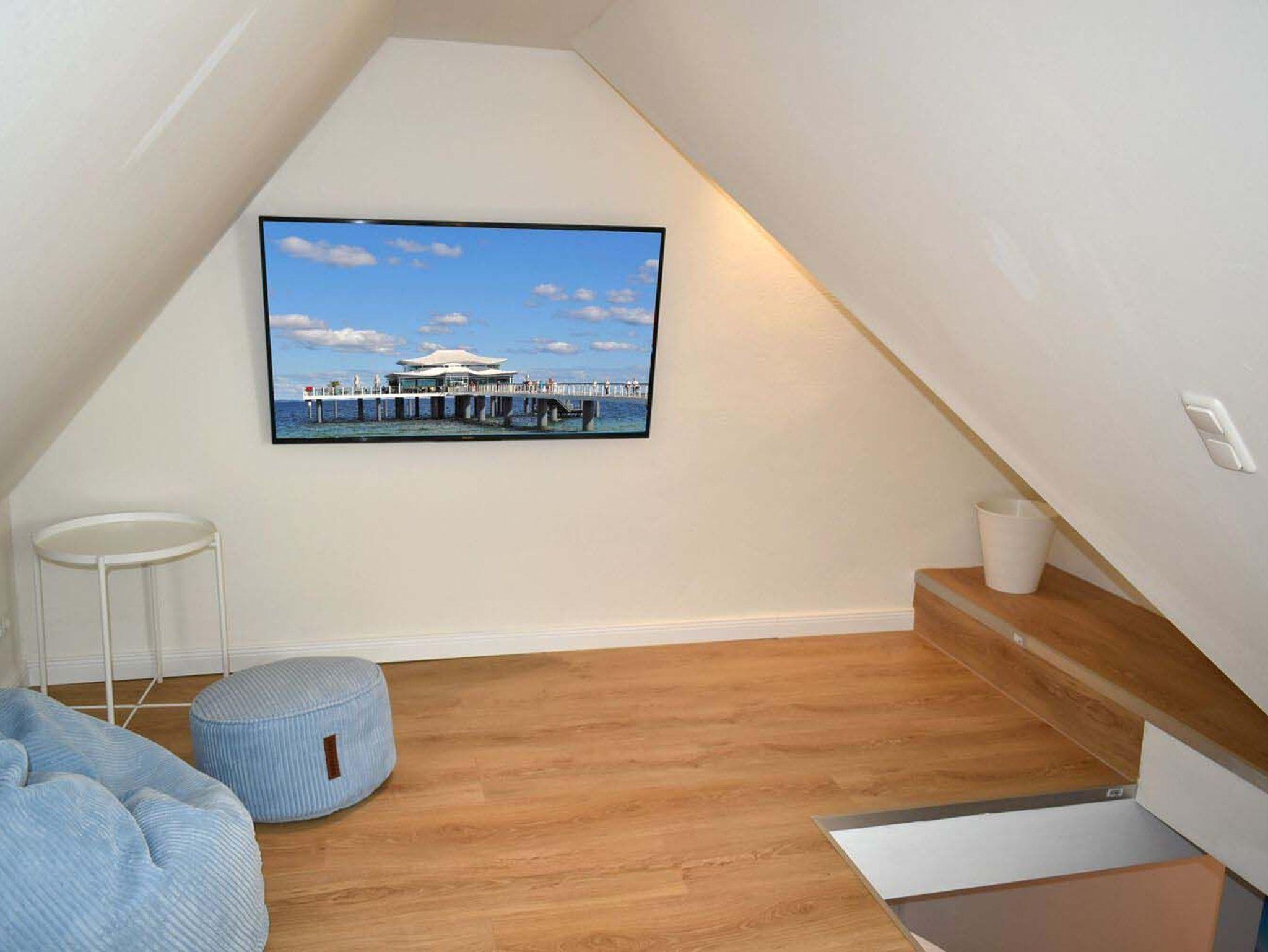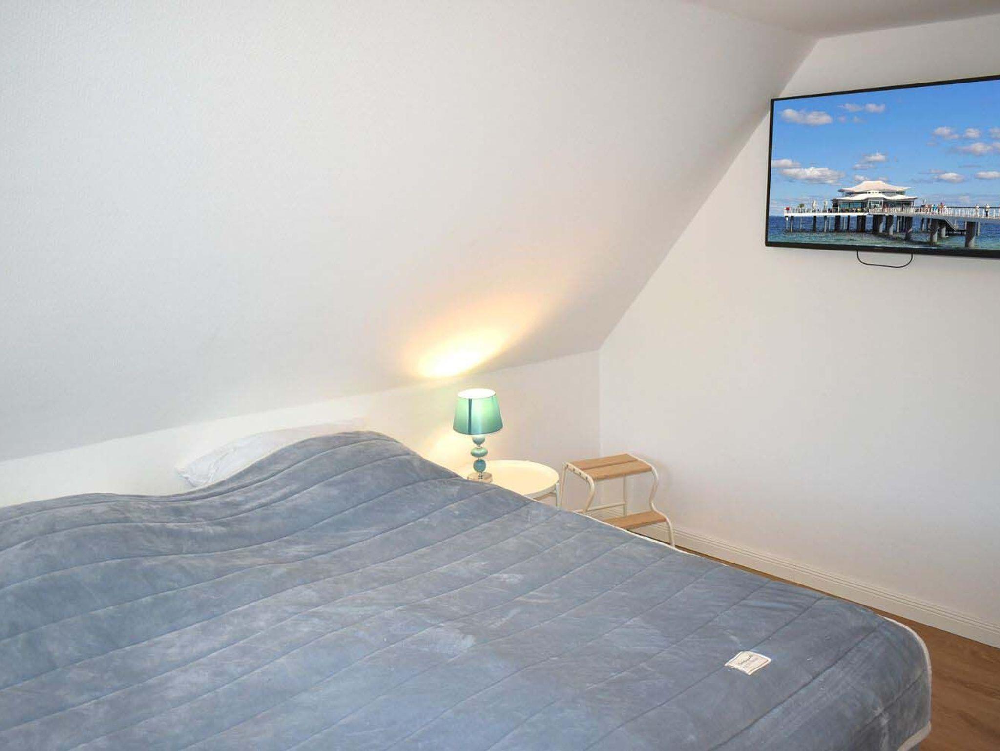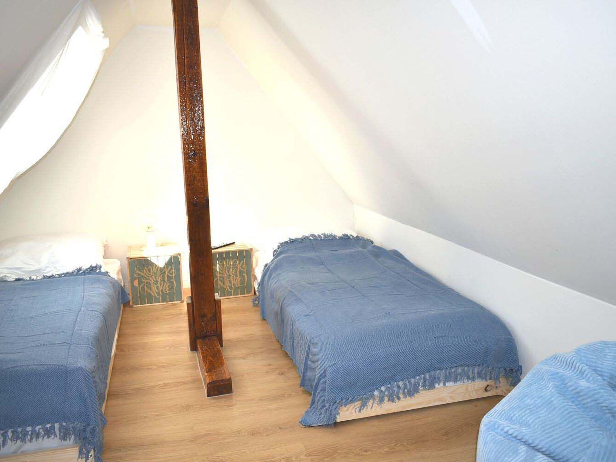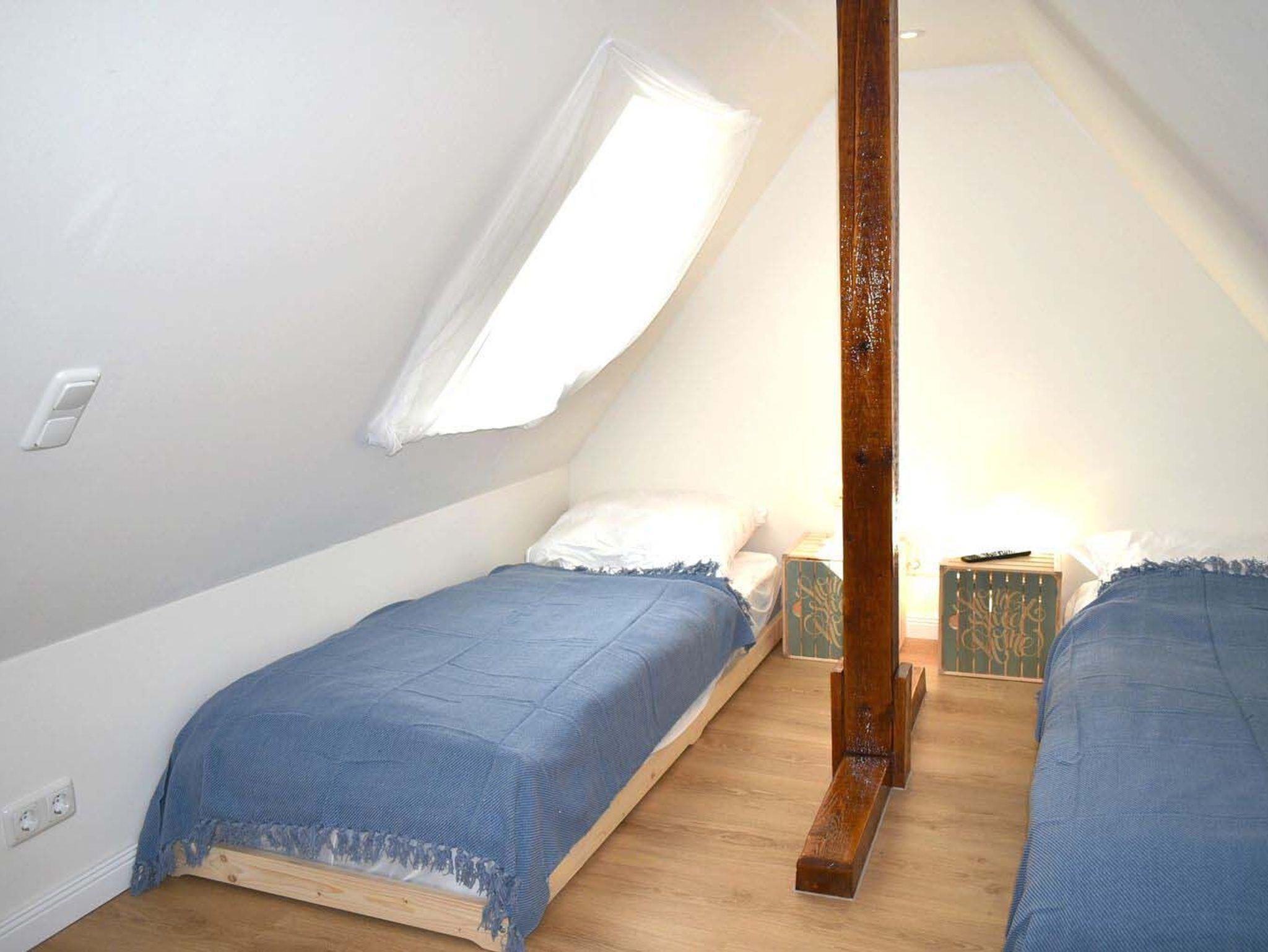 Schlafzimmer 2: 2 Einzelbetten 2,00 x 0,80 m, 2 Nachttische, Flachbildschirm, Hocker, Kabel-TV, Raumspartreppe nach unten, Sandsack, Tisch