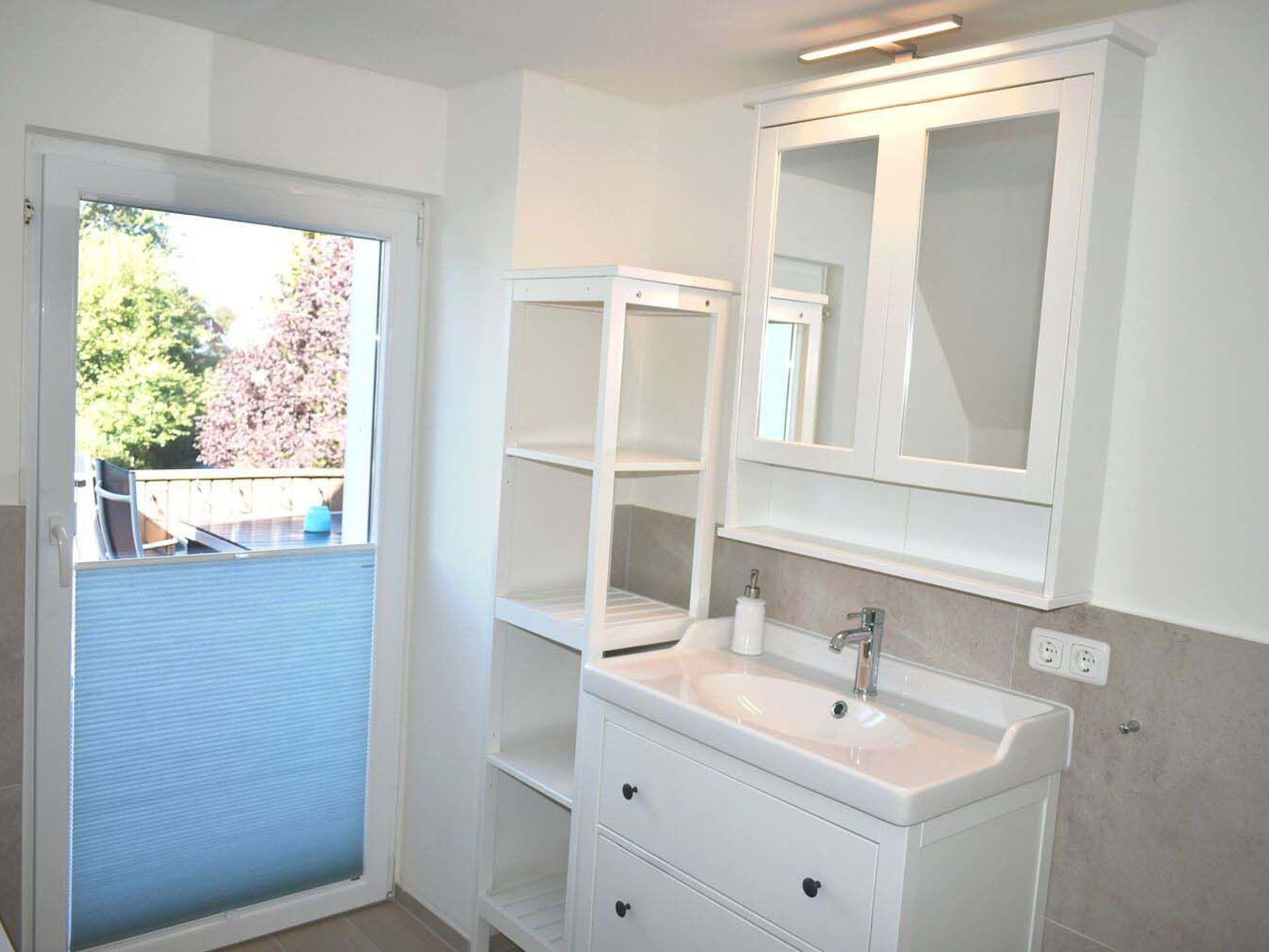 Bad 2: Dusche, Spiegelschrank, Waschbecken, WC