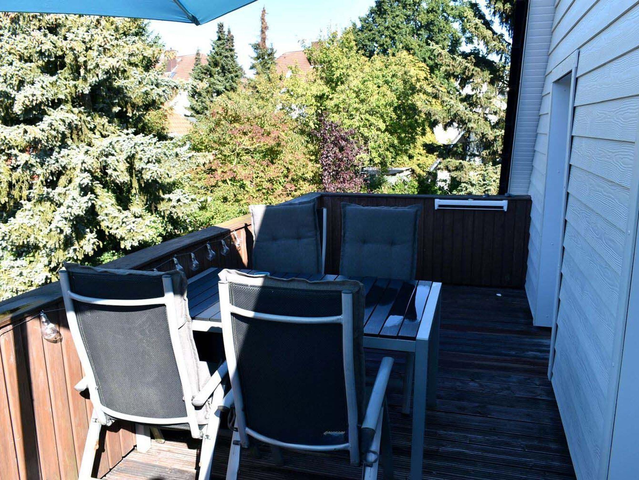 Balkon: 4 Stühle, Sonnenschirm, Süd- Westlage, Tisch, Wäscheständer
