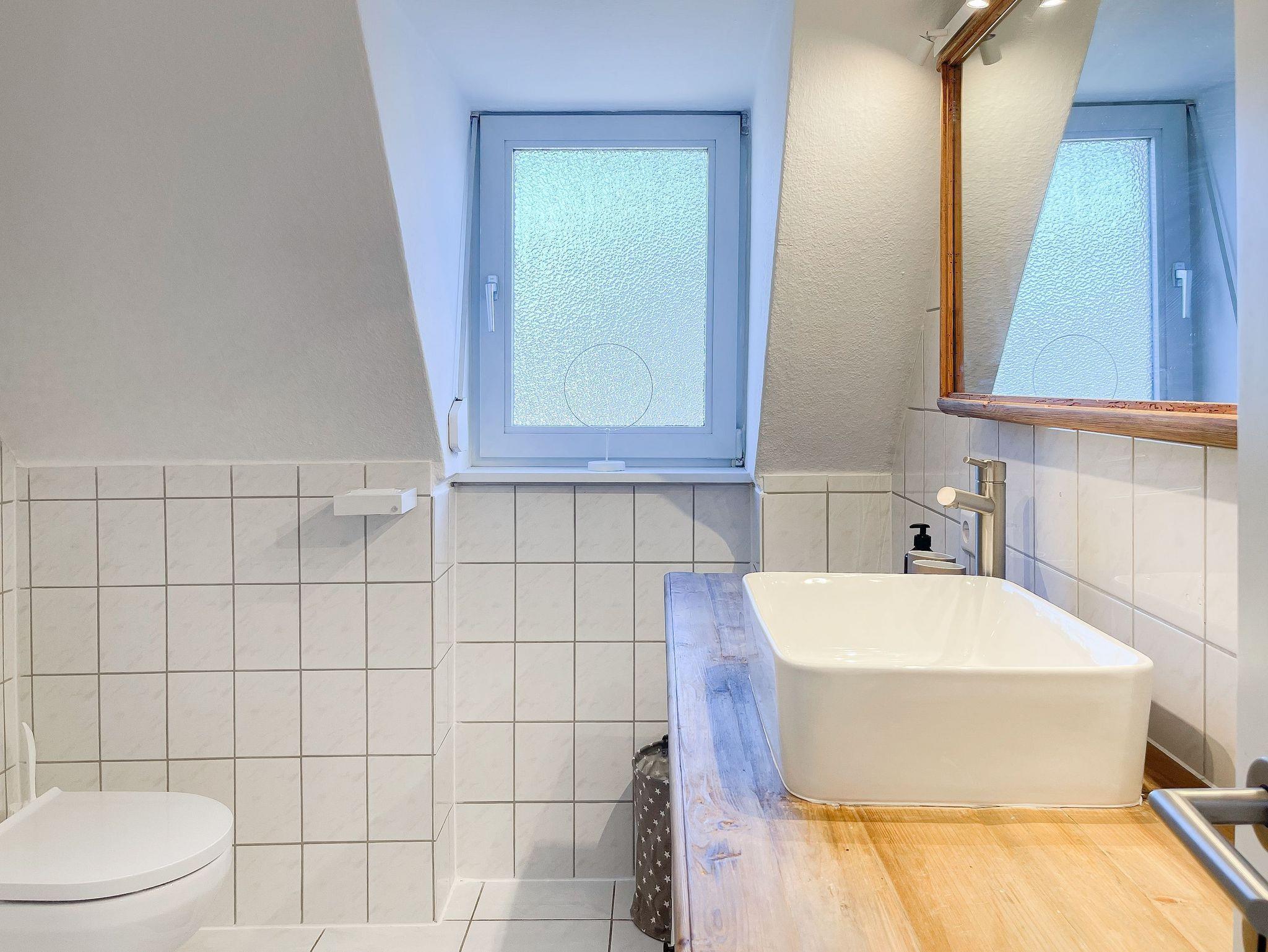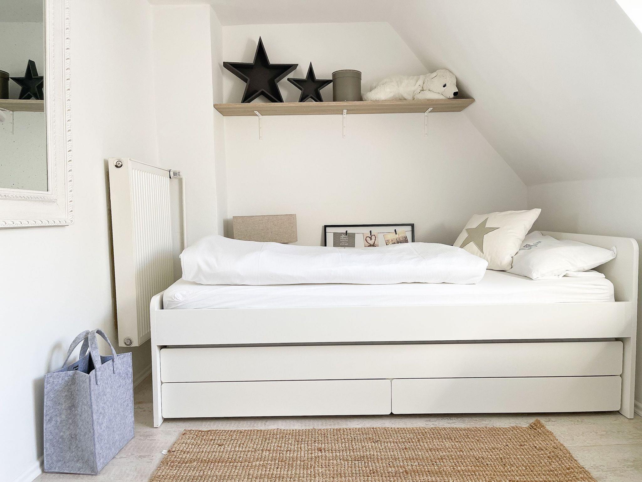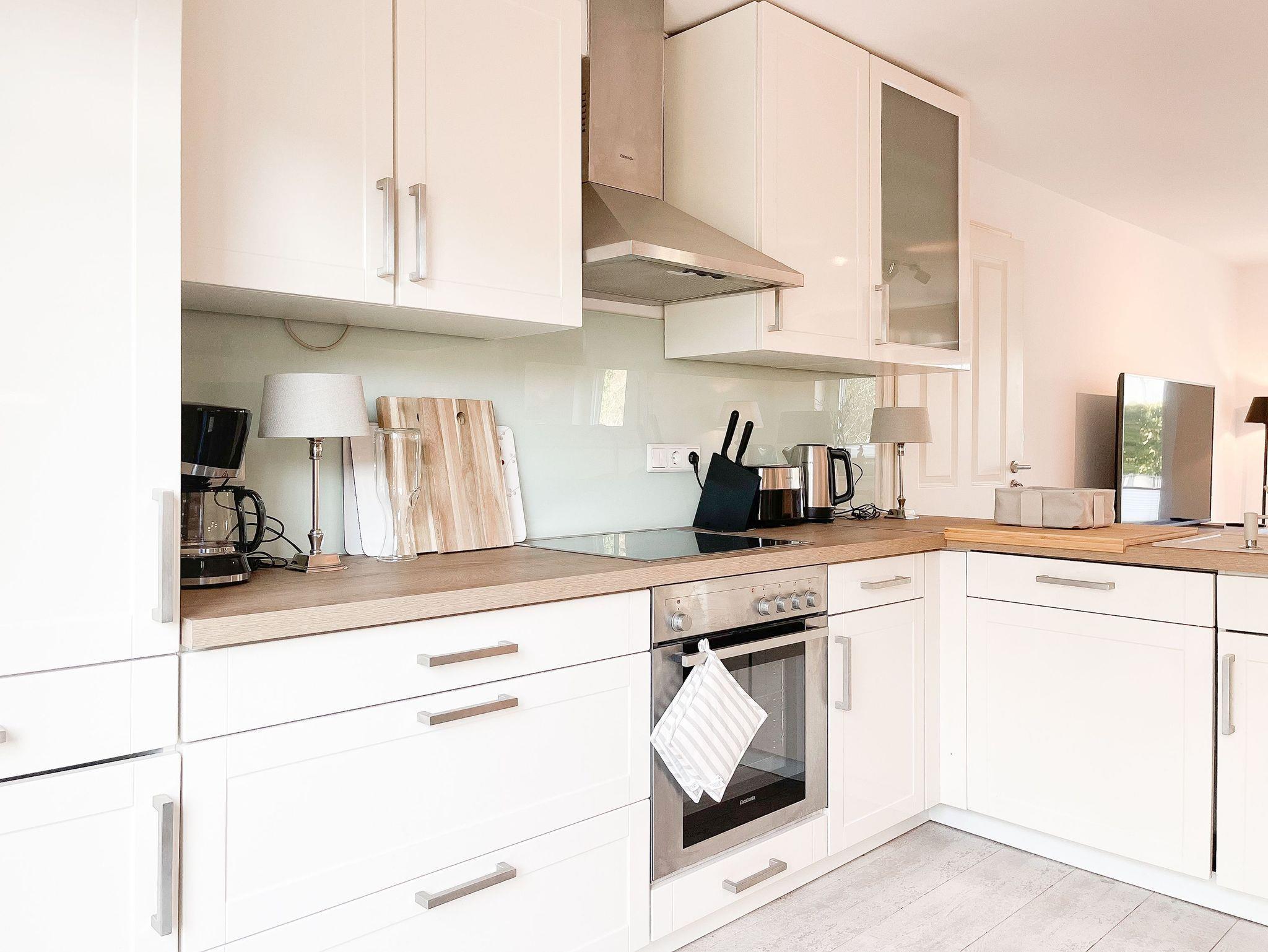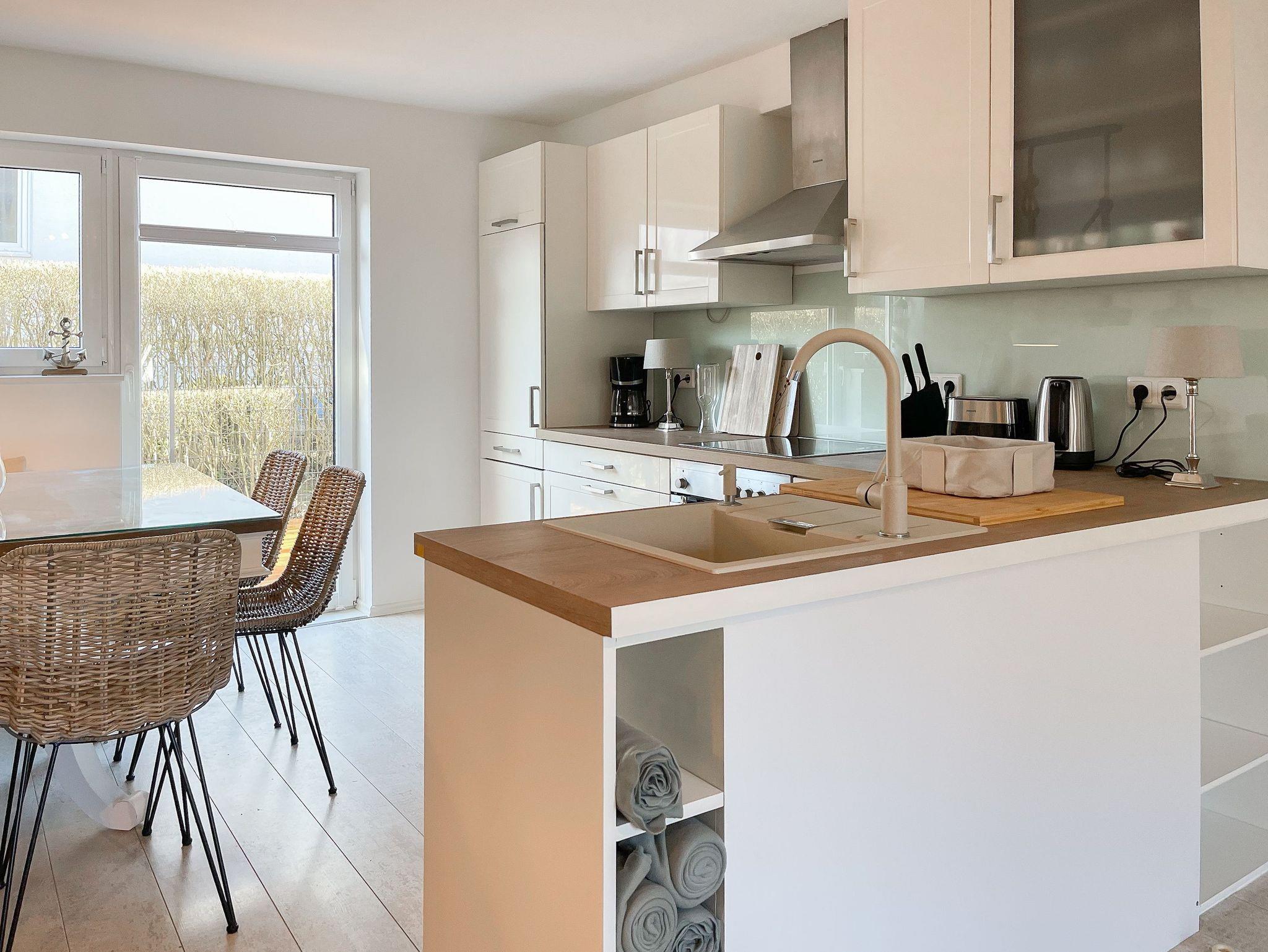 Strandflair pur! Das renovierte und mit viel Liebe zum Detail ausgestattete Ferienhaus Strandbude bietet tolles Strandambiente, um einen entspannten Urlaub in Ostseenähe zu verleben. Natürliche Materialien und die äußerst geschmackvolle Einrichtung des Altbaus sorgen für eine herrliche Wohnatmosphäre im Hampton Style. Es erwartet Sie ein charmanter Wohnbereich mit einem hochwertigen Sofa, Sessel und XL TV. Auf der vorgelagerten Terrasse 1 können sie bereits die ersten Sonnenstrahlen beim Morgenkaffee genießen. Die anschließende Küche ist gut ausgestattet und der geschmackvoll gestaltete Essbereich ist ebenso Treffpunkt für gemütliches Beisammensein wie auch die[nbsp][nbsp]anschließende Terrasse 2 mit Sonne satt. Die Außenbereiche sind mit Gartenmöbeln und einem Strandkorb ausgestattet. Im Obergeschoss befindet sich ein Schlafzimmer mit einem Boxspringdoppelbett (180x200), Kleiderschrank und TV und ein weiteres Schlafzimmer mit einem Einzelbett, kleinem Kleiderschrank und einem Schreibtisch. Im Spitzboden (Deckenhöhe 1,80 m), der über eine Raumspartreppe zu erreichen ist, befindet sich das 3. Schlafzimmer mit einem Doppelbett (180x200) und eine Kleiderstange auf Rollen. Die Fenster der Schlafräume lassen sich verdunkeln. Ein Bad mit Badewanne befindet sich im Erdgeschoss, das zweite Bad mit Dusche im Obergeschoss. WLAN steht selbstverständlich zur kostenlosen Nutzung zur Verfügung. Eine Waschmaschine und ein Trockner sind im Keller untergebracht. Ein Parkplatz und ein abschließbarer Fahrradschuppen befinden sich direkt am Haus.