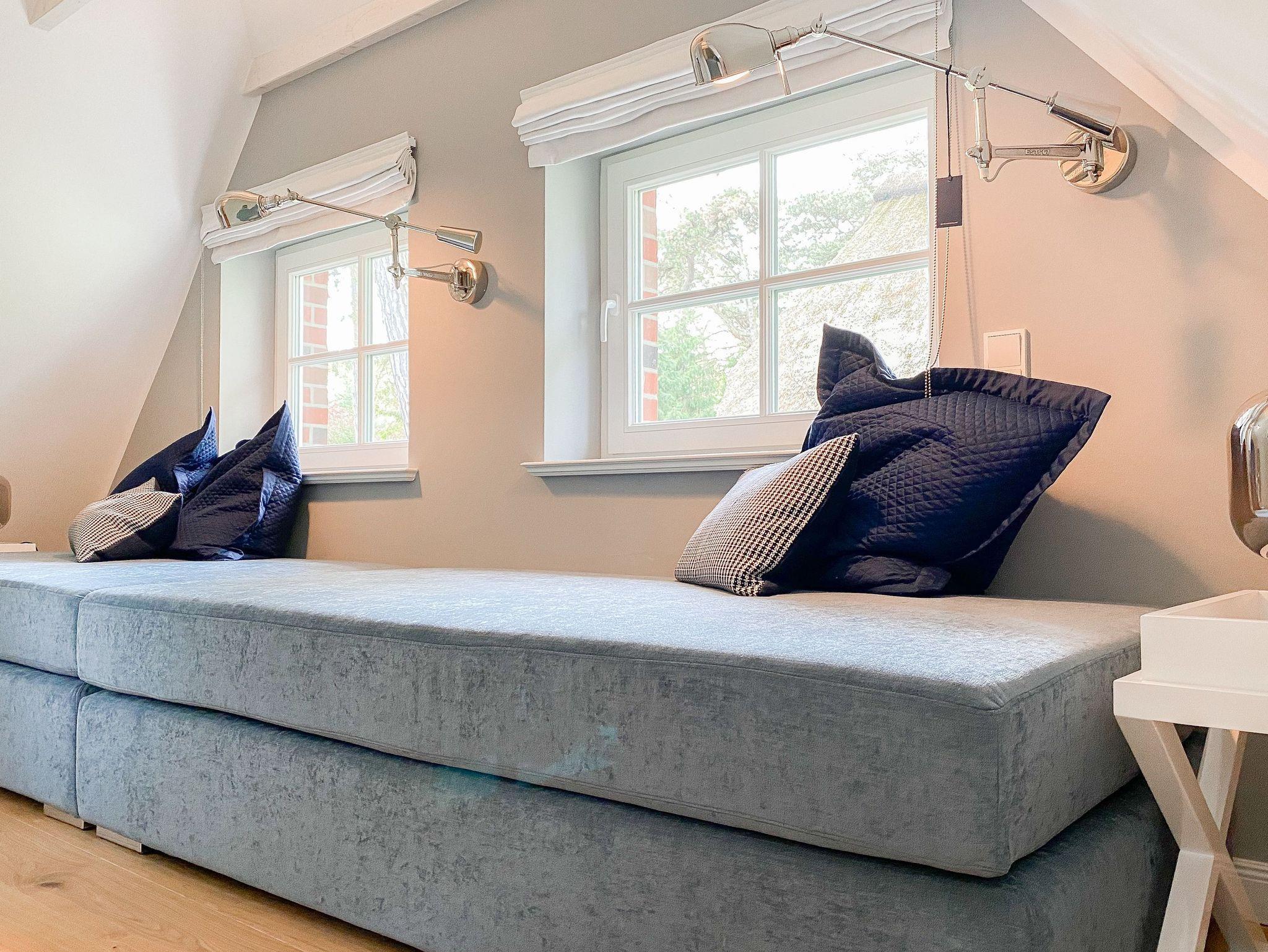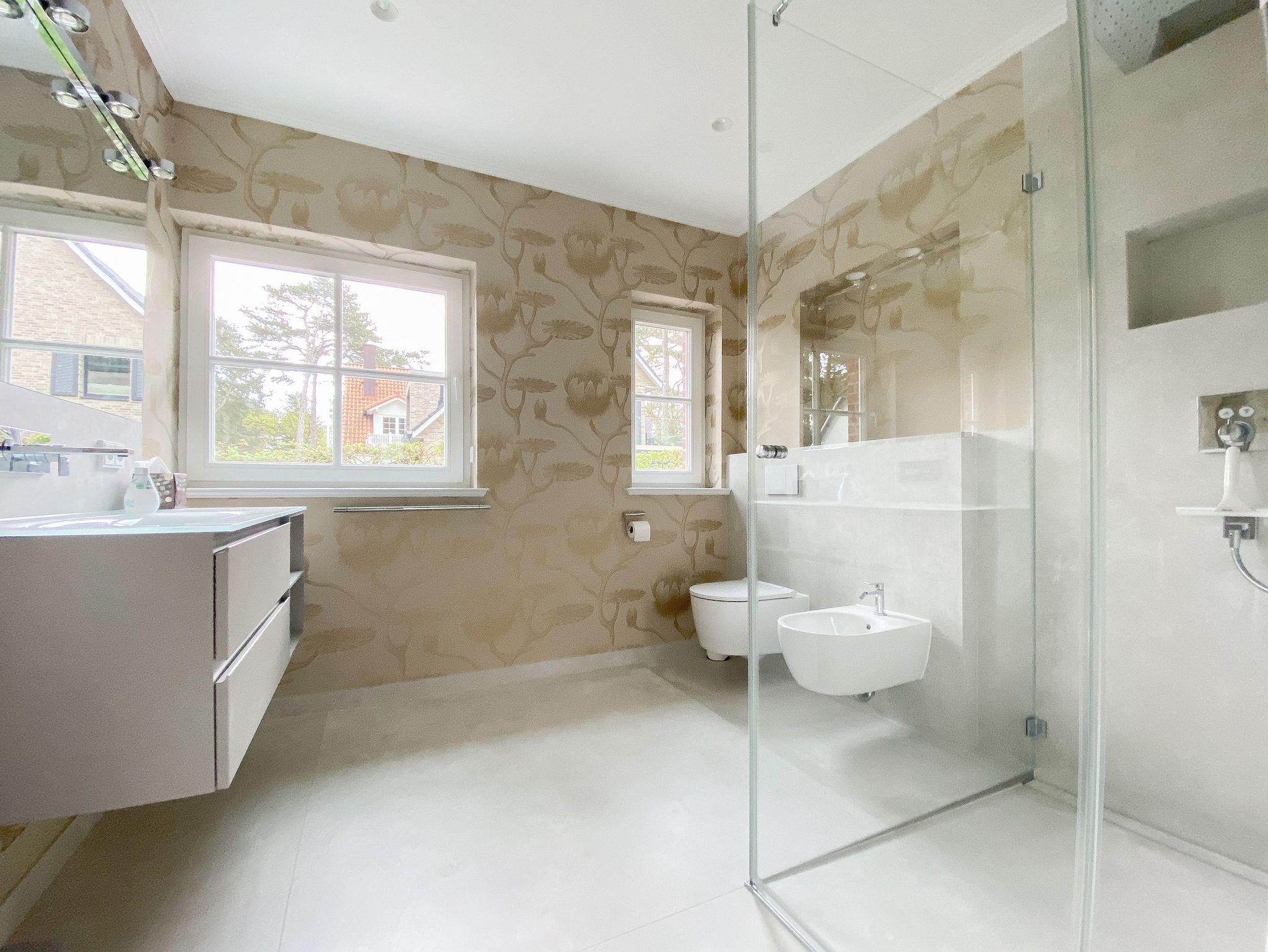 Zeitgemäßer Luxus in Perfektion. Das Captains Huus wurde aufwendig saniert ohne den ursprünglichen Charme zu verlieren. Dem Innenarchitekten ist es gelungen, unter Verwendung warmer Farben, hochwertiger Materialien und exklusivem Mobiliar, ein besonderes Ambiente zum Wohlfühlen zu schaffen, das höchsten Ansprüchen gerecht wird. Im Erdgeschoss erwartet Sie ein äußerst geschmackvoller Wohnbereich, lichtdurchflutet und mit herrlichem Blick in den großzügigen Garten in Südwest Ausrichtung. Es gibt zwei große Terrassen, überdacht und mit Heizstrahlern versehen, sodass auch an kühleren Abenden der wunderschöne Außenbereich genutzt werden kann. Selbstverständlich stehen hochwertige Gartenmöbel, Sonnenliegen und ein Gasgrill bereit. Der großzügig gestaltete Essbereich bietet ausreichend Platz für acht Personen und die anschließende Küche ist bestens ausgestattet. Eines der drei Schlafzimmer, ein exklusives Bad mit Walk In Dusche und zusätzlichem Bidet sowie ein weiterer Raum, in dem neben der Garderobe auch eine Waschmaschine und ein Trockner untergebracht sind, befinden sich ebenfalls im Erdgeschoss. Im Obergeschoss sind zwei weitere großzügige Schlafzimmer und ein traumhaftes Bad mit Ostseeblick, freistehender Badewanne, Walk In Dusche und Doppelwaschtisch, untergebracht. Alle Schlafzimmer sind mit Boxspringdoppelbetten (180x200), TV und Verdunkelungsrollos ausgestattet. Das Haus verfügt über eine Fußbodenheizung.
