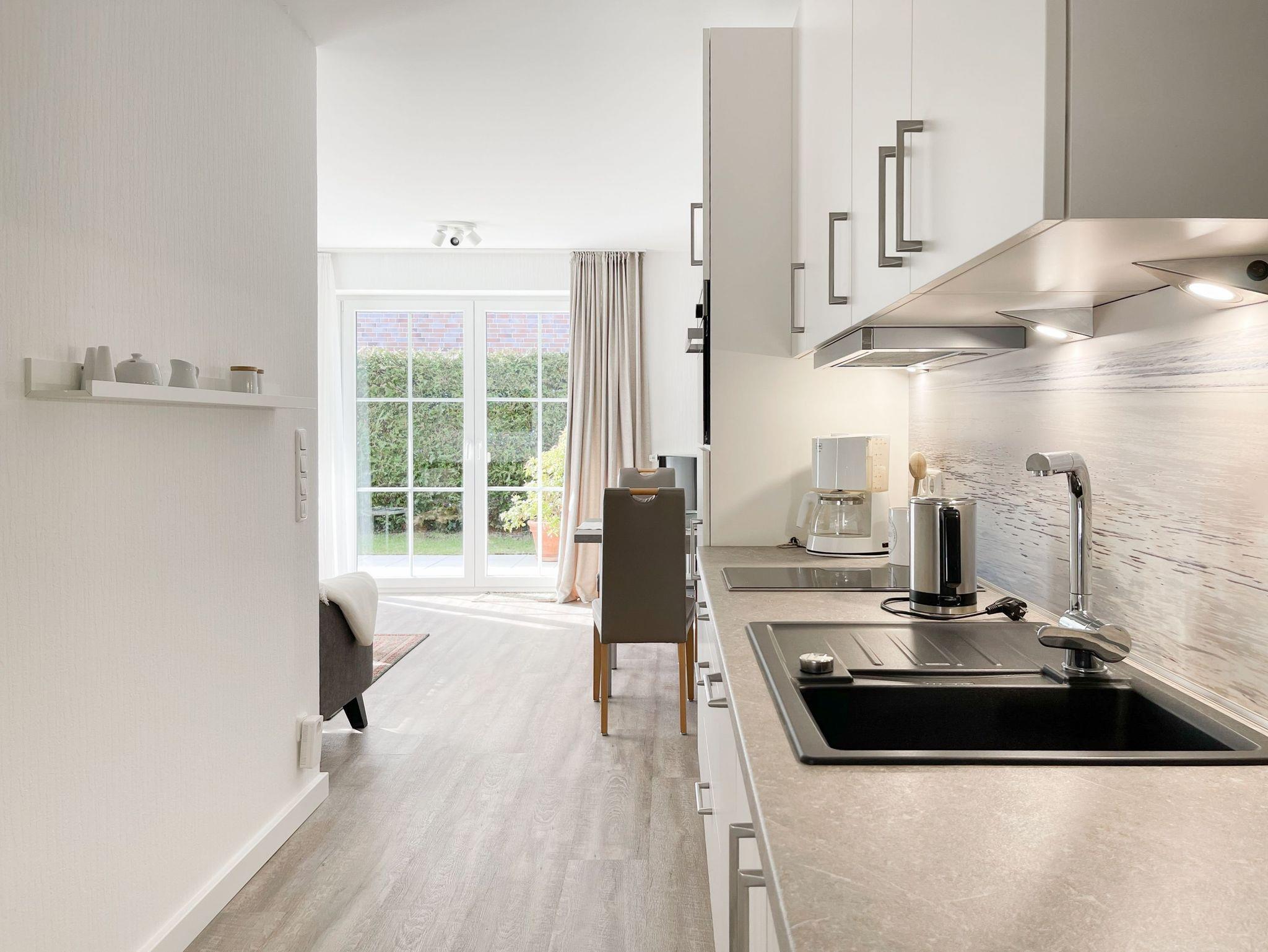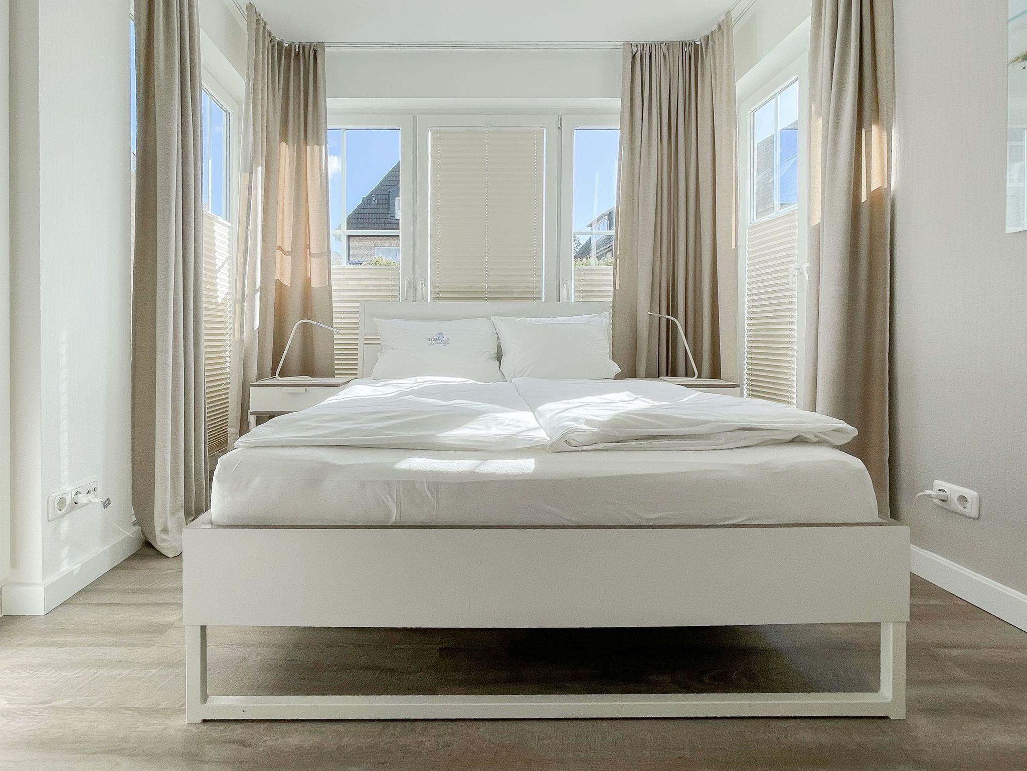 Es erwartet Sie eine gepflegte Ferienwohnung mit zwei separaten Schlafzimmern, die mit Doppelbetten (180x200 und 140x200) und Verdunkelungsvorhängen ausgestattet sind und ein helles Duschbad mit Fenster und Handtuchwärmer. Das Wohnzimmer ist komfortabel mit einer Couchgarnitur und einer integrierten Essecke für 4 Personen eingerichtet. TV, Hifi Anlage und kostenloses WLAN stehen zur Verfügung. Die offene Einbauküche ist gut ausgestattet. Dank großer Fensterflächen sind die Räumlichkeiten hell und freundlich. Als idealer Rückzugsort[nbsp][nbsp]während eines entspannten Urlaubs eignet sich die großzügige, umlaufende Sonnenterrasse in Südausrichtung. Das Haus verfügt selbstverständlich über einen Aufzug. Zur Wohnung gehört ein Stellplatz auf dem Grundstück. Ein Fahrradständer ist vorhanden.