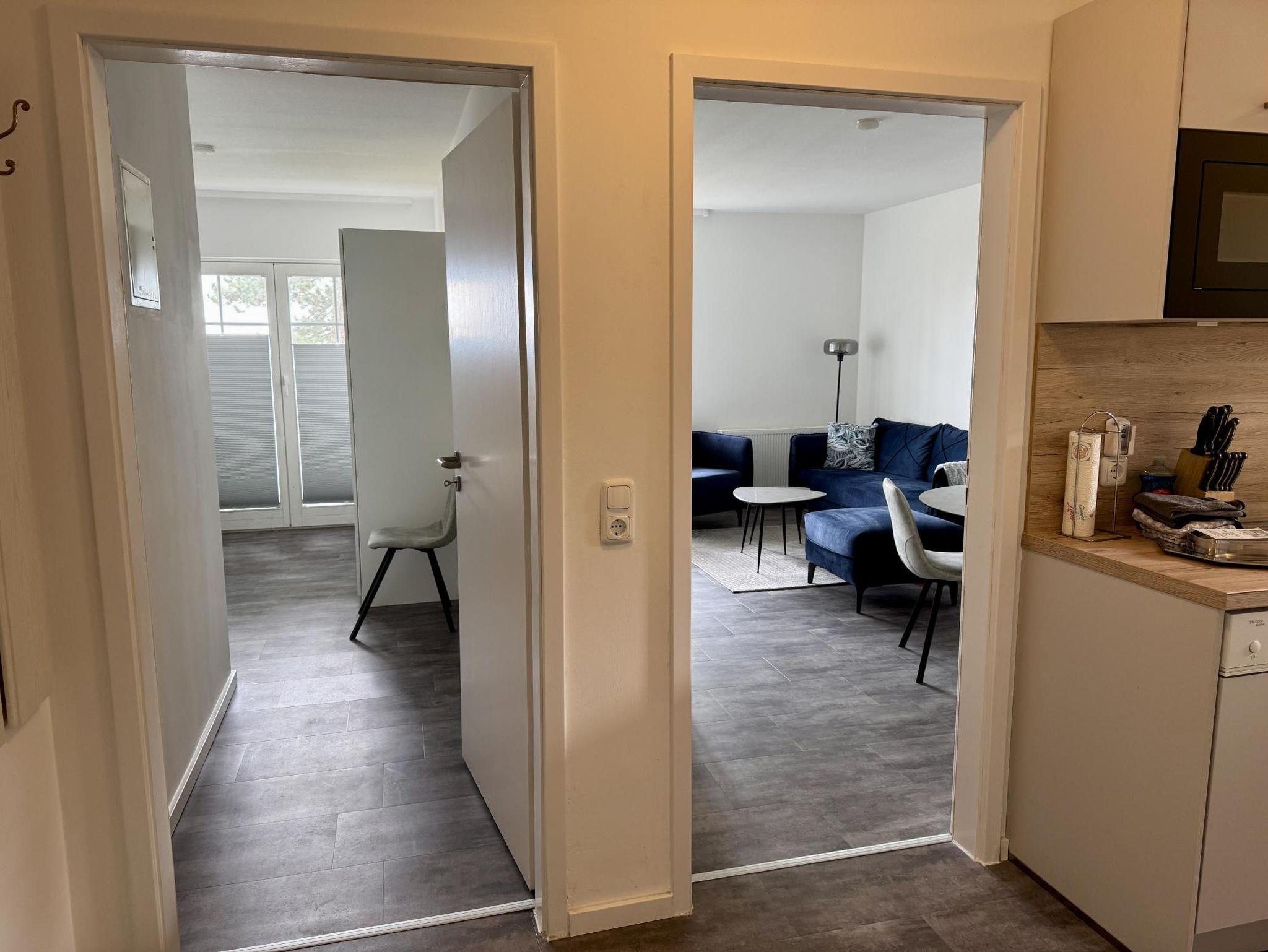 Wir bieten Ihnen Komfort- Ferienwohnungen mit einer großzügige Ausstattung mit gut ausgestatteter Küche an (z. B. Kaffeemaschine, Wasserkocher, Toaster, Kühlschrank mit Eisfach, Mikrowelle) und Parkplatz direkt am Haus.