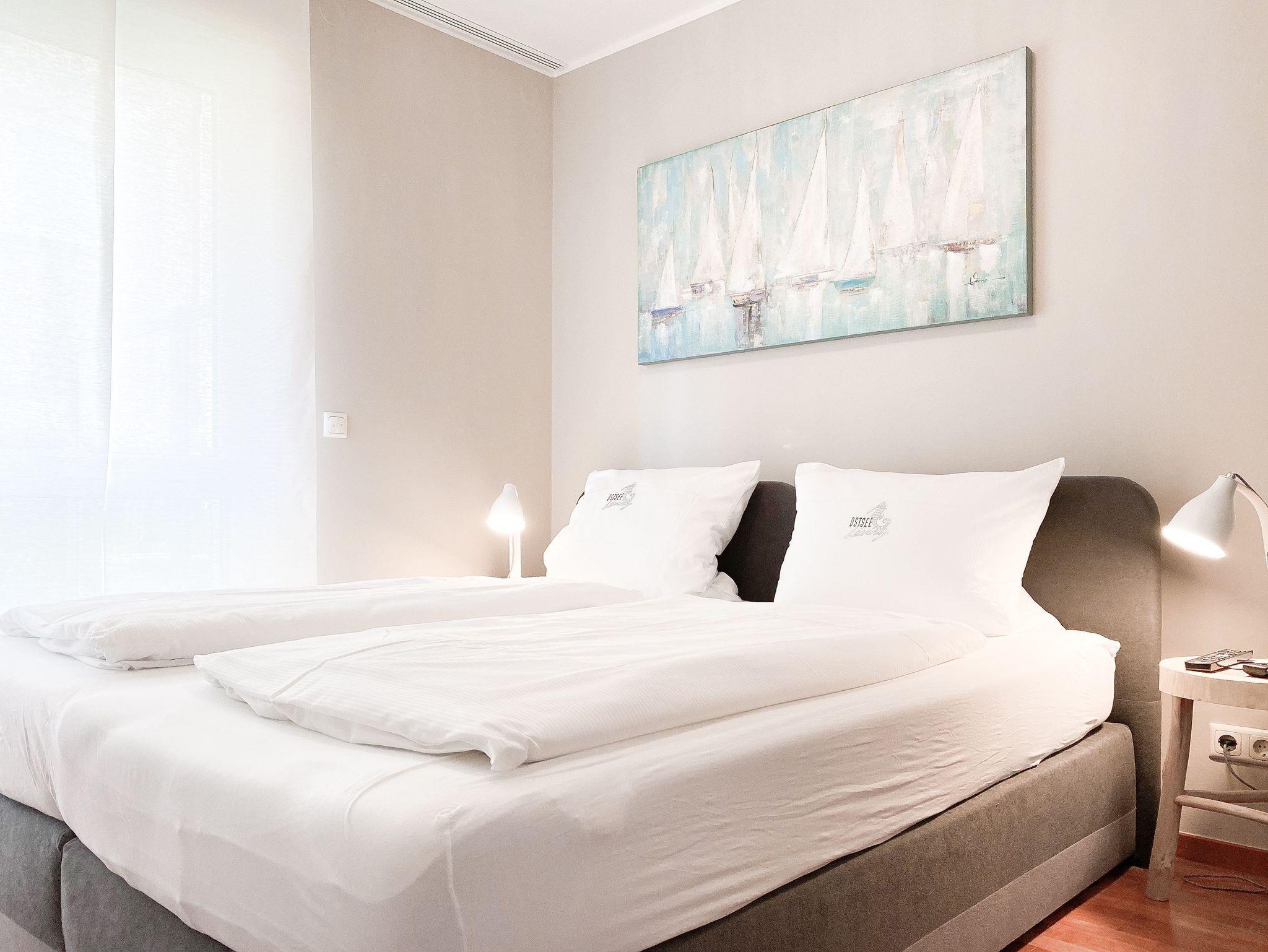 Die hochwertige Ferienwohnung Fritz Strandkate verfügt über einen großzügigen Wohnbereich mit angrenzendem Essbereich, der ausreichend Platz für 6 Personen bietet. TV, Hifi Anlage und WLAN sind selbstverständlich vorhanden. Bodentiefe Fensterelemente und die Südausrichtung der Wohnung sorgen für helle und sonnige Räumlichkeiten. Sämtliche Fenster sind mit elektrischen Außenjalousien versehen und die Fußbodenheizung sorgt für ein angenehmes Raumklima.[nbsp] Die offene, hochwertige Einbauküche ist bestens ausgestattet und lässt keine Wünsche offen. Es stehen zwei separate Schlafzimmer mit TV zur Verfügung. [nbsp]Eines ist mit einem komfortablen Doppelbett[nbsp] ausgestattet, das andere mit zwei Einzelbetten, die sich schnell zusammen stellen lassen. Das Bad ist sehr hochwertig und verfügt über eine bodentiefe XXL Dusche. Ein separates Gäste WC ist selbstverständlich vorhanden. Das Haus am Meer verfügt über einen Fahrstuhl und eine Tiefgarage (Einfahrtshöhe 2 m), in der ein fester Stellplatz reserviert ist. Ein Fahrradkeller, Münzwaschmaschine und -Trockner sind vorhanden.