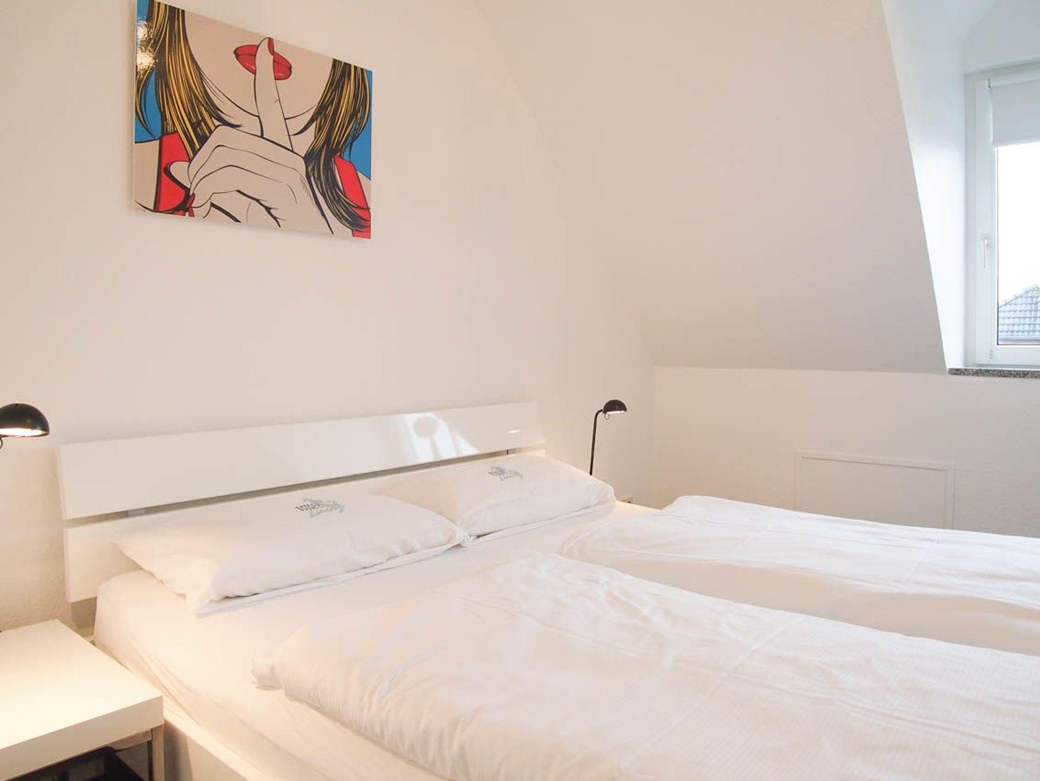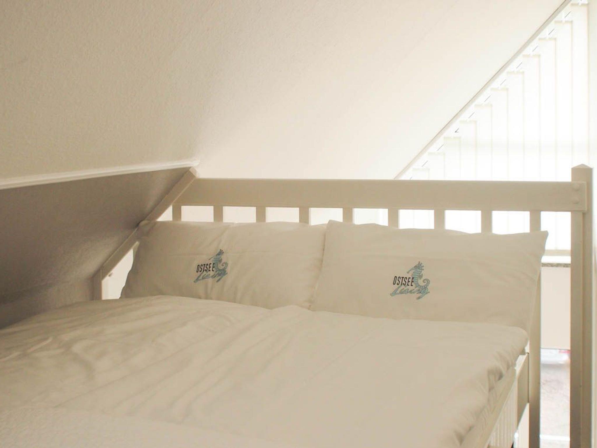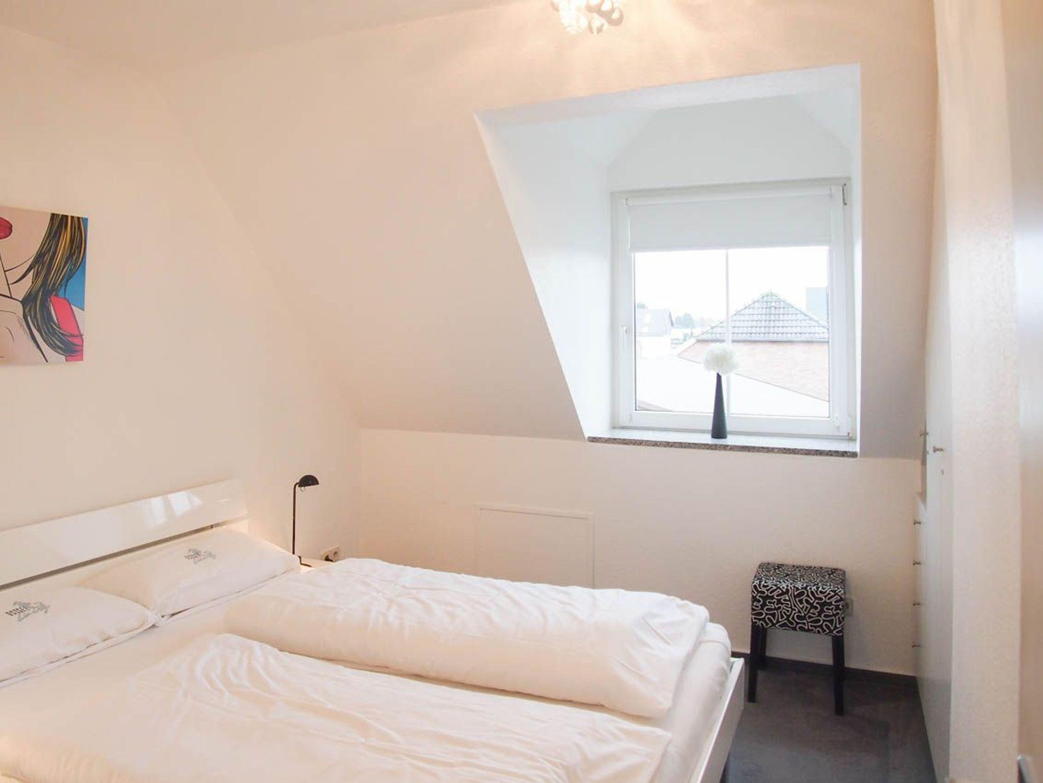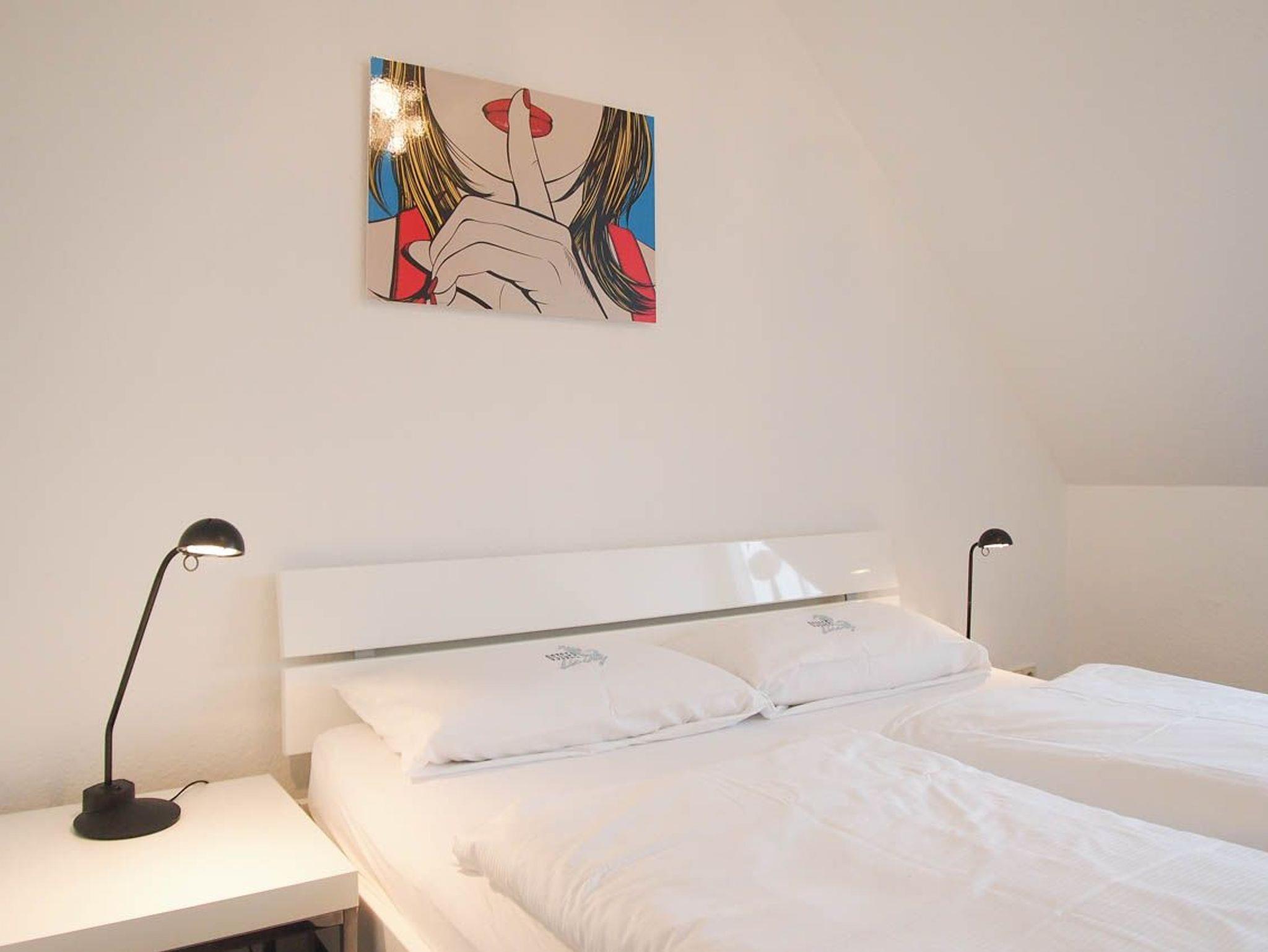 Die Wohnung befindet sich im 2. Obergeschoss einer kleinen Anlage und bietet auf 50 qm über 2 Wohnebenen ausreichend Platz für 2-4 Personen. Auf der unteren Ebene befinden sich ein Schlafzimmer mit Doppelbett (160x200), ein hochwertiges Duschbad mit Fußbodenheizung und ein lichtdurchfluteter Wohnraum mit TV. Die integrierte Küche ist gut ausgestattet und der anschließende Essbereich ist auf 3 Personen zugeschnitten. Eine weiße, offene Treppe führt zur Galerie mit dem zweiten Schlafbereich, der ebenfalls mit einem Doppelbett (140x200) ausgestattet ist. Der sonnige Südwestbalkon ist mit Gartenmöbeln sowie einer Markise ausgestattet und schließt sich direkt dem Wohnbereich an. WLAN steht zur kostenfreien Nutzung zur Verfügung.