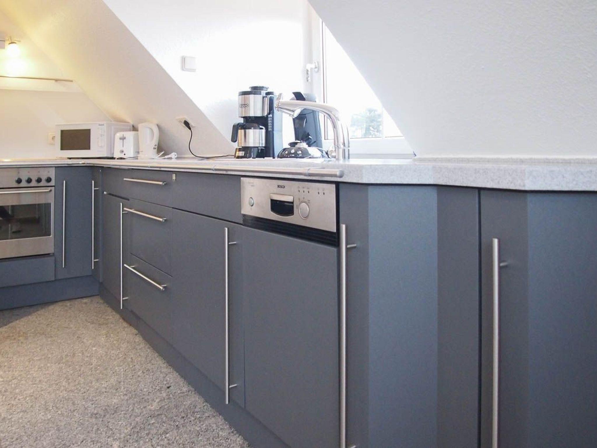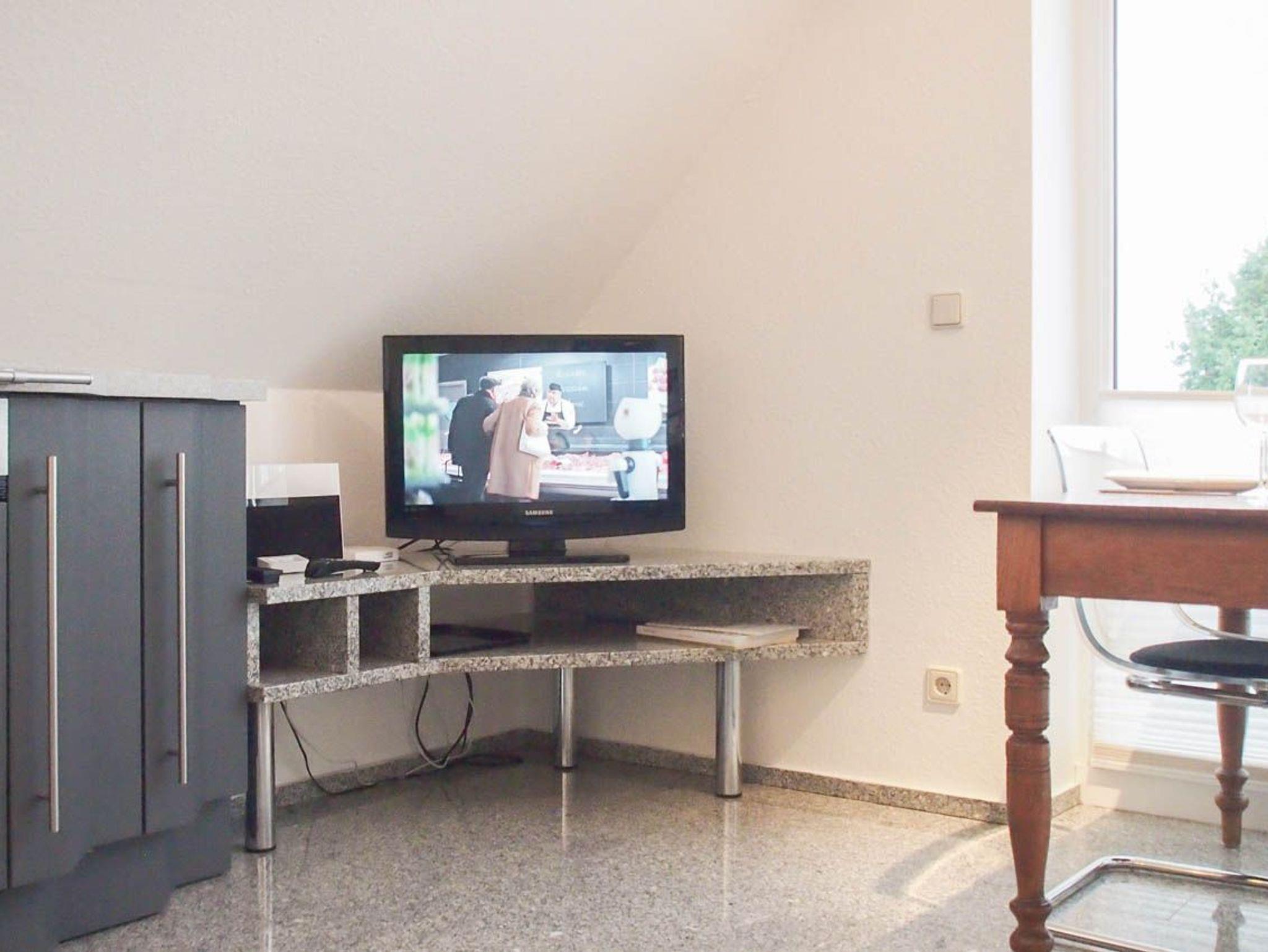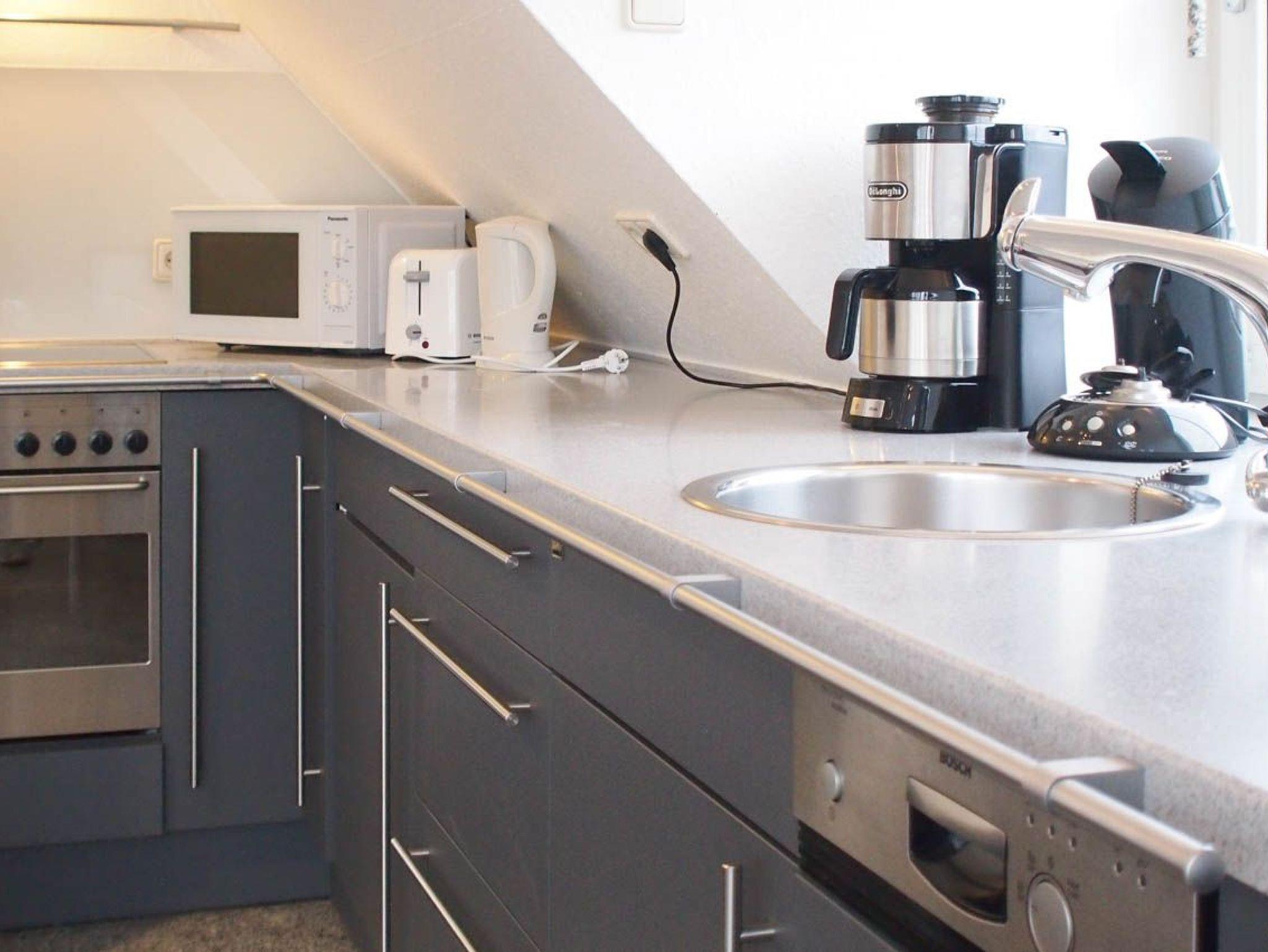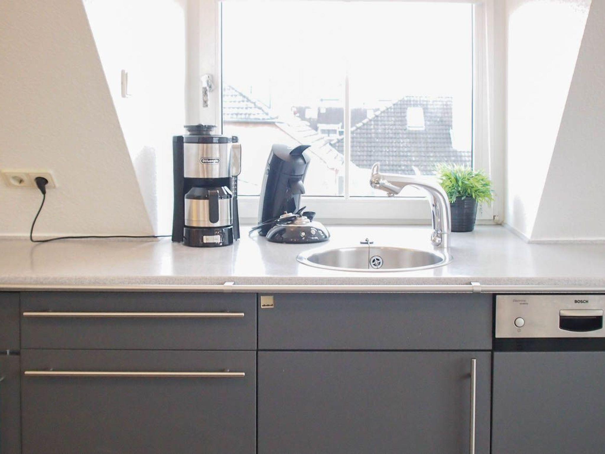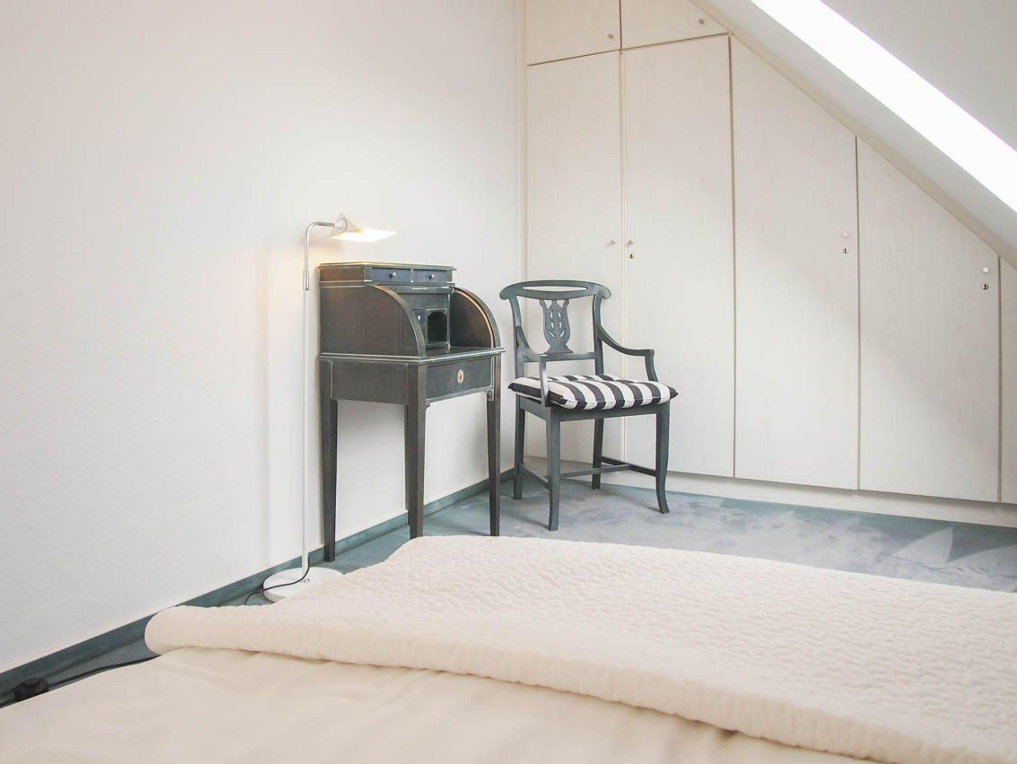 Die Wohnung befindet sich im 2. Obergeschoss einer kleinen Anlage und bietet auf 50 qm über 2 Wohnebenen ausreichend Platz für 2-4 Personen. Auf der unteren Ebene befinden sich ein Schlafzimmer mit Doppelbett (160x200), ein hochwertiges Duschbad mit Fußbodenheizung und ein lichtdurchfluteter Wohnraum mit TV. Die integrierte Küche ist gut ausgestattet und der anschließende Essbereich ist auf 3 Personen zugeschnitten. Eine weiße, offene Treppe führt zur Galerie mit dem zweiten Schlafbereich, der ebenfalls mit einem Doppelbett (140x200) ausgestattet ist. Der sonnige Südwestbalkon ist mit Gartenmöbeln sowie einer Markise ausgestattet und schließt sich direkt dem Wohnbereich an. WLAN steht zur kostenfreien Nutzung zur Verfügung.