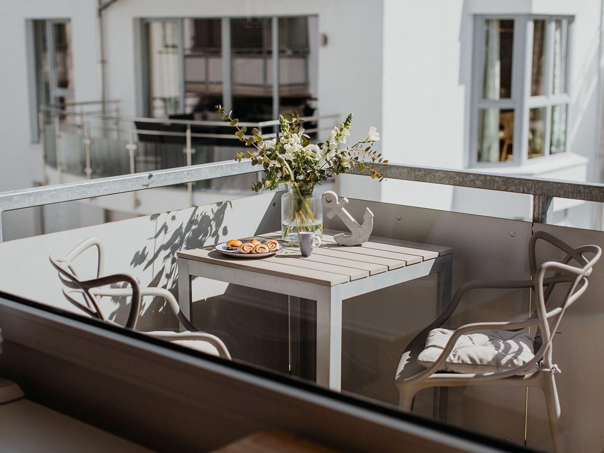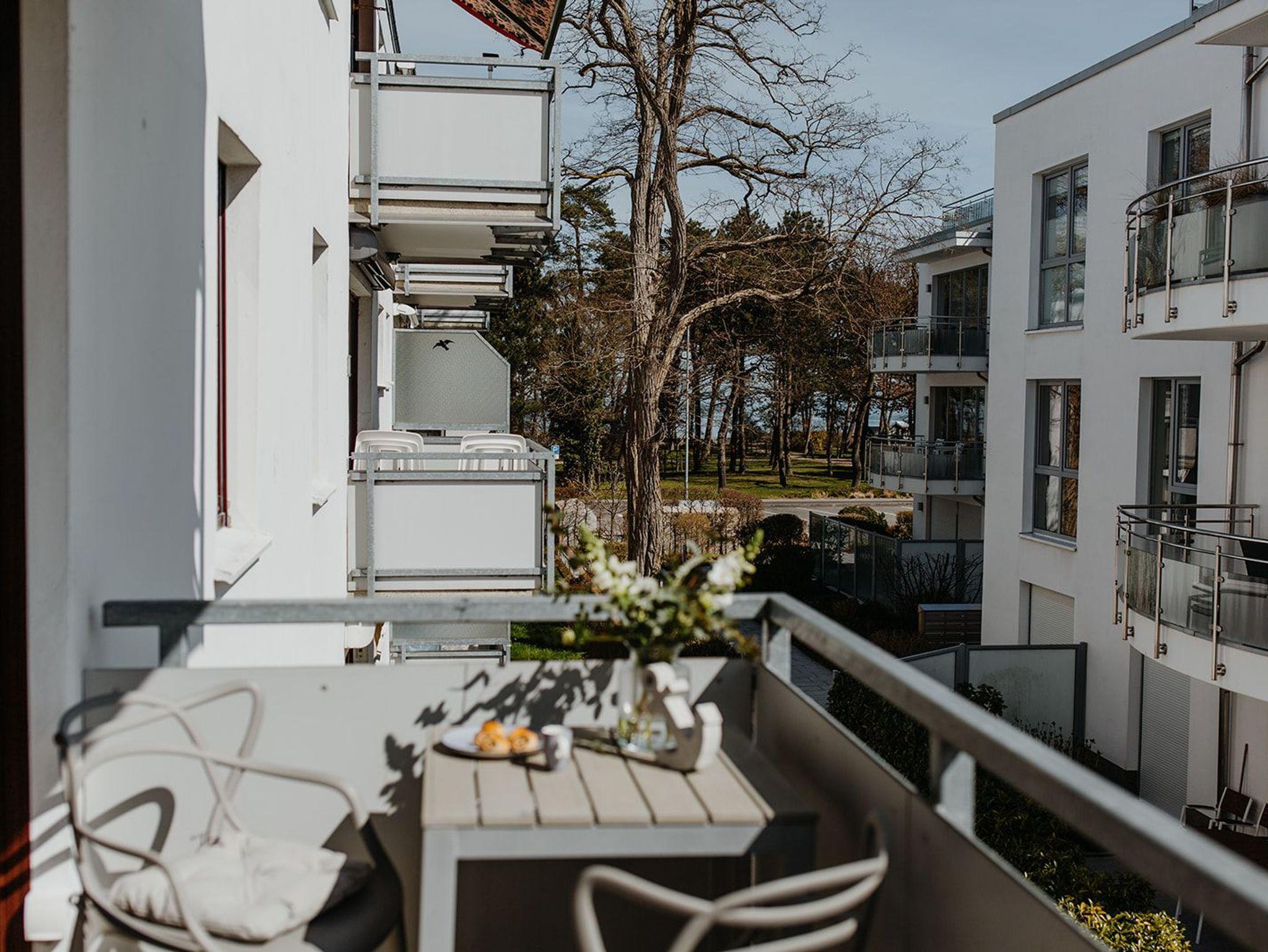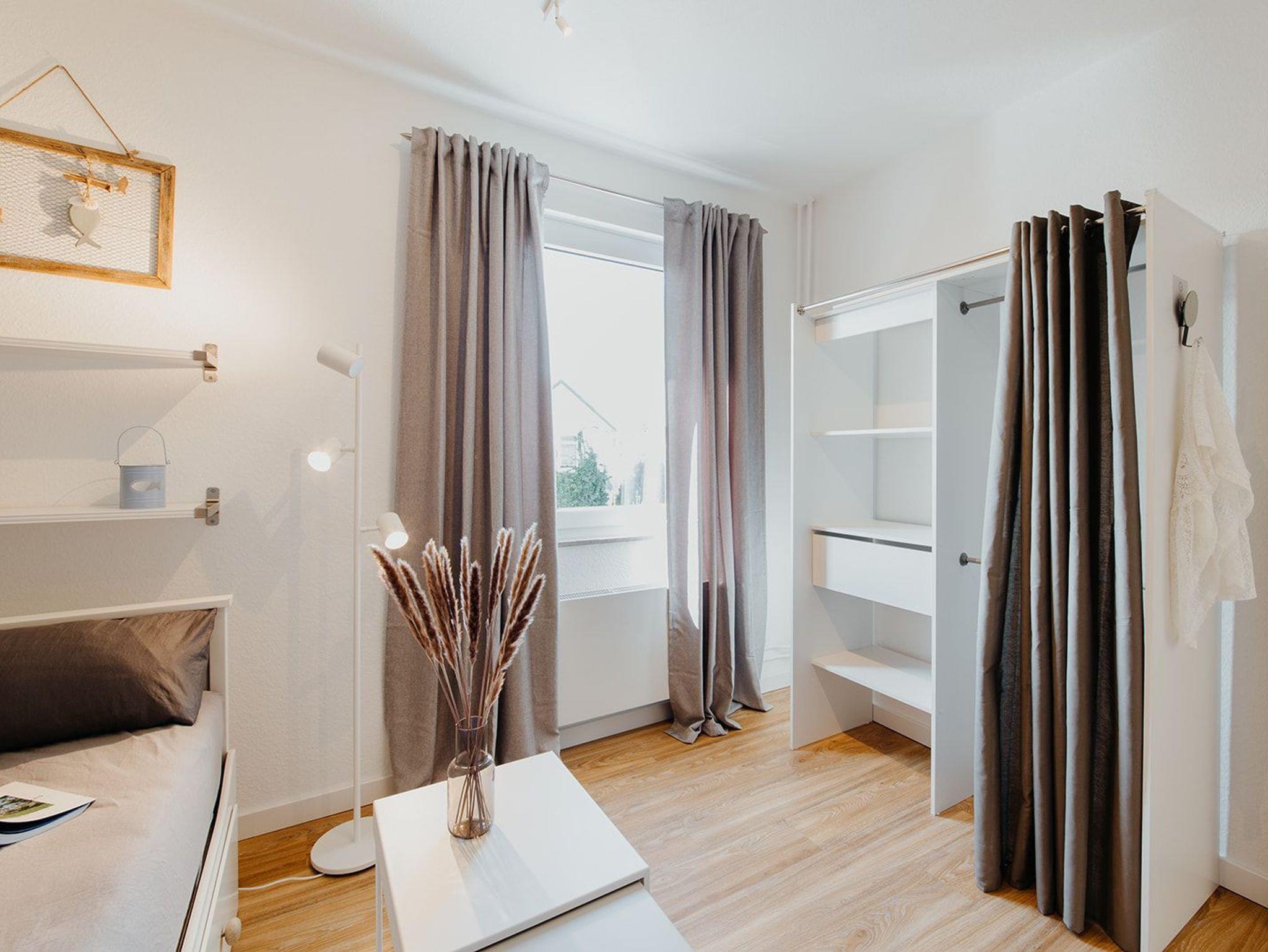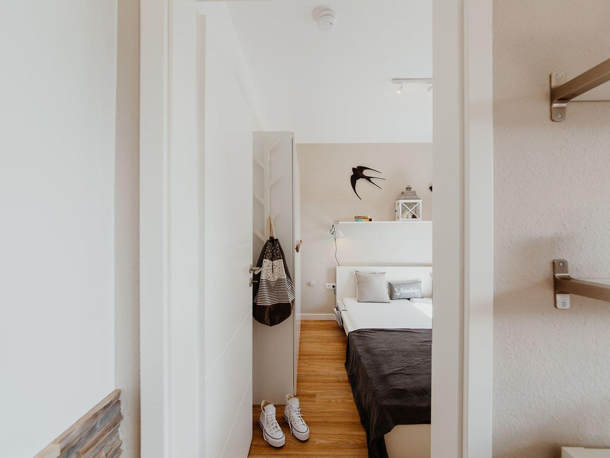 Klein aber fein, hell und freundlich und gespickt mit vielen liebevollen Details präsentiert sich die Ferienwohnung No. 188. Jeder qm ist optimal genutzt und mit ausreichend Ablageflächen, Stauraum und Haken versehen. Es gibt zwei separate Schlafzimmer, ausgestattet mit Doppelbett (180x200), Einzelbett mit Auszug (160x200), Verdunkelungsvorhängen und TV. Strandflair pur ist im Wohnbereich zu finden, der mit einem Sofa und einem Essbereich für 4 Personen ausgestattet ist. Die integrierte kleine Einbauküche fügt sich wunderbar ein und ist bestens ausgestattet. Vom vorgelagerten Sonnenbalkon mit elektrischer Markise und Gartenmöbeln kann man die Ostsee nicht nur hören sondern auch blitzen sehen.