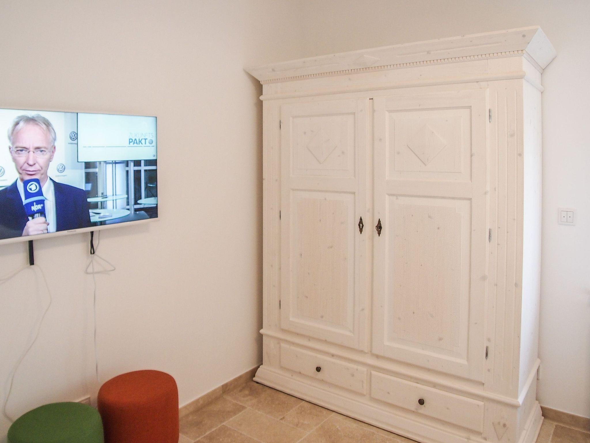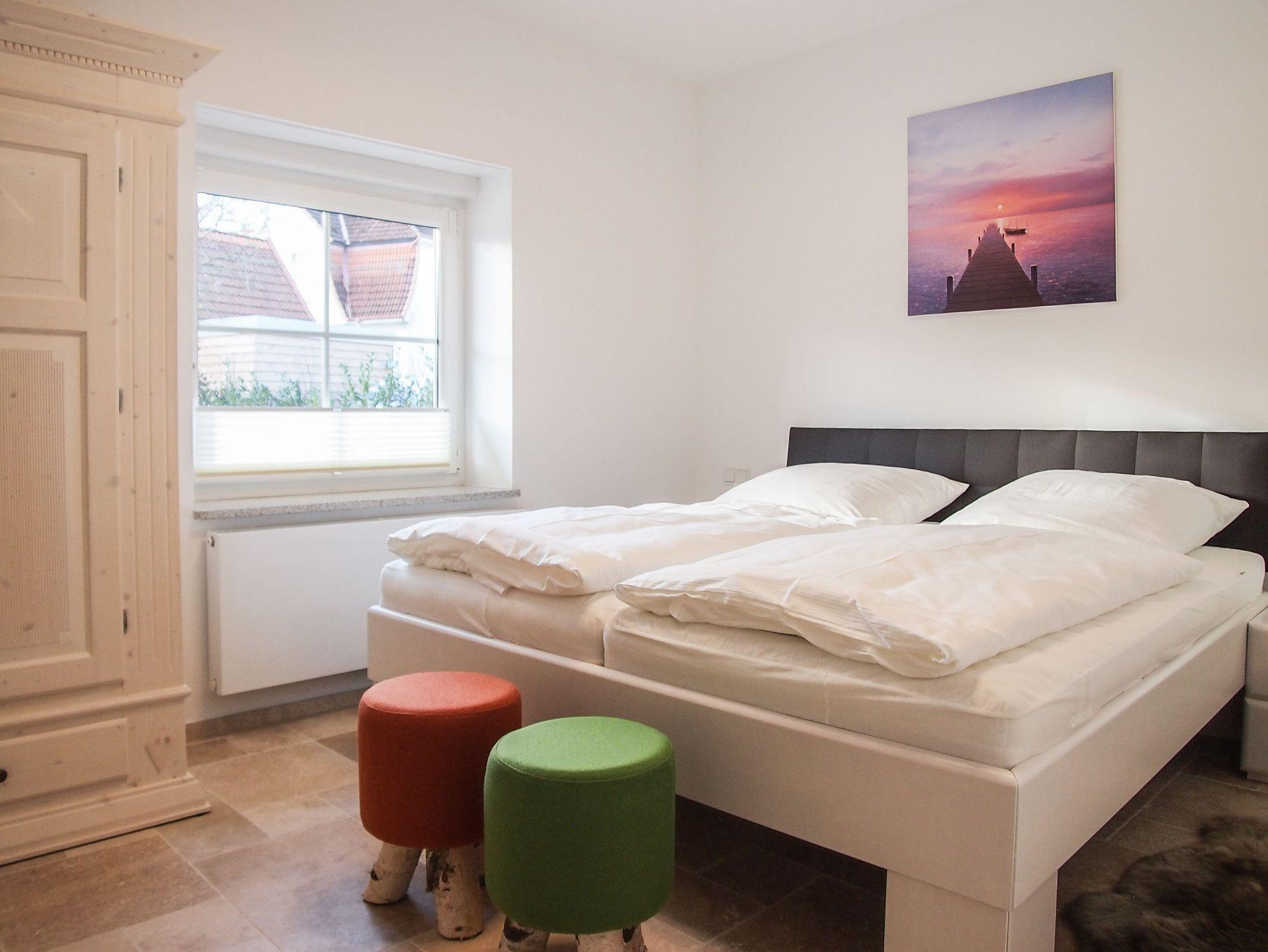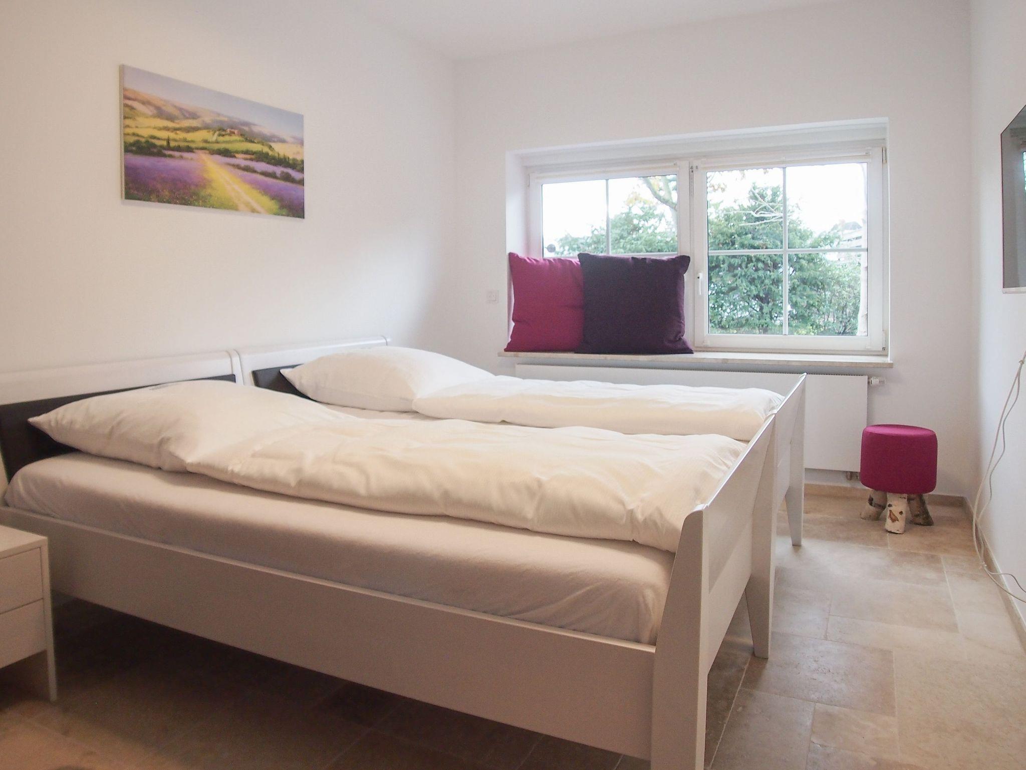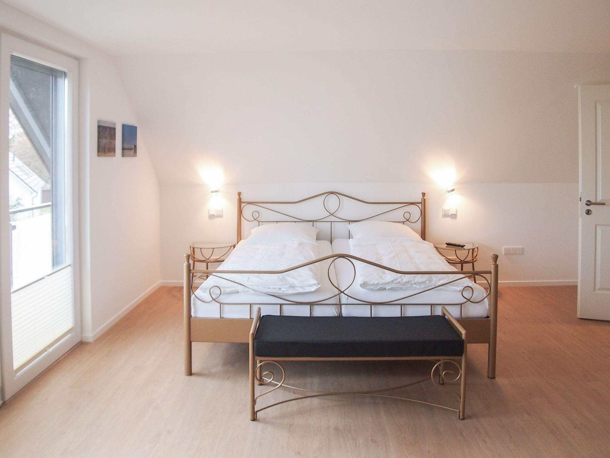 Im Erdgeschoss befinden sich zwei geräumige Schlafzimmer mit Doppelbetten und TV, zwei moderne Duschbäder sowie ein weiteres Schlafzimmer mit Einzelbett, Kinderbett und Wickelkommode für die Kleinsten. Weiter eine abgeschlossene, gut ausgestattete Küche mit gemütlichem Frühstücksbereich. Über den Flur ist das für 9 Personen ausgelegte Esszimmer sowie das großzügige, angeschlossene Wohnzimmer (TV, Sonosanlage, WLAN) zu erreichen. Im Obergeschoss sind zwei weitere große Schlafzimmer mit Doppelbetten, Balkon und TV sowie das Masterbad mit Badewanne, Dusche und integrierter Sauna. Alle Fenster sind mit elektrischen Außenjalousien versehen. Waschmaschine und Trockner sind im Keller untergebracht. Auf dem Grundstück befinden sich drei PKW Stellplätze. Am Haus befindet sich eine Wallbox zum Laden von E -Fahrzeugen (vorherige Anmeldung notwendig).