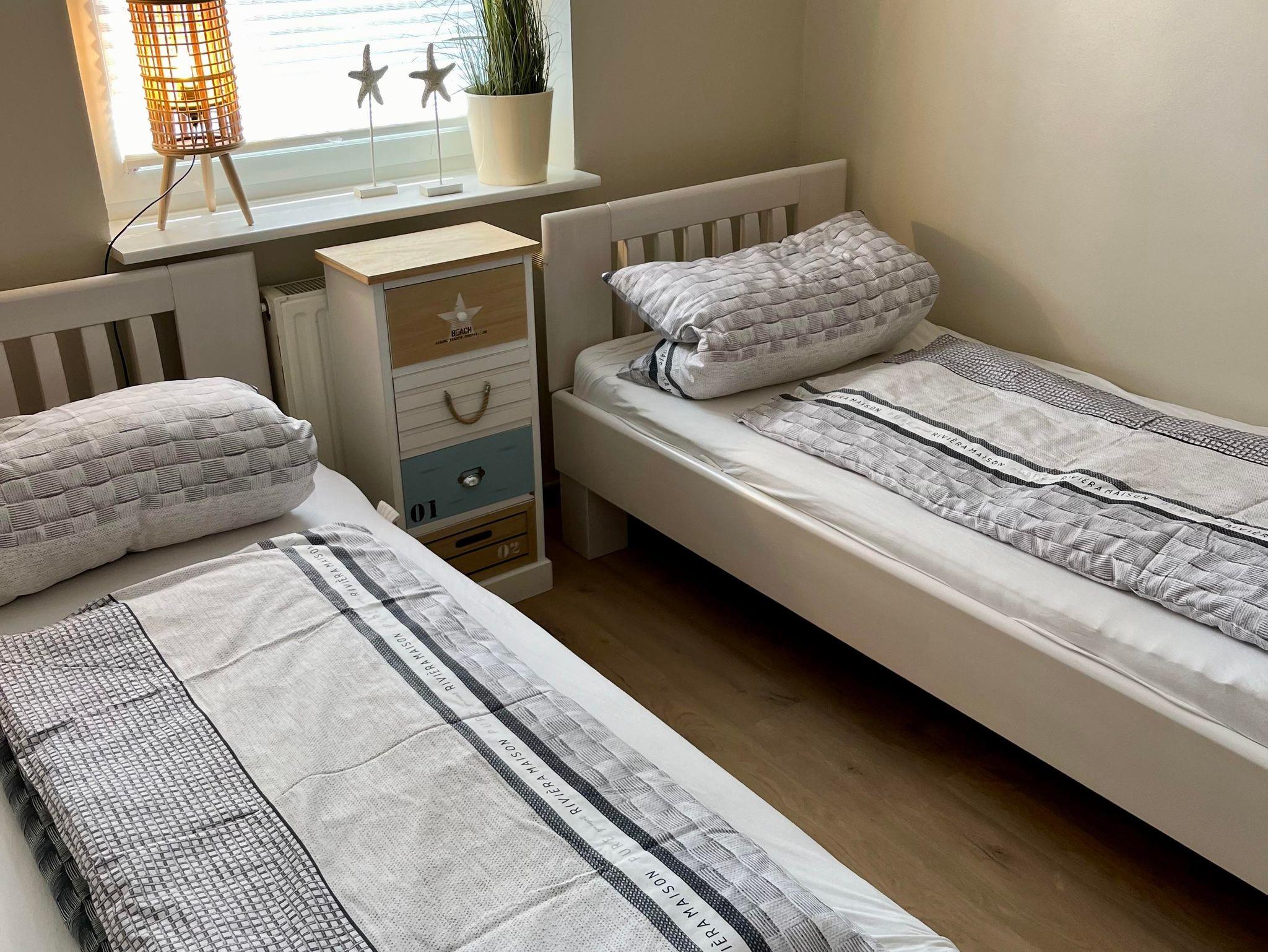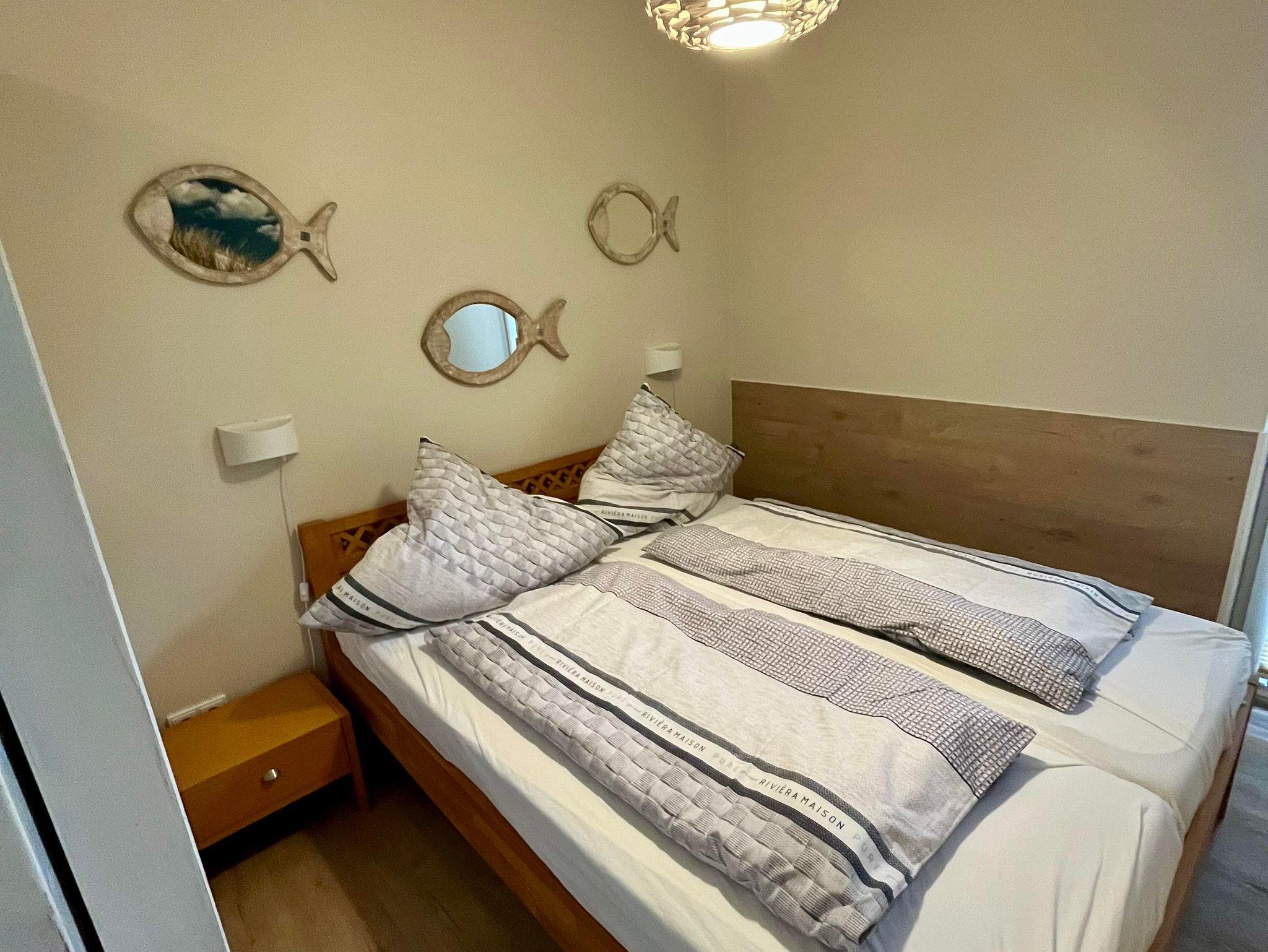 Die EG Wohnung hat 2 Schlafzimmer mit einem Doppelbett und 2 Betten. In den Sommermonaten steht Ihnen ein Strandkorb am Strand von Timmendorf zur Verfügung.