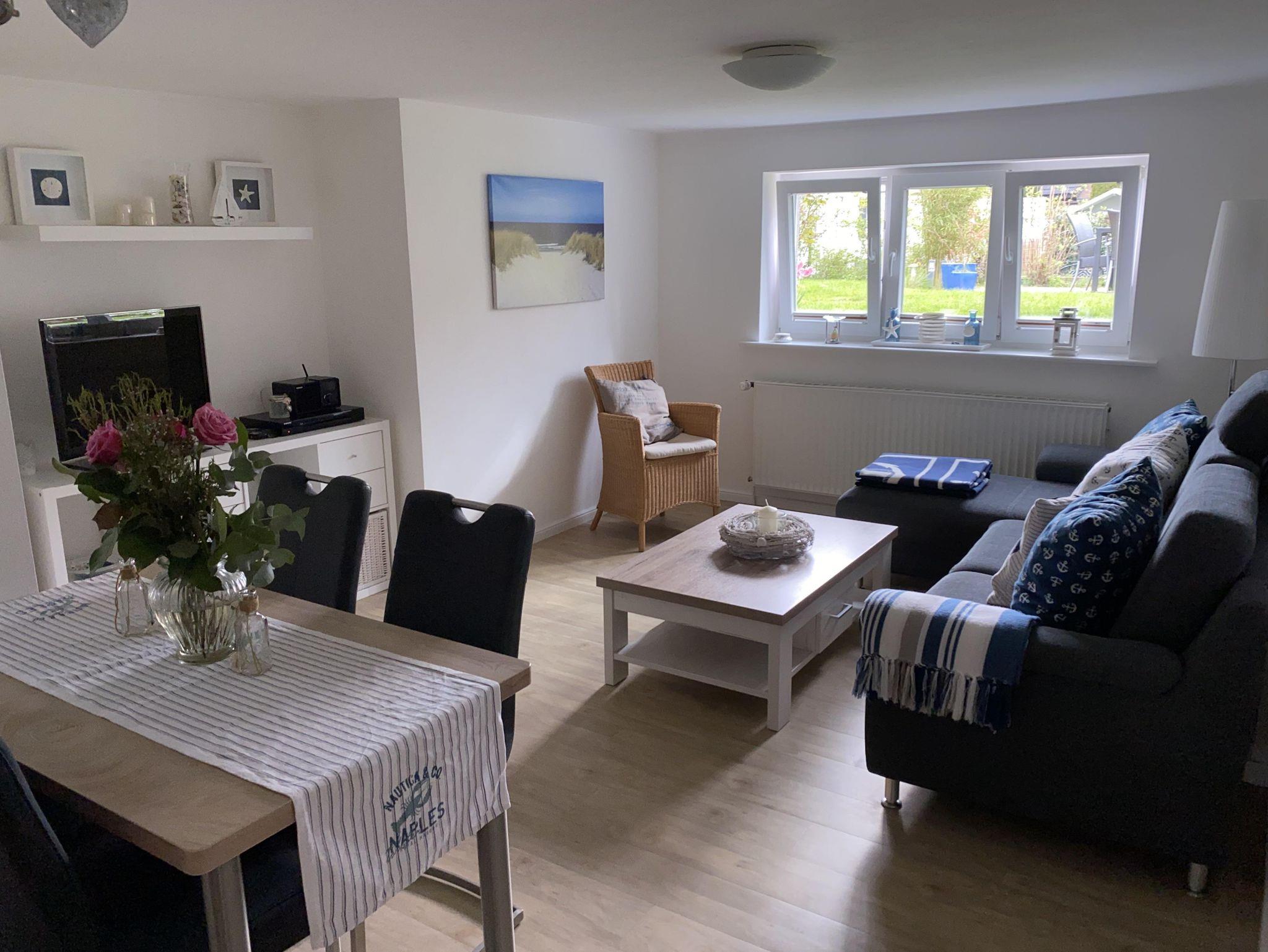 Der Wohnbereich ist hell und freundlich eingerichtet, ist geräumig und verfügt über Sat-Fernsehen.