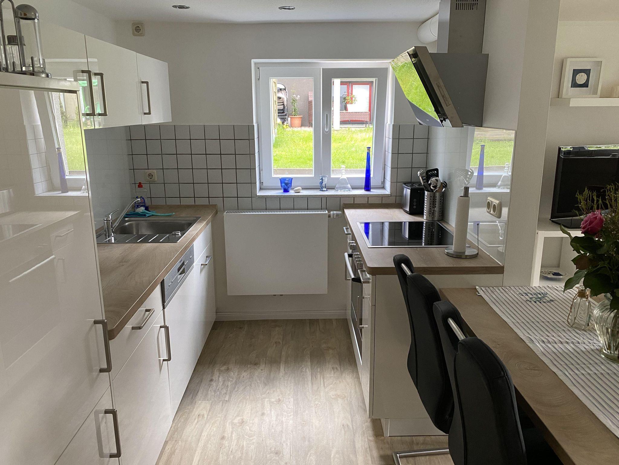Die Einbauküche mit Geschirrspüler ist für sechs Personen komplett ausgestattet.