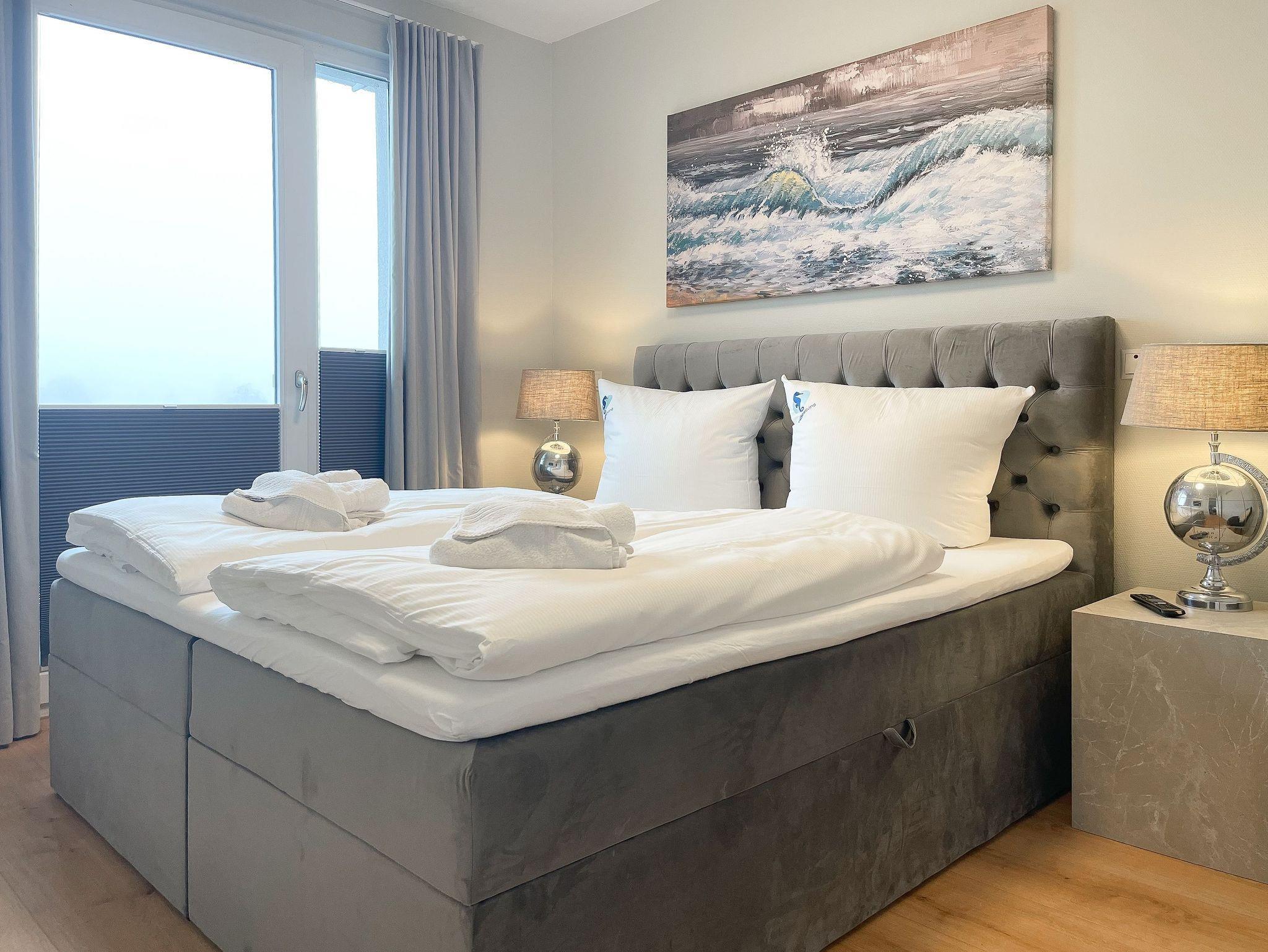 Es erwartet Sie ein hochwertig eingerichtetes und bestens ausgestattetes Penthouse mit bodentief verglasten Fensterflächen, die für lichtdurchflutete Räumlichkeiten sorgen, um in einem schönen Ambiente einen entspannten Ostseeurlaub zu verleben. Highlight ist die riesige Dachterrasse in Südwestausrichtung, die nicht nicht nur mit Gartenmöbeln, sondern auch mit einem Saunakorb ausgestattet ist und vom Frühstück bis zum Sonnenuntergang garantiert zum Lieblingsplatz wird. Der kombinierte Wohn- und Essbereich mit schönem Blick auf die vorgelagerte Dachterrasse ist mit einem hochwertigen Sofa mit Schlaffunktion, TV und Radio sowie einem Essbereich für 3 Personen eingerichtet. Im Wohnbereich erwartet Sie ein hochwertiges Sofa mit Schlaffunktion (160x195), TV und Radio. Die integrierte Einbauküche mit Kochinsel verfügt über alle technischen Geräte und eine gute Ausstattung, um allen gerecht zu werden, die Spaß am gemeinsamen Kochen haben. Das Schlafzimmer ist mit einem hochwertigen Boxspringbett (180x200) und einem zusätzlichen TV eingerichtet. Blackout Plissees sorgen für die vollständige Verdunkelung des Schlafzimmers und somit für einen erholsamen Schlaf. Ein geräumiger Kleider- und Garderobenschrank, mit ausreichend Stauraum, befindet sich im Eingangsbereich. Das Bad mit Fenster verfügt über Dusche, Waschbecken, WC, Föhn und Handtuchtrockner. WLAN steht selbstverständlich kostenlos zur Verfügung.