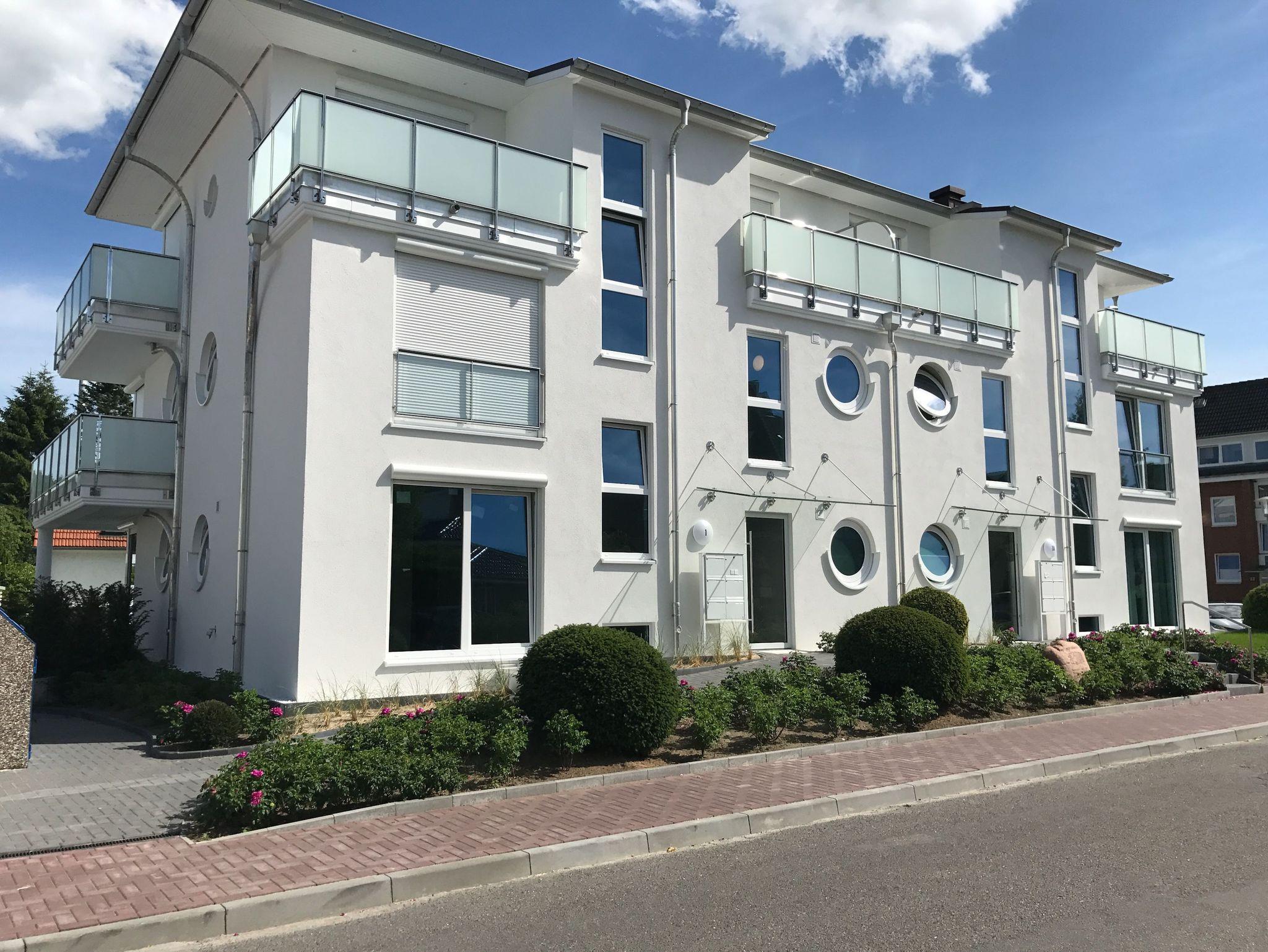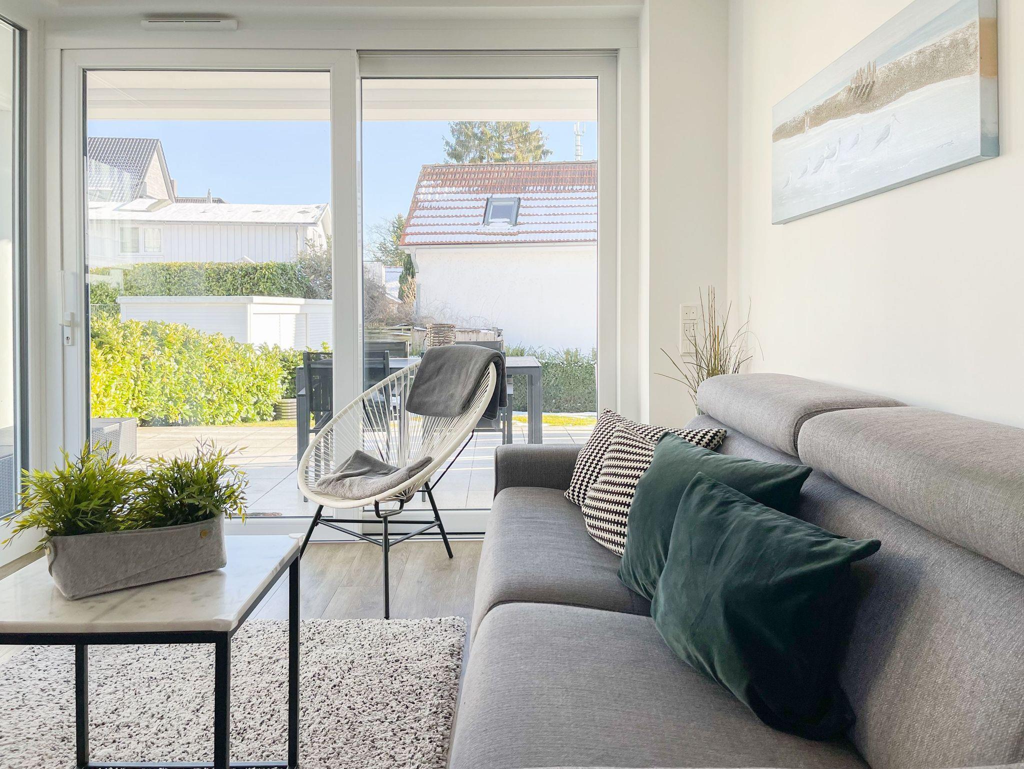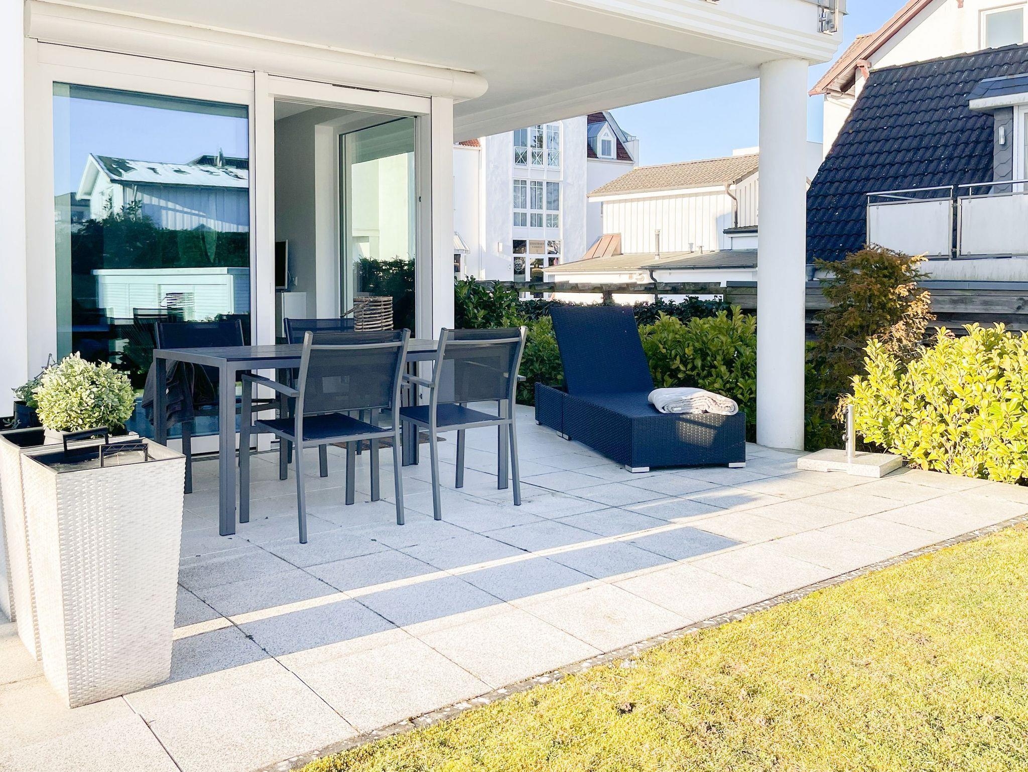 Moderne Erdgeschosswohnung Kompass nahe Ostsee und Zentrum von Timmendorfer Strand mit Terrasse und Tiefgarage.