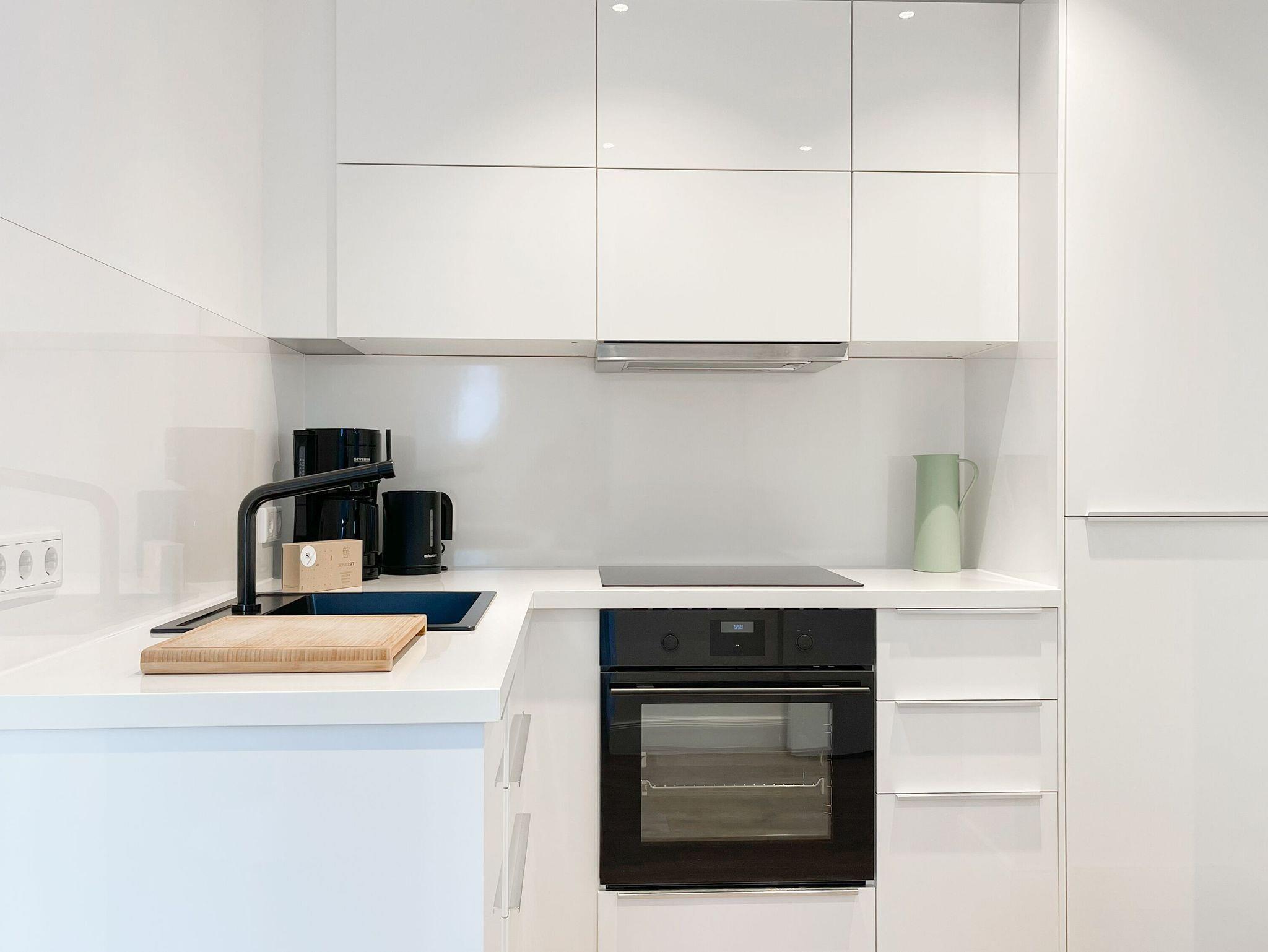 Bodentiefe Fensterelemente in der gesamten Eckwohnung, alle mit elektrischen Außenjalousien versehen, sorgen für lichtdurchflutete Räumlichkeiten. Hochwertige Bodenbeläge, die moderne, bestens ausgestattete Einbauküche und die geschmackvolle Einrichtung schaffen ein zeitgemäßes, schönes Wohnambiente. Die teilweise überdachte Sonnenterrasse ist großzügig um den gesamten Wohnbereich herum angelegt. Ausgestattet mit Gartenmöbeln und Sonnenliege ein idealer Rückzugsort zu jeder Tageszeit. Der Wohnbereich mit Terrassenzugang ist mit einem Schlafsofa (160x200), TV und WLAN ausgestattet, der integrierte Essbereich ist für 4 Personen ausgelegt. Das Schlafzimmer verfügt über ein Boxspringbett (180x200) und TV. Das hochwertige, helle Bad ist großzügig angelegt.