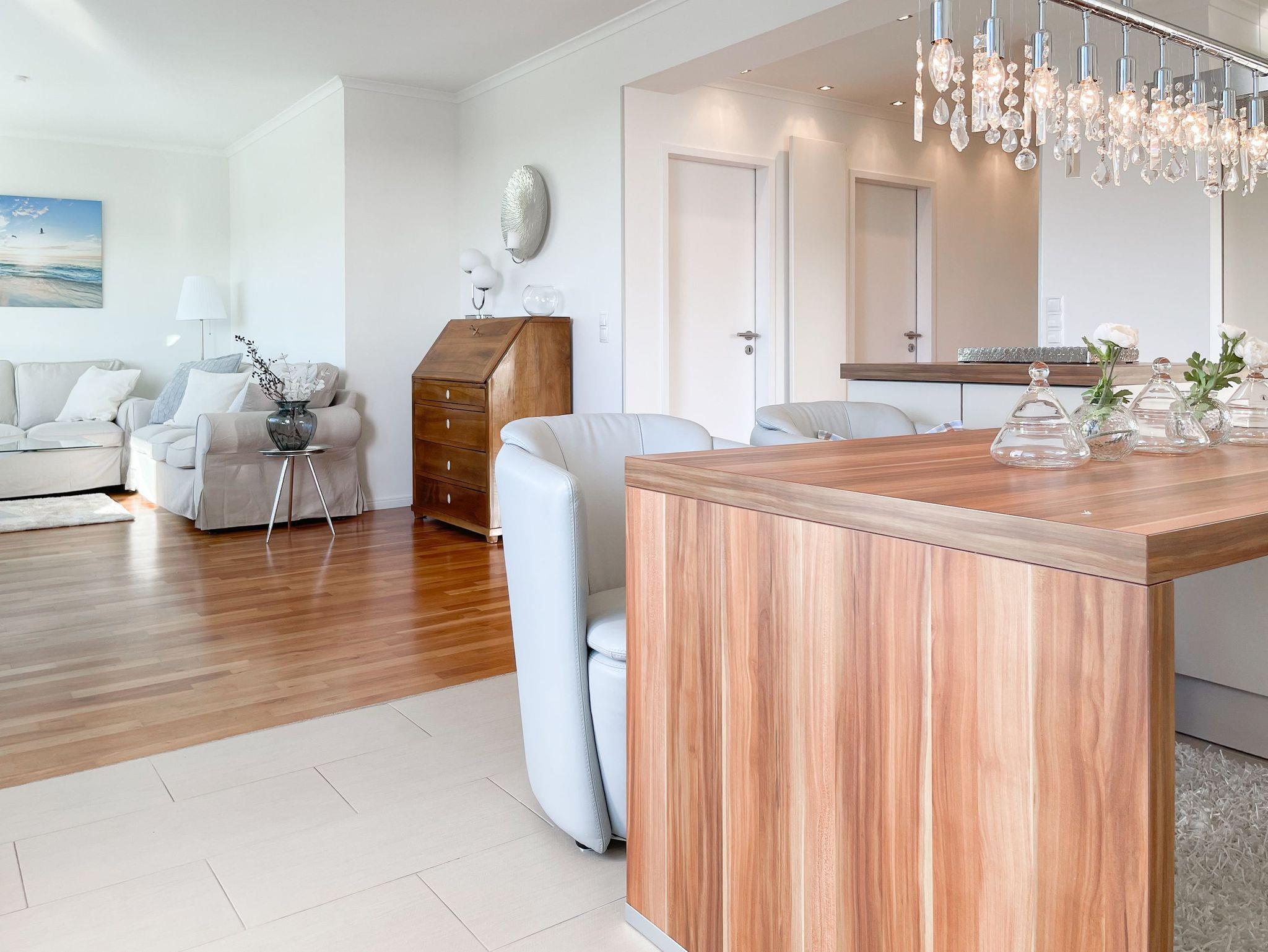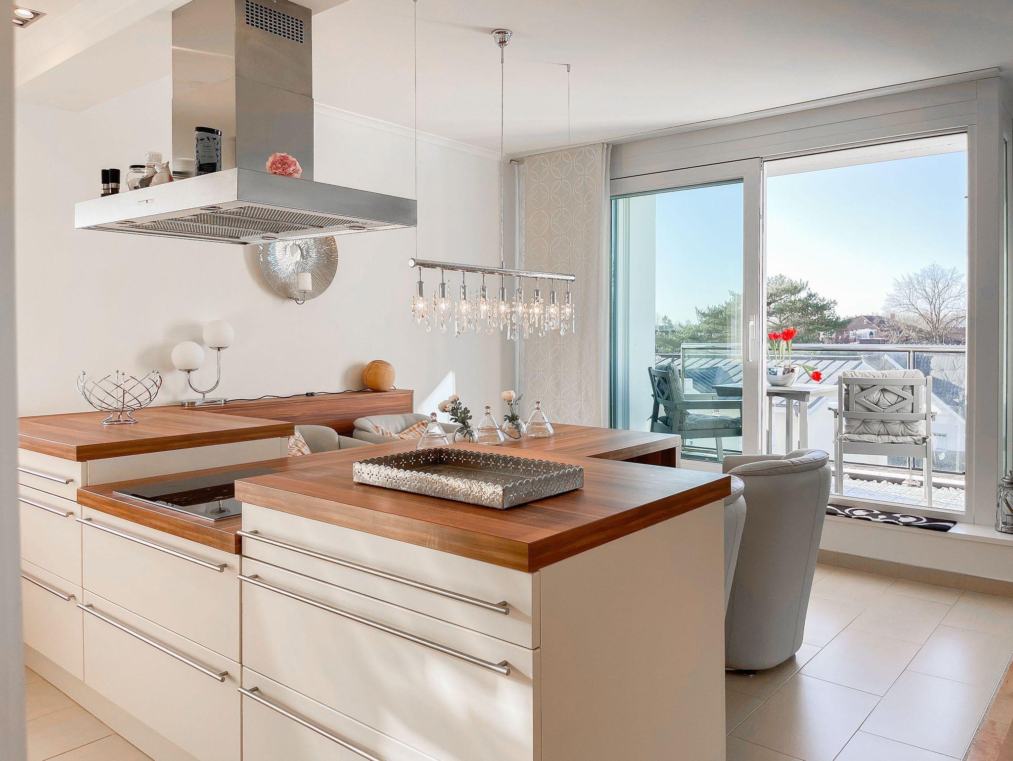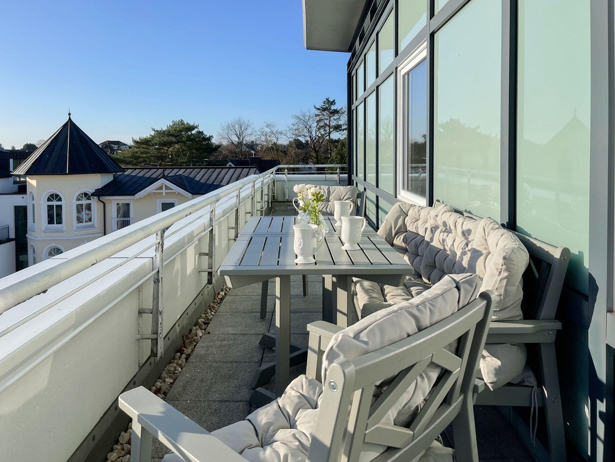 Penthouse Sun in Timmendorfer Strand bietet helle Räume, drei Dachterrassen und Meerblick nahe Strand und Flaniermeile.