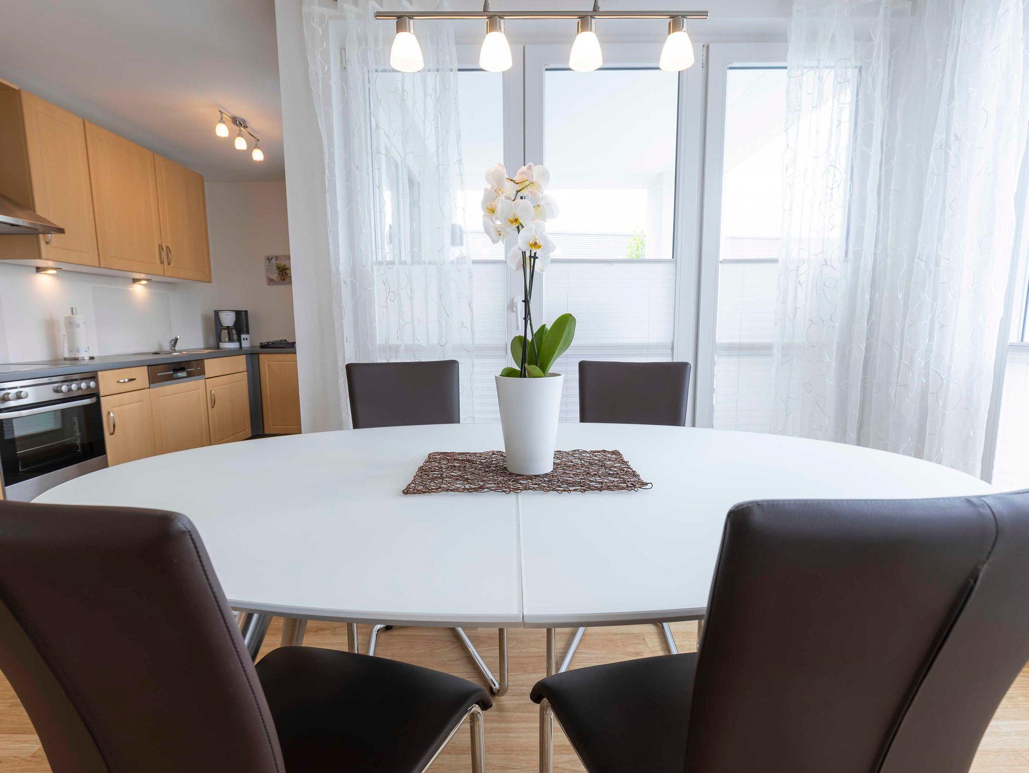 Moderne Ferienwohnung Meermomente 1, 250 m zum Strand, großer Südbalkon, WLAN, Parkplatz inklusive.