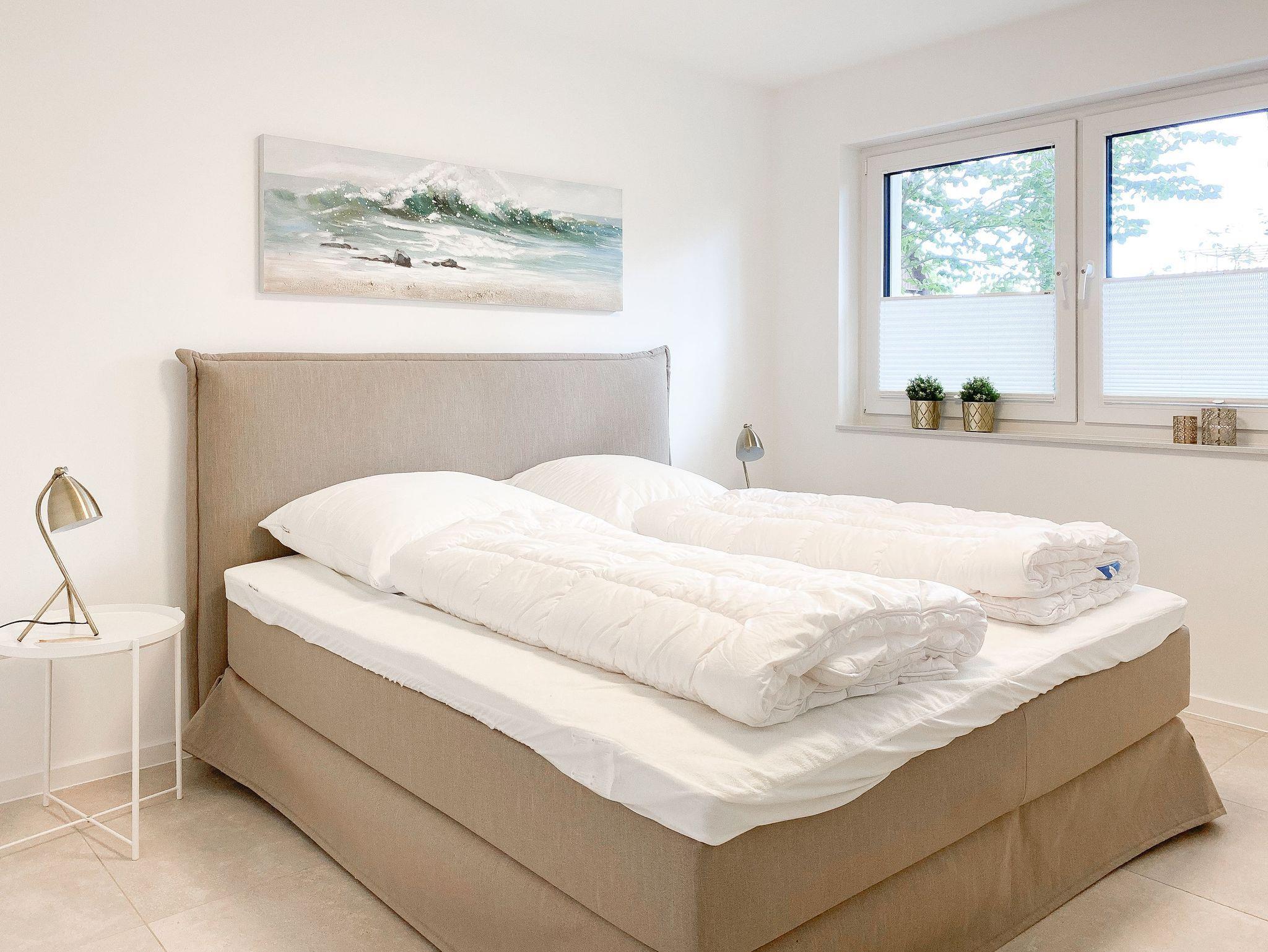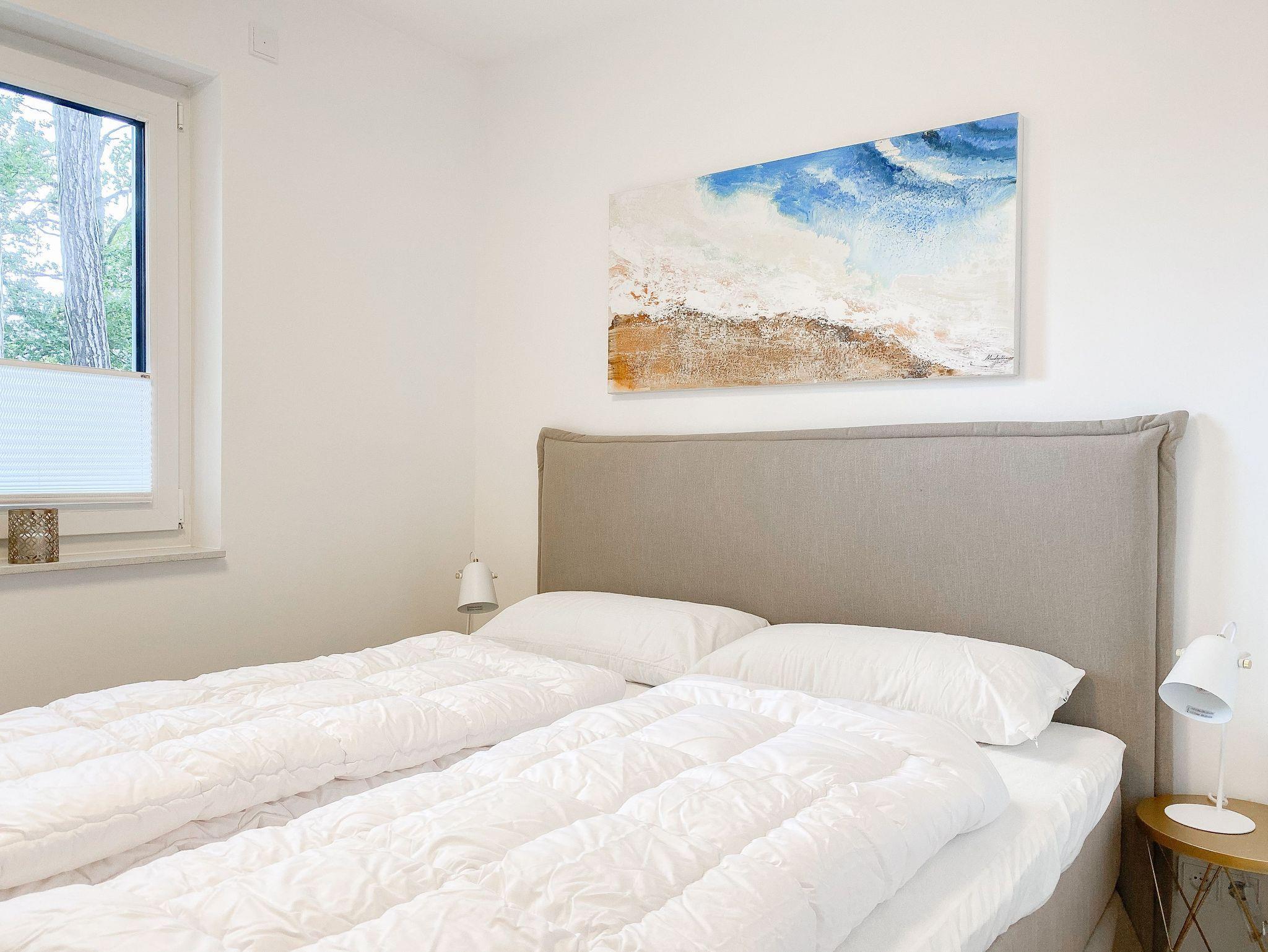Die Ferienwohnung Wohnen am Strand 6 befindet sich im ersten Obergeschoss und bietet mit 2 Schlafzimmern, ausgestattet mit Boxspringbetten (180x200 und 160x200)[nbsp][nbsp]und TV sowie 2 Duschbädern, [nbsp]jeglichen Komfort für 4 Personen, um einen entspannten Urlaub zu verleben. Der hochwertig eingerichtete Wohn- Essbereich bietet einen herrlichen Ausblick bis auf die Ostsee. Entspannen Sie auf Ihrem Balkon mit Teilmeerblick, Brandungsrauschen und frische Ostseeluft inklusive. Es stehen insgesamt 3 TV, Radio und WLAN zur Verfügung. Die Wohnung ist mit Fußbodenheizung ausgestattet und alle Fenster sind mit elektrischen Außenjalousien versehen, die gleichermaßen für Verdunkelung oder Tageslicht mit Privatsphäre sorgen. Zur Wohnung gehört ein fester Tiefgaragenstellplatz (Einfahrtshöhe 1,90 m). Das Haus verfügt über einen Fahrstuhl und einen Fahrradkeller. Waschmaschine und Trockner stehen kostenlos zur gemeinschaftlichen Nutzung[nbsp] zur Verfügung.