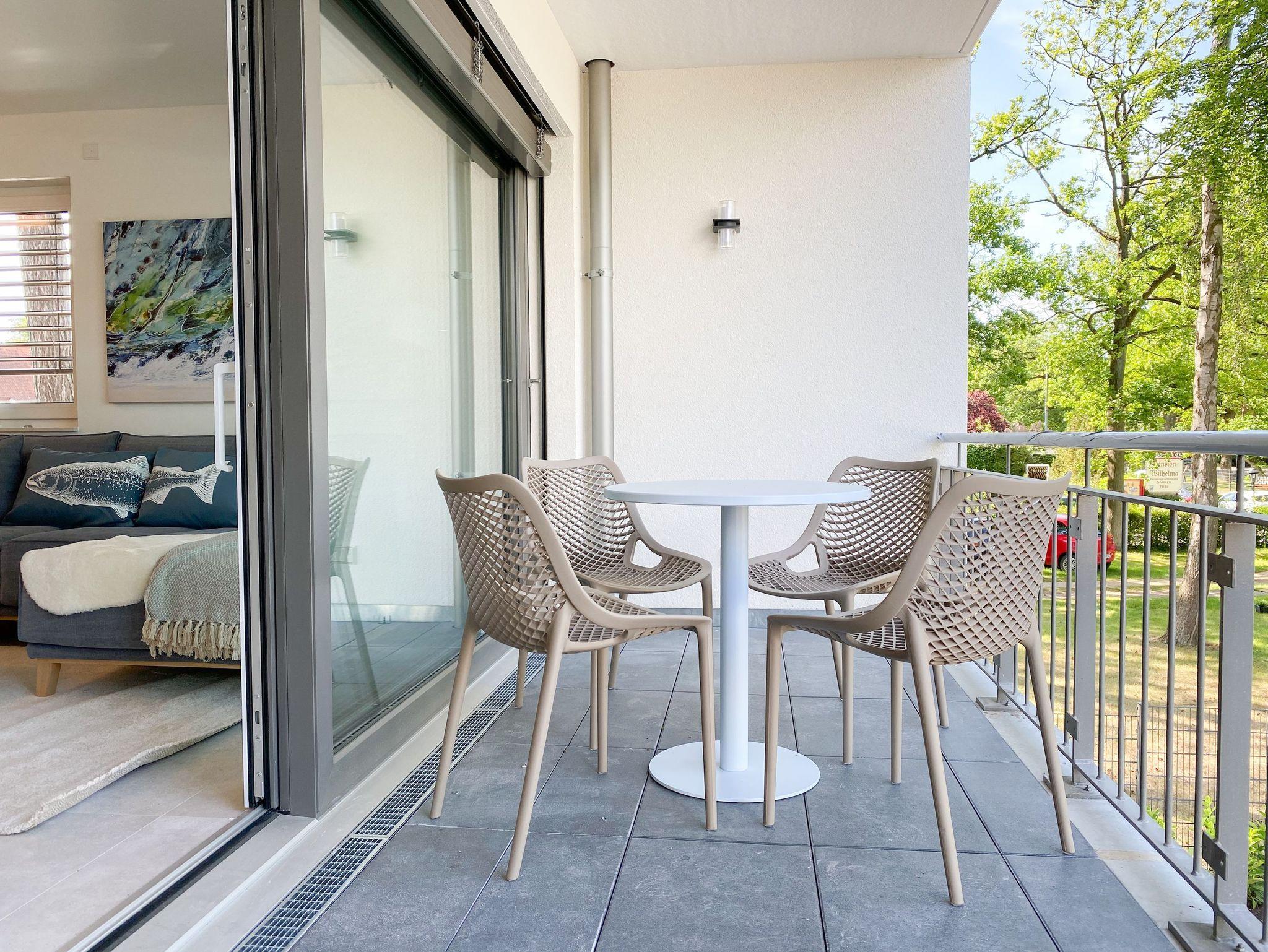 Zehn exklusive Wohnungen mit Balkonen und Terrassen zur Meerseite bieten traumhafte Ausblicke bis auf die Ostsee und jeglichen Komfort zur Gewährleistung eines hohen Wohnstandards in schönem Ambiente. Alle Wohnungen verfügen über moderne Bäder mit Walk In Duschen, Fußbodenheizung und elektrische Außenjalousien mit einstellbaren Lamellen, die gleichermaßen für Tageslicht und Privatsphäre sorgen.