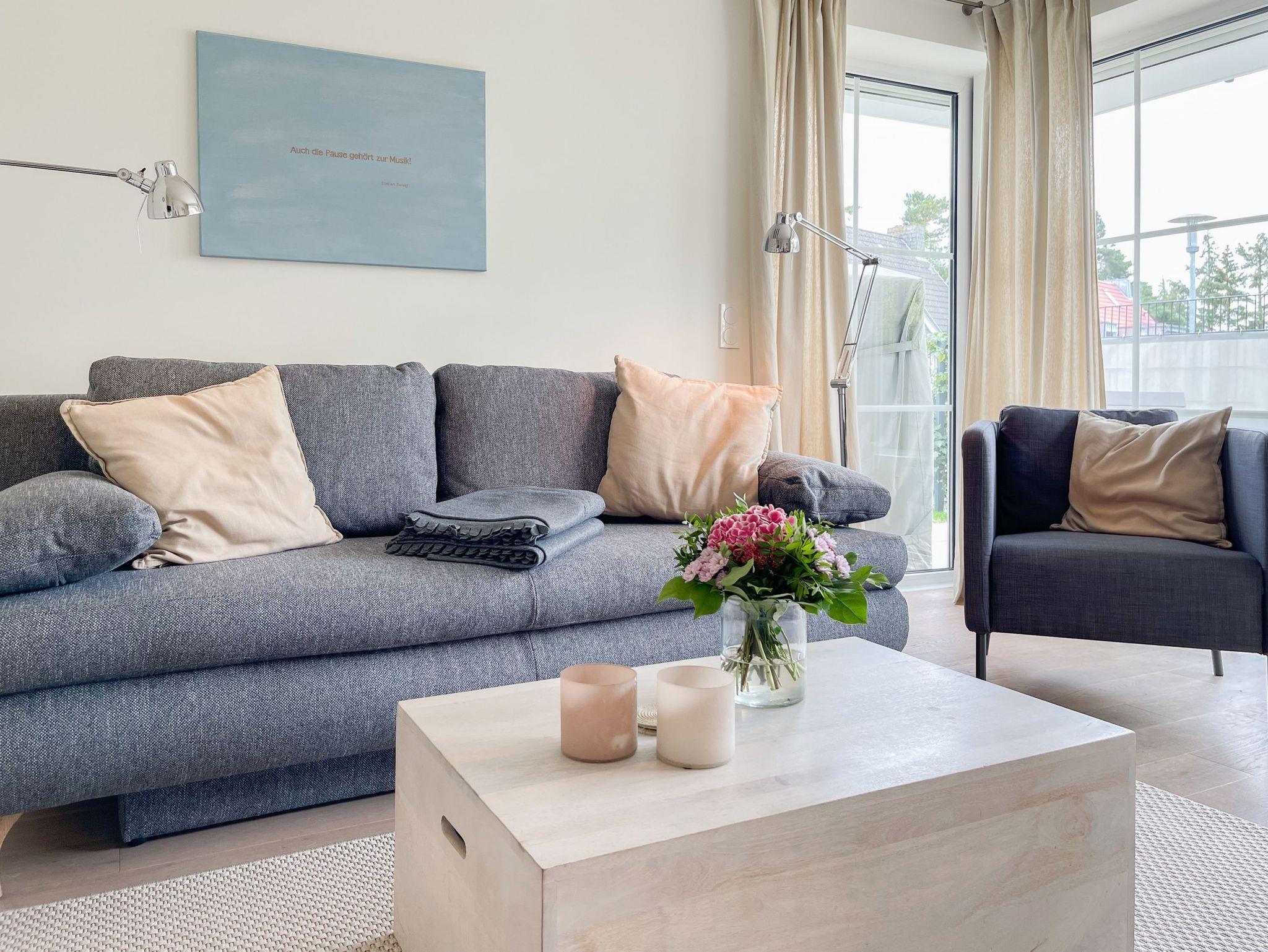 Die Ferienwohnung Strandgras in Timmendorfer Strand bietet eine moderne Ausstattung und eine südwestliche Terrasse mit eingezäuntem Garten nahe dem Strand.