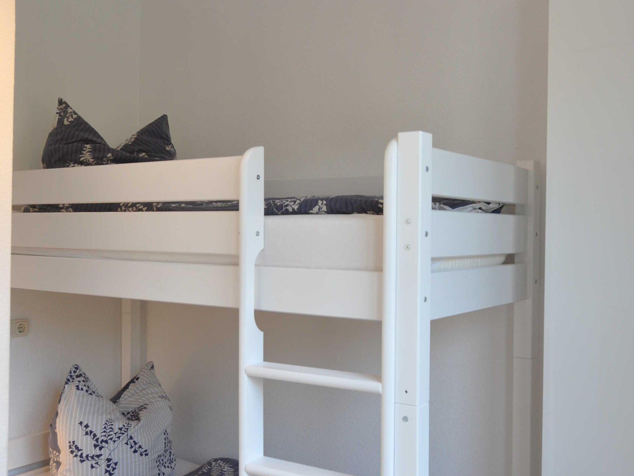 Das 58 qm große Appartement Strandsegler verfügt über ein Schlafzimmer mit einem 160 x 200 cm großen Boxspringbett, einem Schlafzimmer mit Etagenbett und einer voll ausgestatteten Küche, einem gemütlichen Wohnzimmer mit Schlafcouch und zwei Duschbadezimmern.