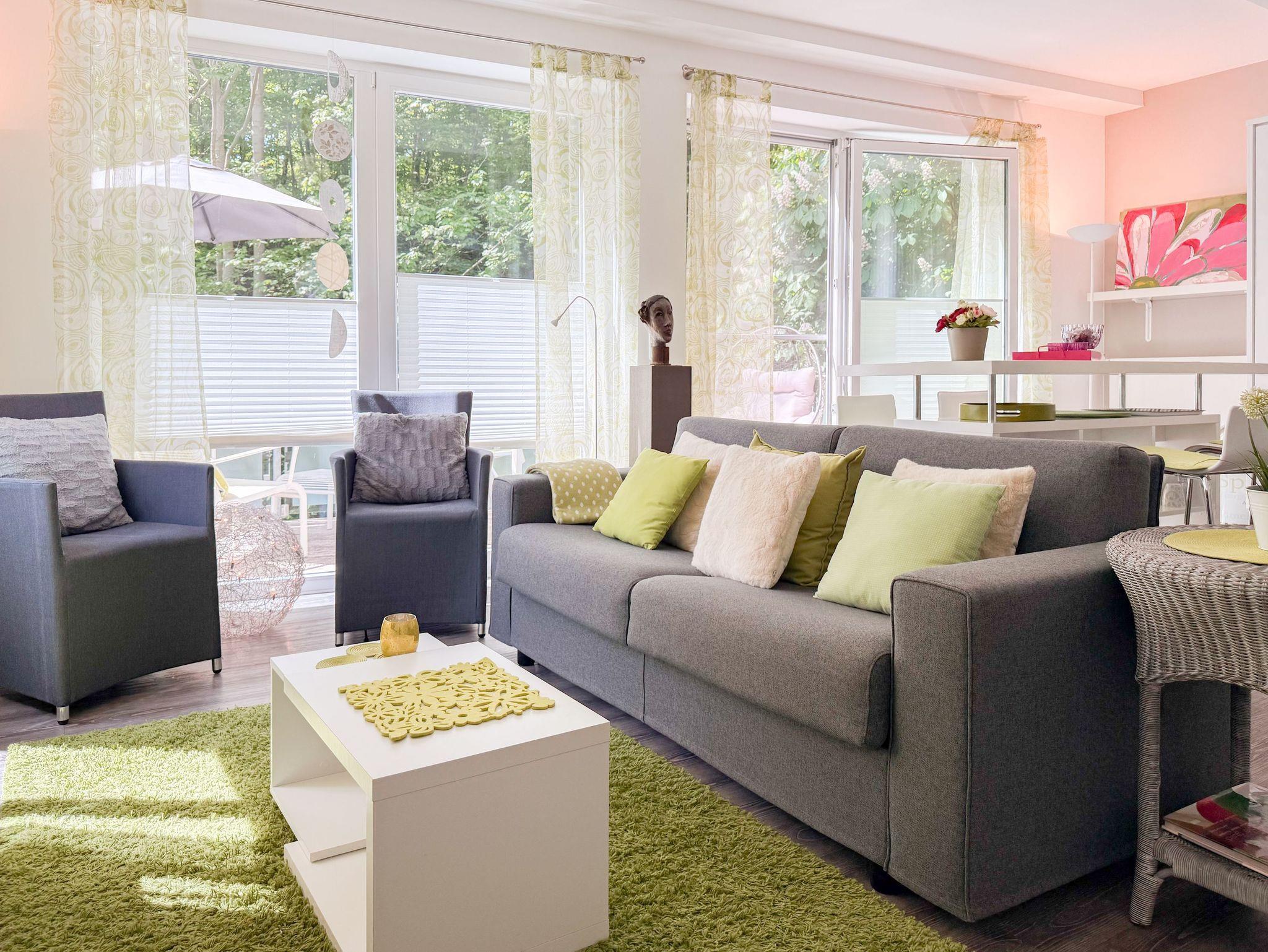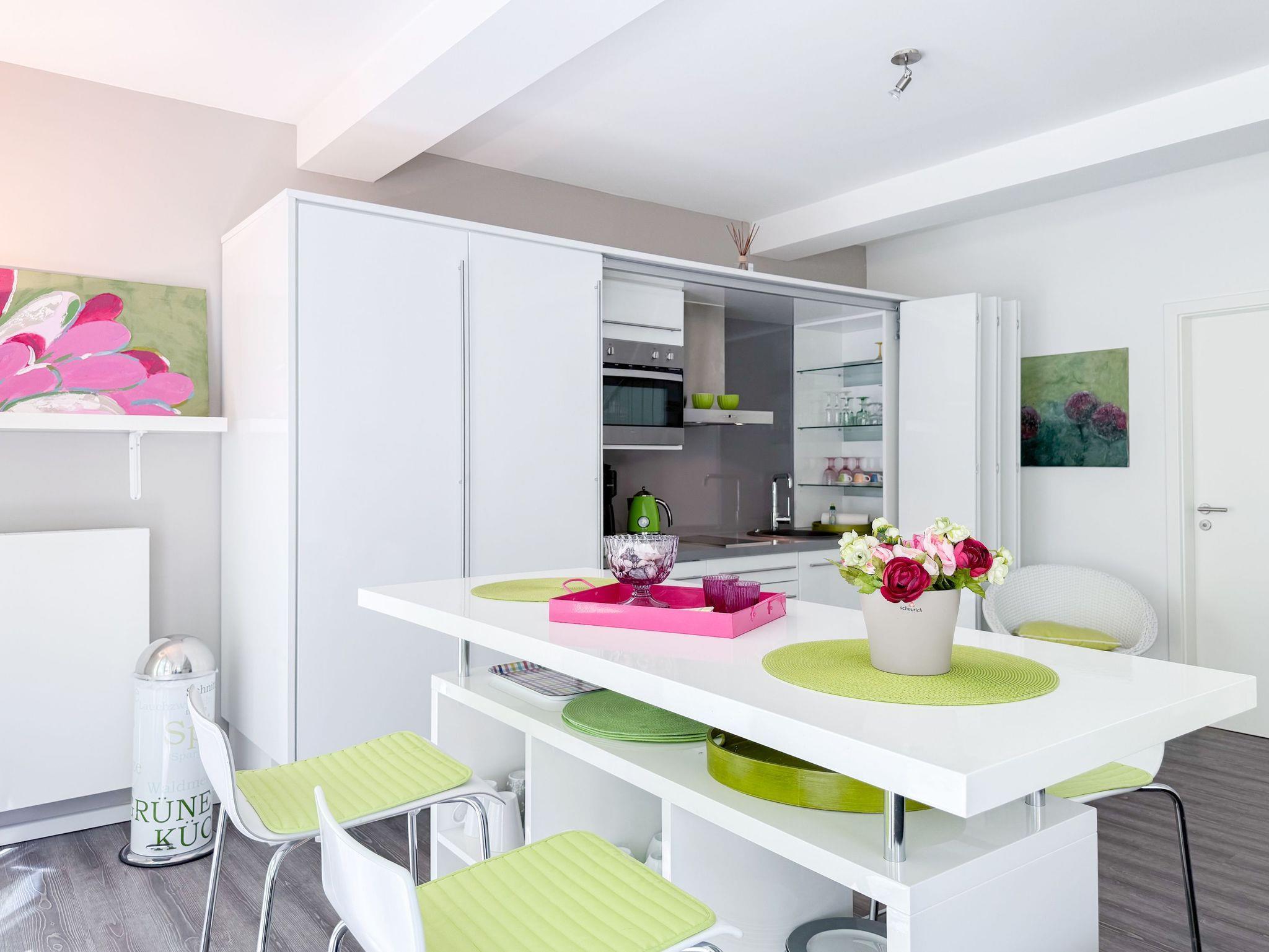 Diese Wohnung erstreckt sich über zwei Ebenen. Im unteren Bereich finden Sie einen gemütlichen Wohnbereich mit einem hochwertigen Schlafsofa, einen Essbereich sowie eine gut ausgestattete Küche. Durch eine praktische Schiebetür lässt sich der Bereich bei Bedarf verstecken. Der großzügige Balkon bietet absolute Privatsphäre und besticht durch einen herrlichen Blick ins Grüne ? perfekt für entspannte Stunden im Freien. Eine Garderobe und ein separates Gäste WC sind ebenfalls auf der unteren Wohnebene unterbracht. Das Dachgeschoss ist über eine Wendeltreppe zu erreichen. Dort gibt es eine kleine Galerie mit einem Schreibtisch ? perfekt für Workation oder kreative Pausen. Das großzügige Schlafzimmer ist mit einer Klimaanlage, einem zusätzlichen TV und Verdunkelungsvorhängen ausgestattet. Das exklusive Duschbad mit Tageslichtfenster sorgt für ein angenehmes und helles Ambiente.