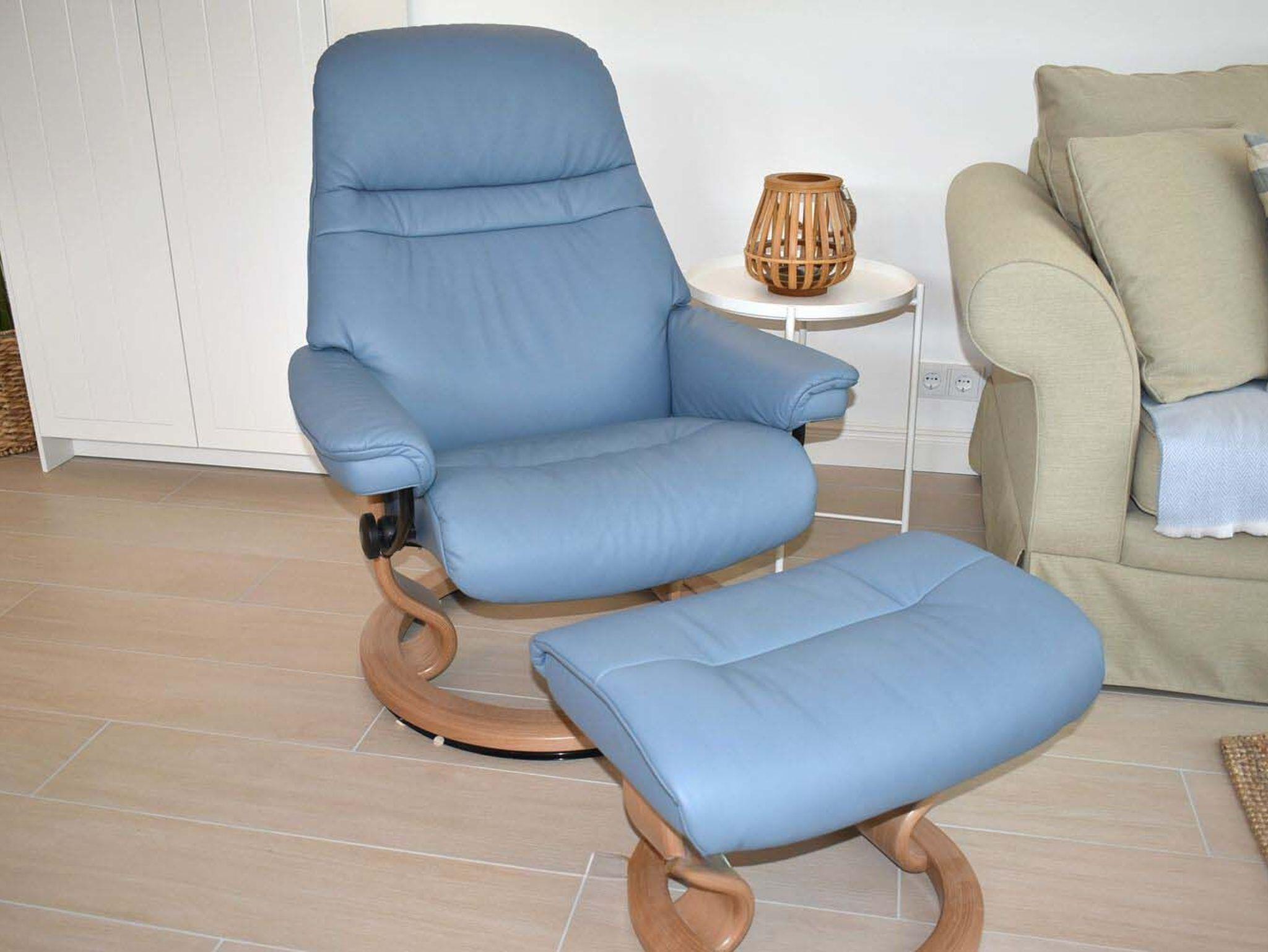 Wohnzimmer: 4 Plattenherd mit Backofen und Ceranfeld, 4 Stühle, Alexa, Beistelltisch, Couch, Couchtisch, Dunstabzugshaube, Einbauküche, Esstisch, Flachbildschirm, Geschirr, Handmixer, Kaffeemaschine, Kochtöpfe, Kühlschrank mit 3* Gefrierfach, Saftpresse, Sat-TV, Schrank, Sessel, Spülmaschine, Stehlampe, Stressless Sessel, Toaster, Wasserkocher