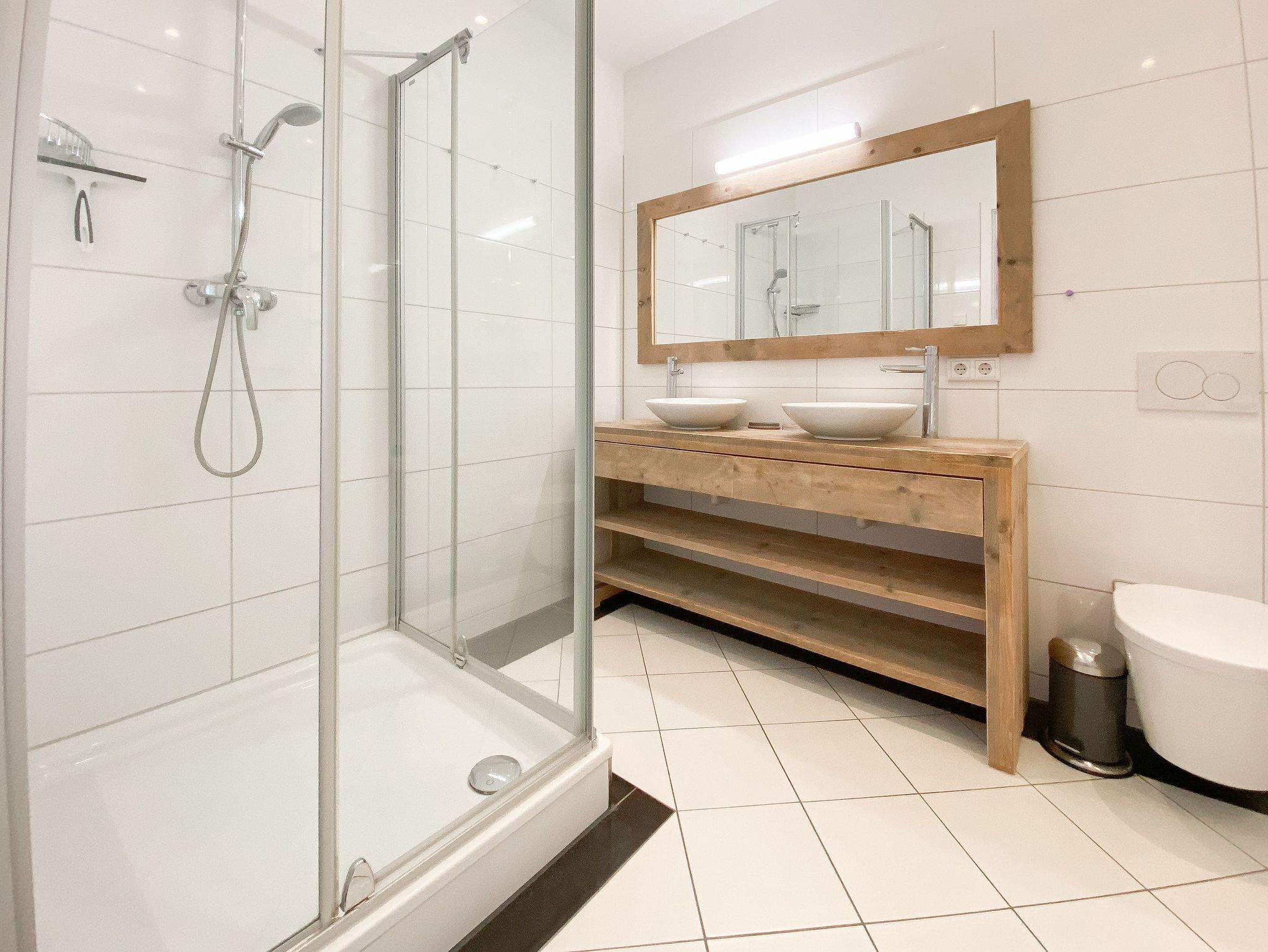 Die Ferienwohnung Beach Pearl #1 befindet sich in der ersten Etage und bietet auf fast 90 qm viel Raum für 2 Personen, um einen entspannten Urlaub zu verleben. Große, bodentiefe Fensterflächen sorgen für reichlich Tageslicht und herrliche Ausblicke. Besonders hervorzuheben ist der riesige, umlaufende Balkon in Südostausrichtung, der teilweise überdacht und bestens möbliert ist. Im großzügigen Wohnraum erwartet Sie ein gemütliches XXL Ecksofa, TV, WLAN und ein Essbereich, der ausreichend Platz für 6 Personen bietet. Die integrierte Wohnküche verfügt über eine Spülmaschine, Backofen, Ceranfeld und einen großen Kühlschrank. Das separate Schlafzimmer ist mit einem Doppelbett (180x200), einem Kleiderschrank mit reichlich Stauraum für Ihre Urlaubsgarderobe, TV und Verdunkelungsvorhängen ausgestattet. Das Bad ensuite verfügt über einen Doppelwaschtisch, Radio, Dusche und eine integrierte Waschmaschine. Ein separates Gäste WC ist ebenfalls vorhanden. Zur Ferienwohnung gehört eine fester Tiefgaragen Stellplatz und das Haus verfügt selbstverständlich über einen Aufzug. Fahrradunterstellmöglichkeit vorhanden.
