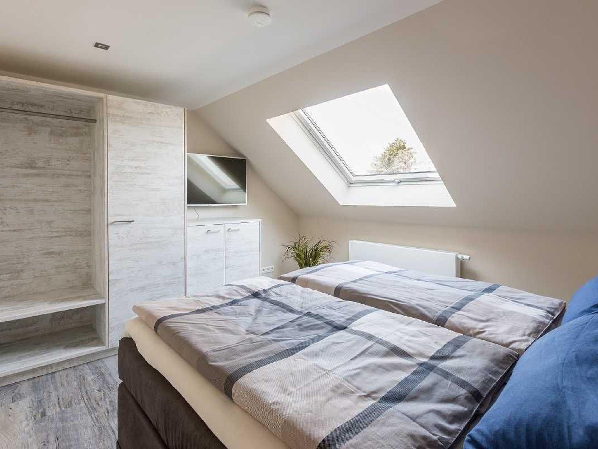 Unsere Experten-Suite Große Düne im Dachgeschoss mit Balkon bietet Platz für die komplette Familie – oder die Clique. Drei Schlafzimmer, 1 Wohnzimmer, Küche und Bad – perfekt.