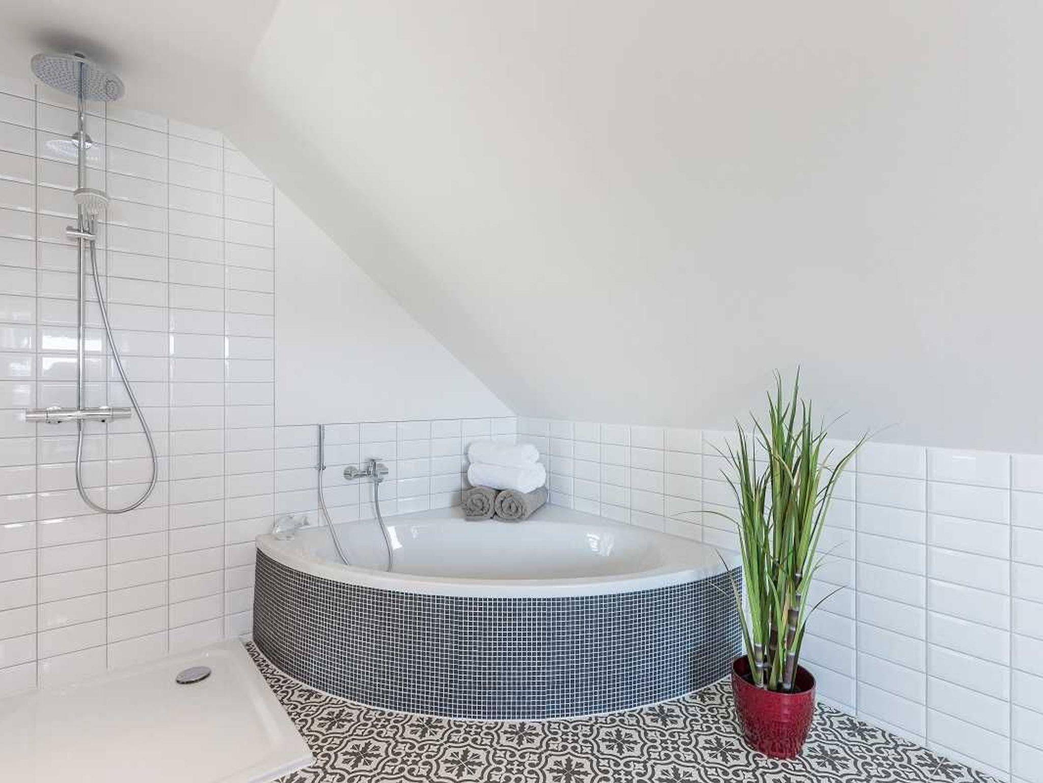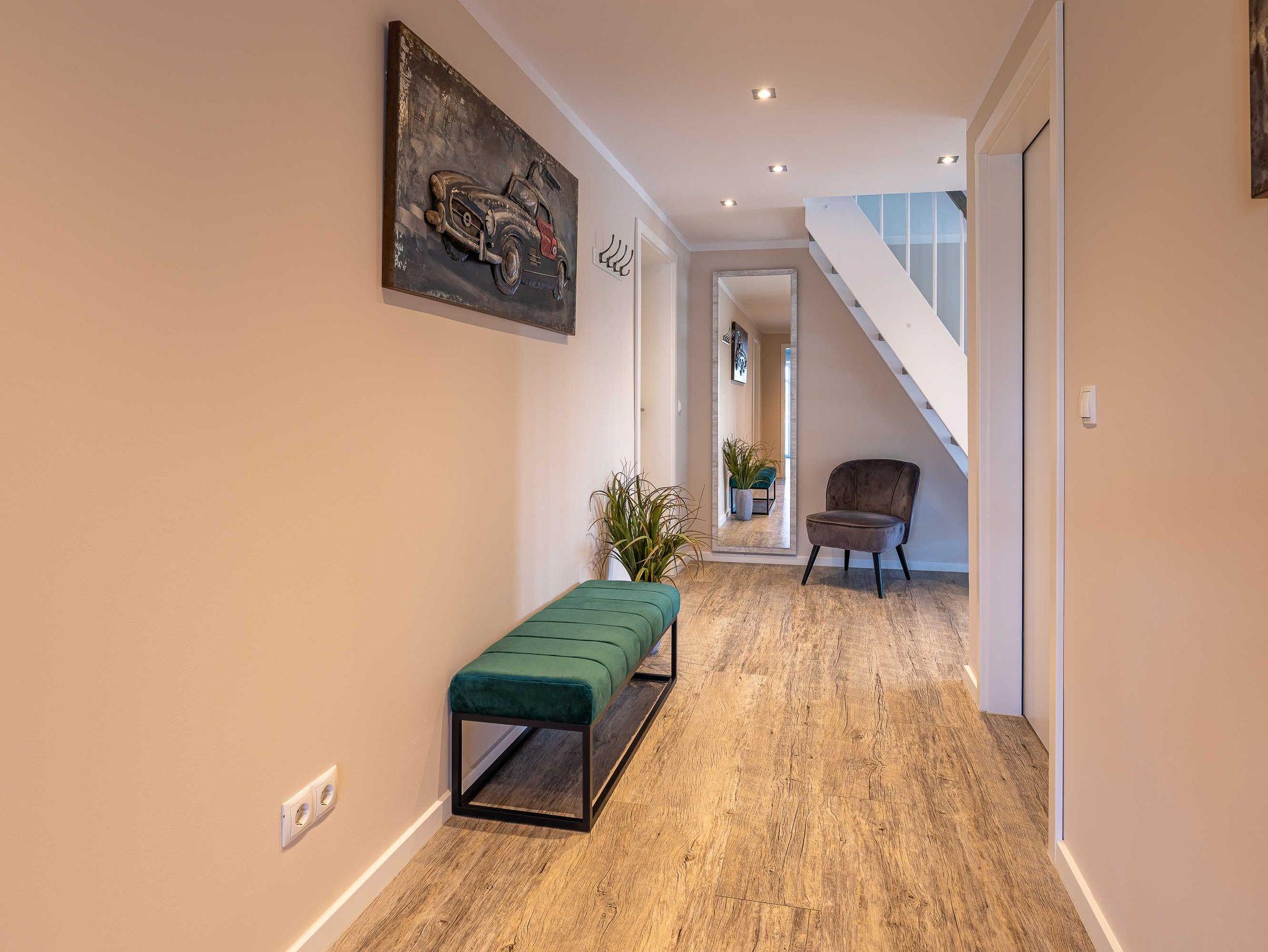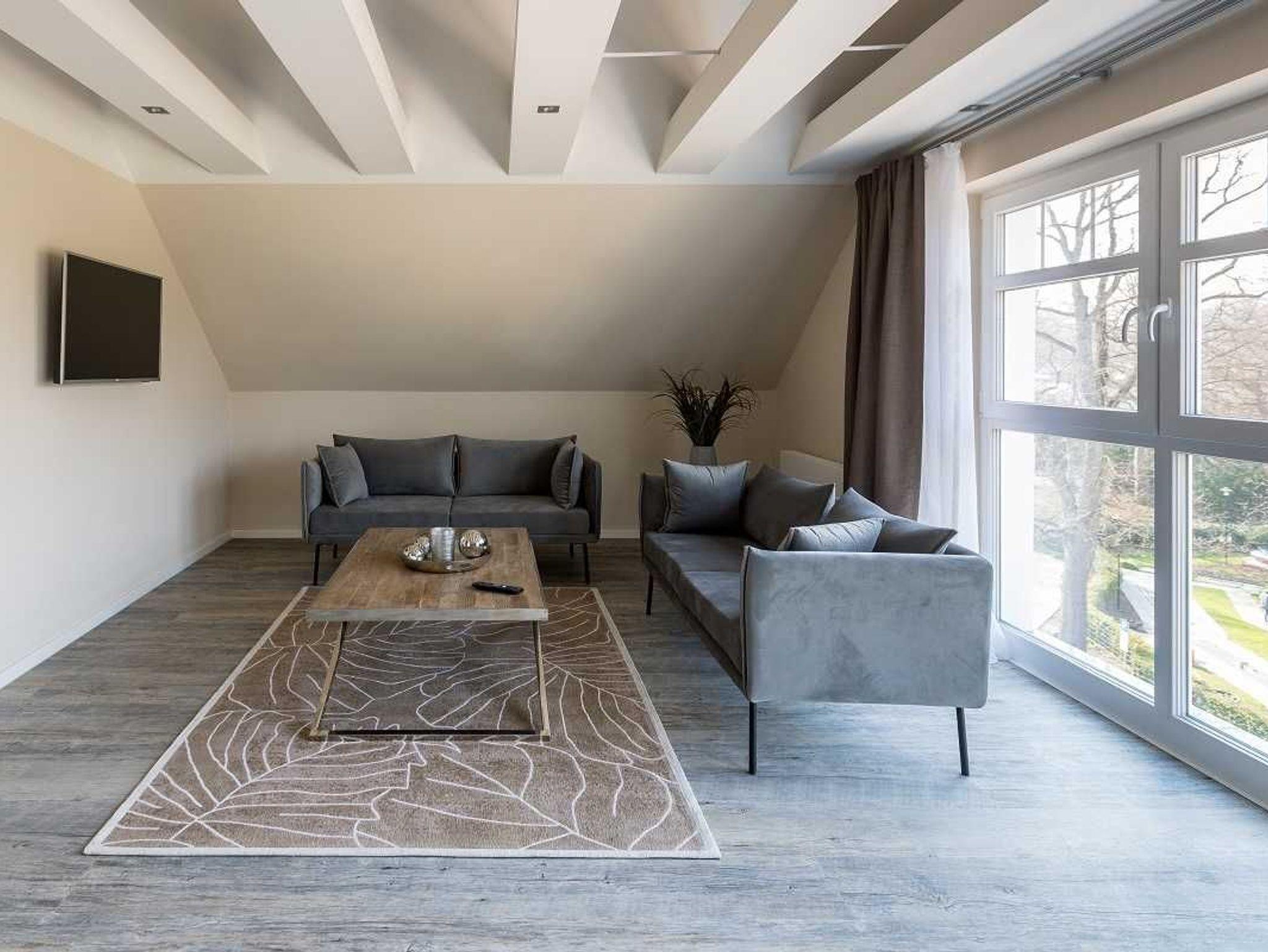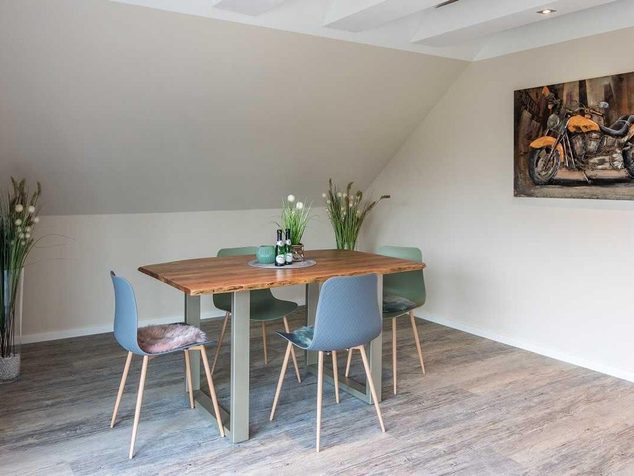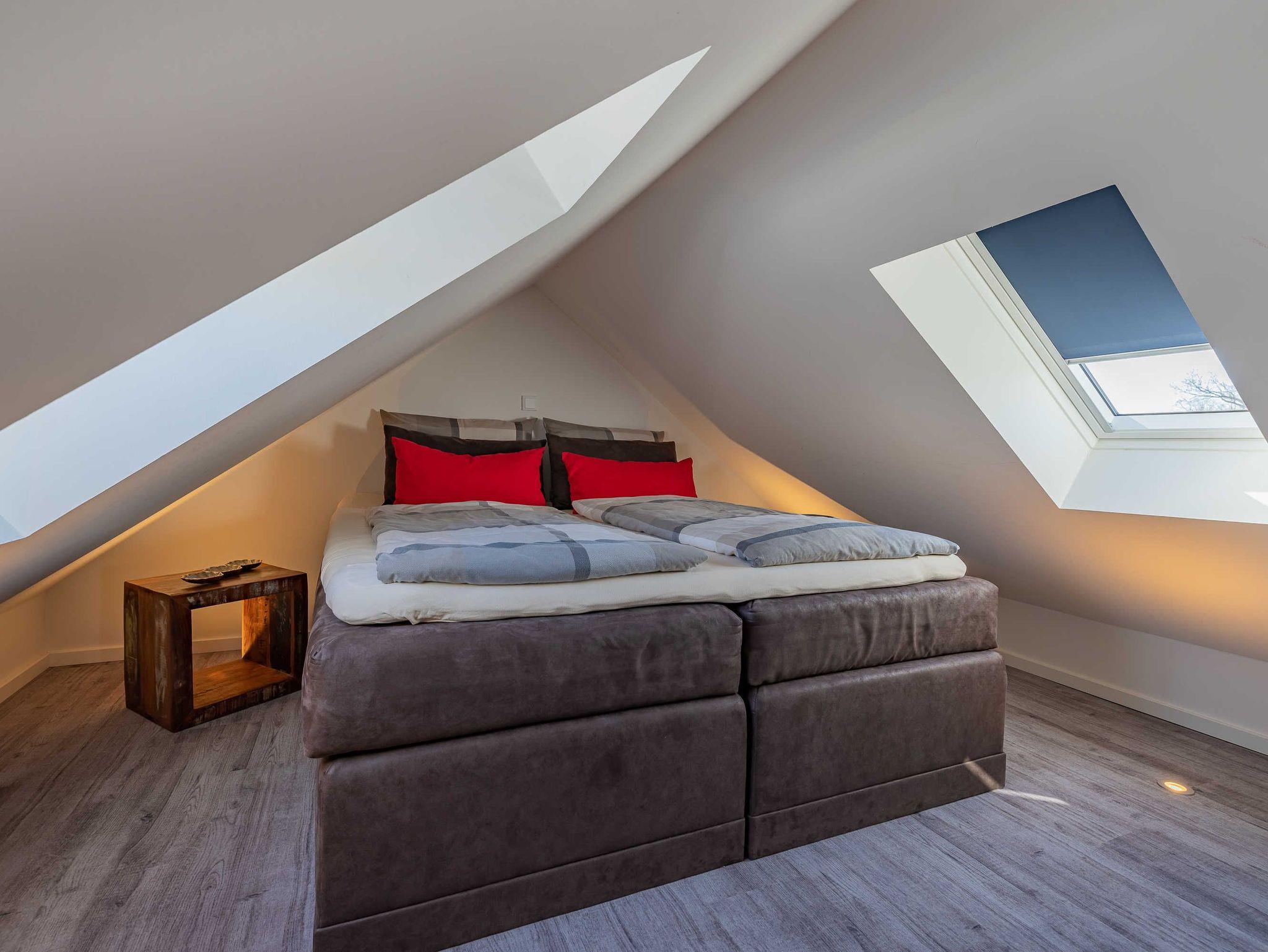 Sie schlafen in traumhaften Boxspringbetten – und für den entspannten Luxus tagsüber stehen zwei stilvolle Sofas und ein gemütlicher Esstisch zur Verfügung. Kinder dürfen sich im Spitzboden austoben oder vielleicht eine Runde Playstation spielen.