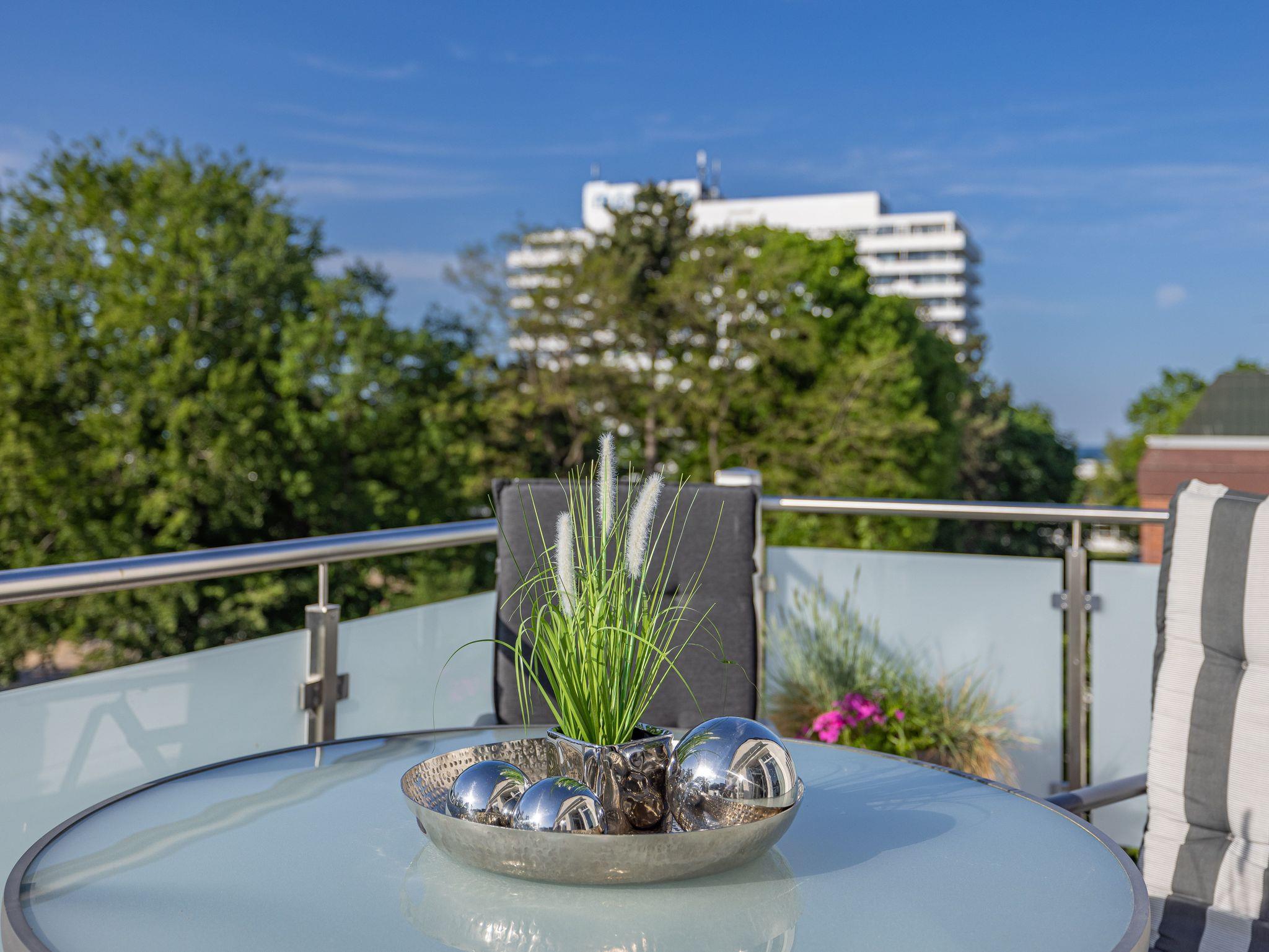 Modernes Ferienapartment mit Balkon und Meerblick in Timmendorfer Strand, nur 150 m vom Sandstrand entfernt.