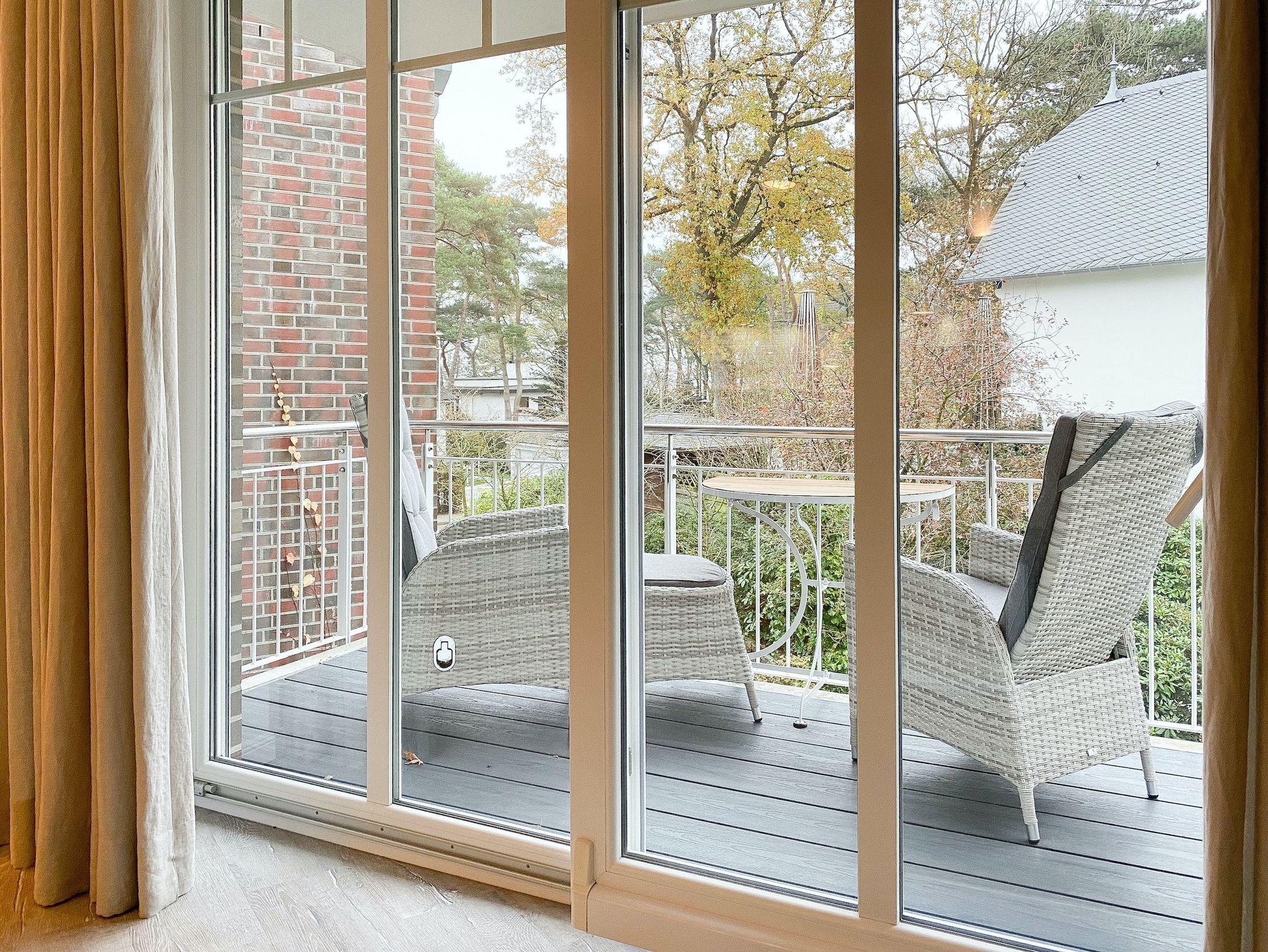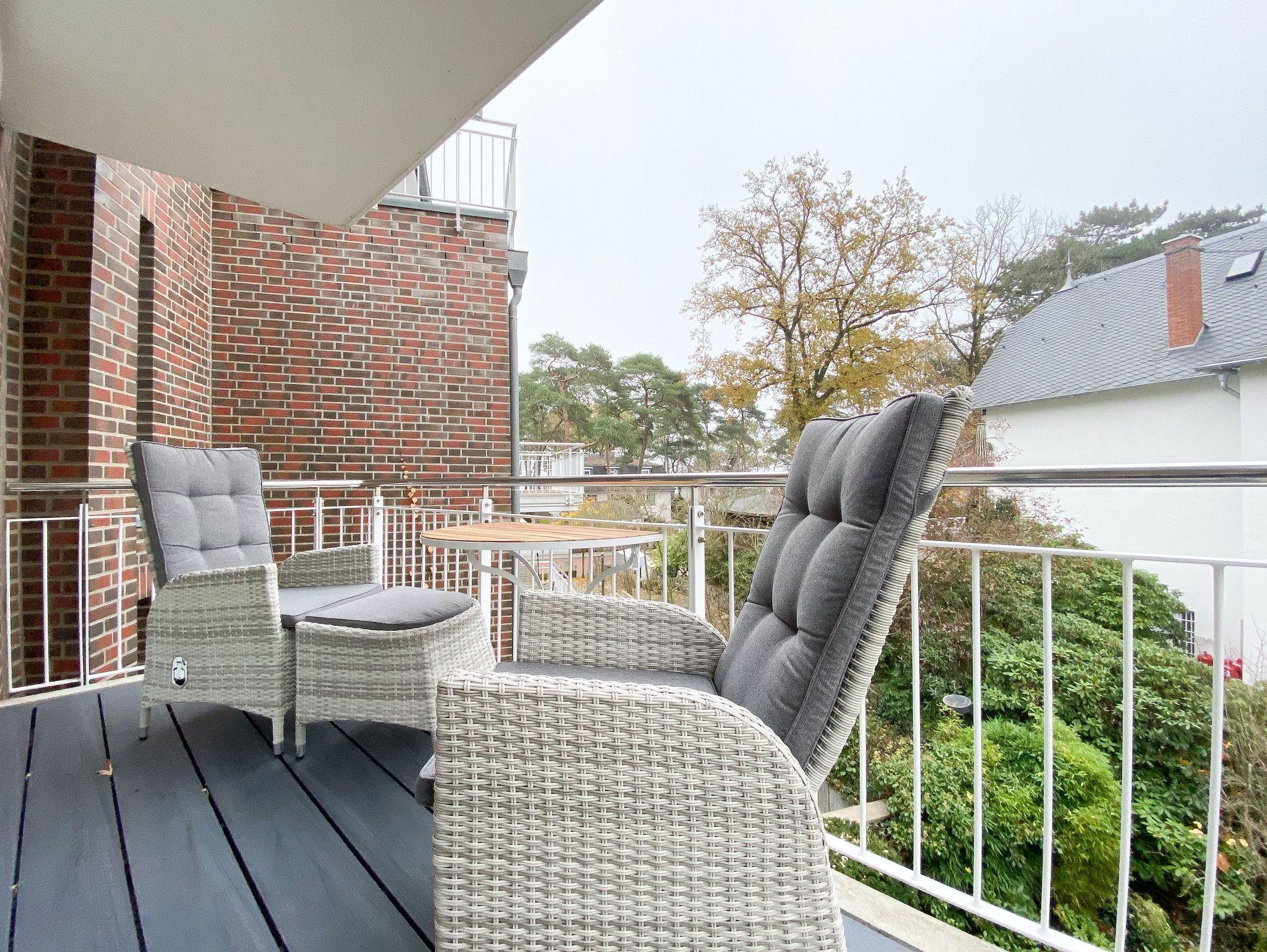 Die Ferienwohnung im 2. Obergeschoss ist hervorragend für[nbsp] 2 Personen geeignet und besticht durch ihr durchdachtes Raumkonzept. Es erwartet Sie ein gemütlicher Wohnbereich mit einem hochwertigen Sofa mit Schlaffunktion (140x190), ein anschließender Essbereich für 2 Personen und eine offene Designküche in bester Ausstattung. Eine liebevoll ausgesuchte Inneneinrichtung und die perfekt darauf abgestimmten Dekorationselemente im Beachstyle laden zum Wohlfühlen in Strandnähe ein. Der teilweise überdachte Sonnenbalkon, ausgestattet mit hochwertigen Gartensesseln mit verstellbarem Rückenteil und Fußhocker, bietet einen schönen Teilseeblick, Meeresrauschen inklusive. Im Schlafzimmer befindet sich ein hochwertiges Boxspringbett, das Ihnen mit einer Größe von 180 x 200 einen hohen Schlafkomfort verspricht und die Fenster sind mit elektrischen Außenjalousien versehen. Der offene Einbauschrank ist großzügig bemessen und bietet ausreichend Stauraum für Ihre Urlaubsgarderobe. Das moderne Duschbad empfängt Sie in einem fröhlichbunten Innendesign und der Handtuchwärmer sorgt für zusätzlichen Komfort. Sowohl ein großer Flatscreen-TV im Wohnzimmer als auch die kostenlose Nutzung des WLAN gehören zum Entertainment-Paket. Ein Aufzug ist selbstverständlich vorhanden.