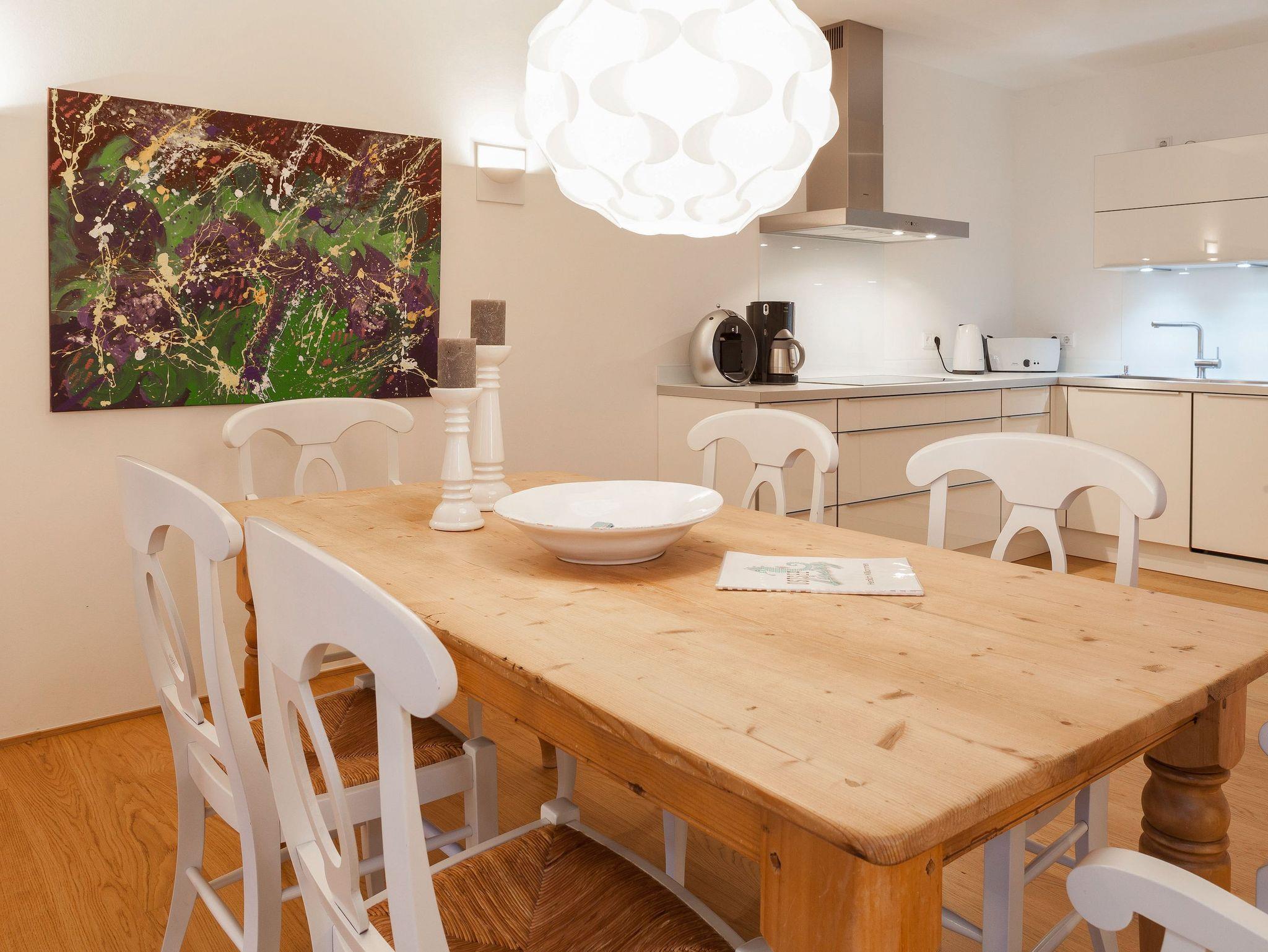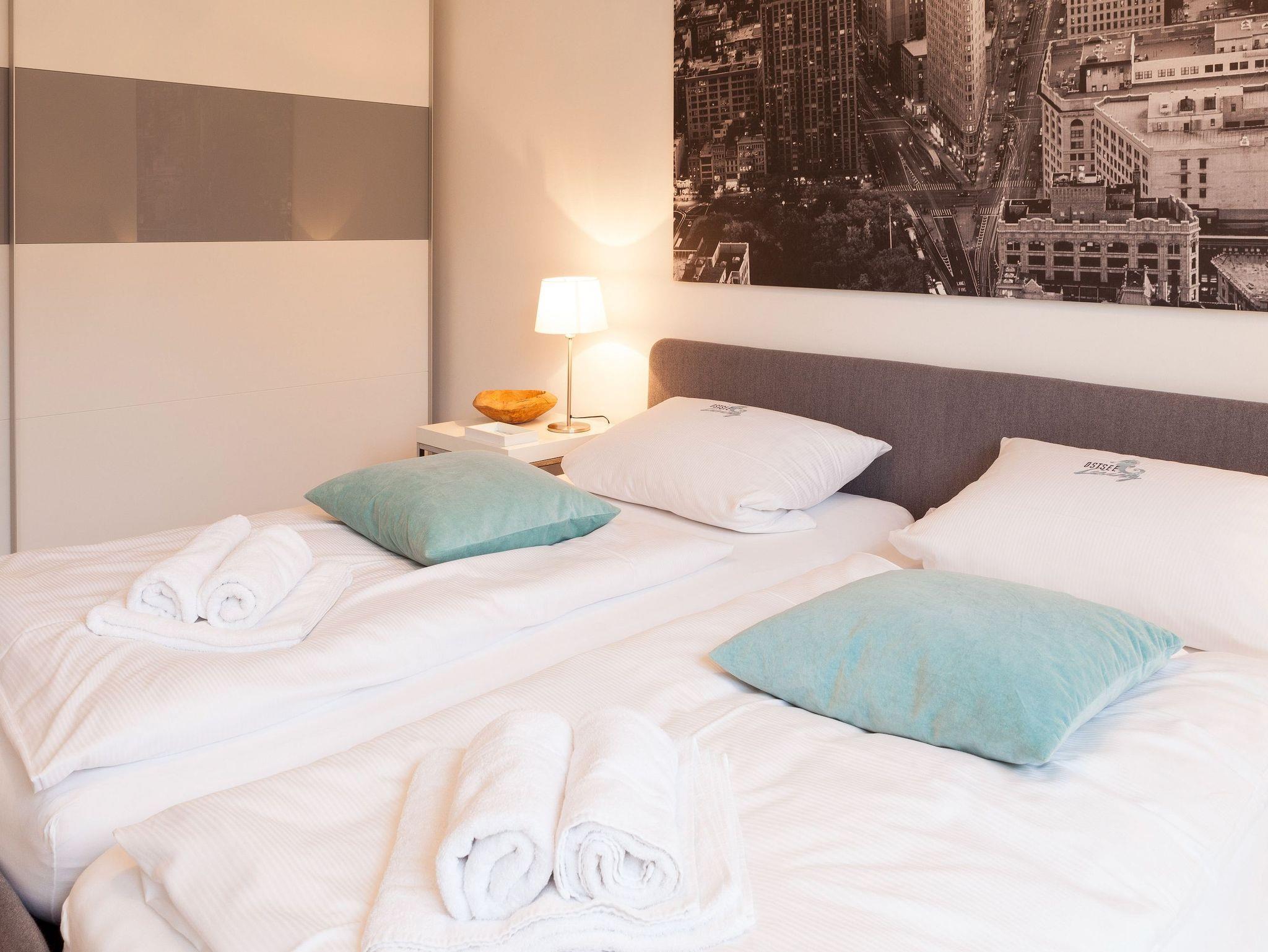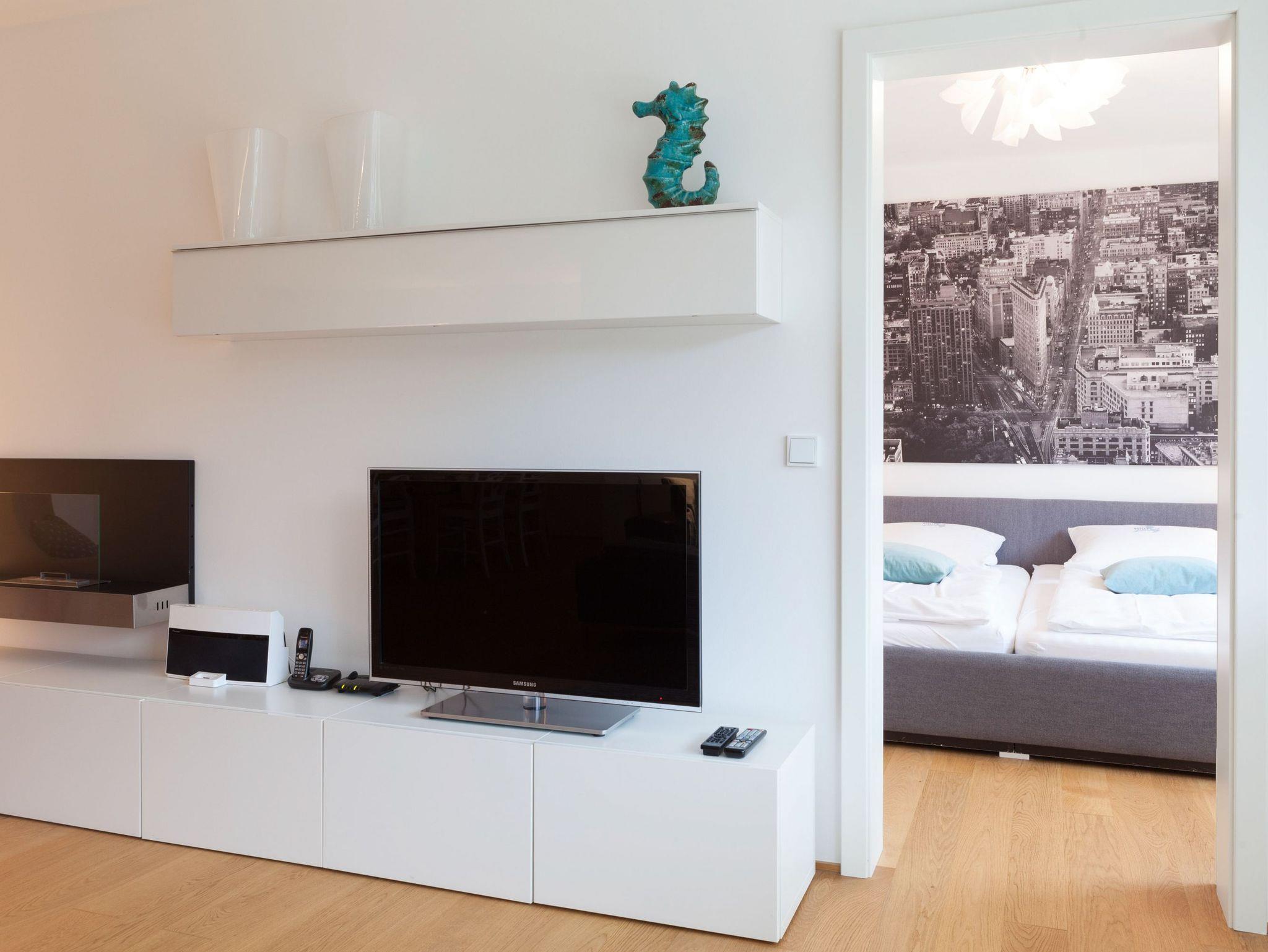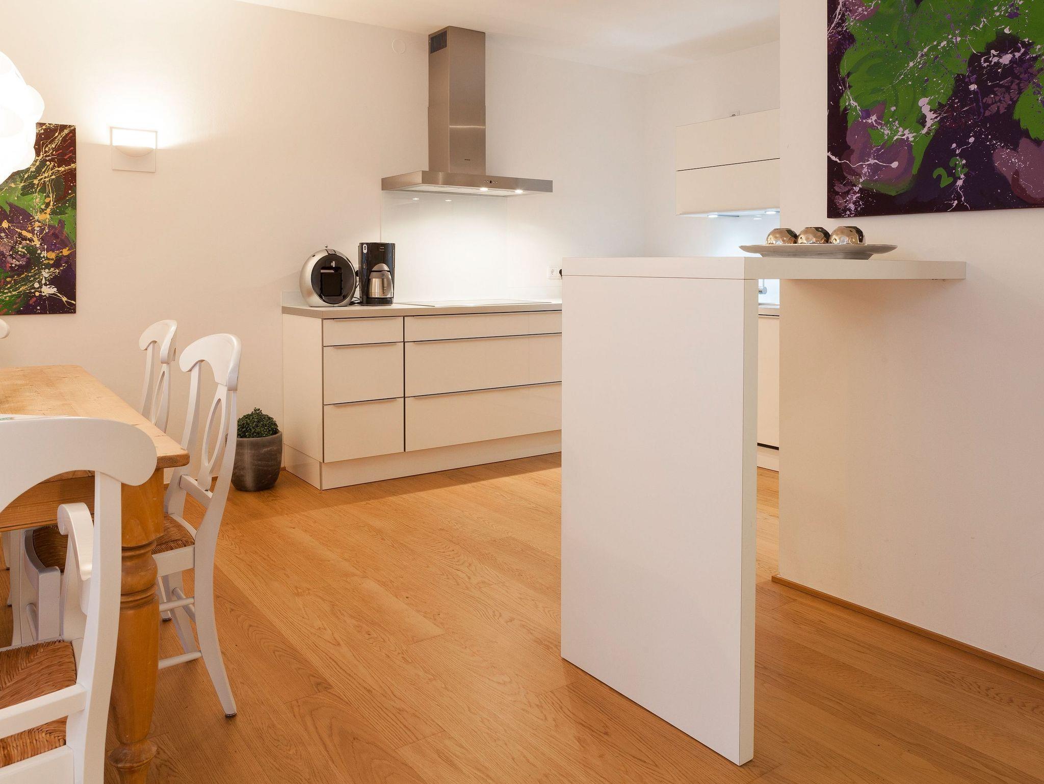 Die moderne, stilvoll eingerichtete Wohnung ist komplett mit Echtholzparkett ausgestattet. Alle Fensterelemente sind bodentief und mit elektrischen Außenjalousien versehen. Es gibt einen großzügigen Wohnraum mit Ethanolkamin, TV, Radio und WLAN[nbsp] und einen tollem Blick bis zur Ostsee. Die offene, moderne Einbauküche mit großzügigem Essbereich genügt höchsten Ansprüchen und verfügt über Mikrowelle, Backofen, Spülmaschine und Induktionskochfeld. Zwei separate Schlafzimmer (ein Doppelbett 200x200 und 2 Einzelbetten 80x200), ein weiterer TV mit integriertem DVD Laufwerk sowie ein modernes Bad mit großem, ebenerdigen Duschbereich und Fußbodenheizung stehen zur Verfügung. Die riesige, 50 qm große Terrasse ist mit Esstisch und Stühlen sowie mit gemütlichen Loungemöbeln ausgestattet, überdacht und windgeschützt. Herrlich zum Entspannen und den schönen Blick auf die Ostsee zu genießen. Das Haus am Meer verfügt über einen Fahrstuhl und eine Tiefgarage (Einfahrstshöhe 2 m), in der ein fester Stellplatz reserviert ist. Ein Fahrradkeller, Münzwaschmaschine und -Trockner sind vorhanden. Für unsere kleinen Gäste befindet sich auf der Gartenseite des Hauses ein Spielplatz.