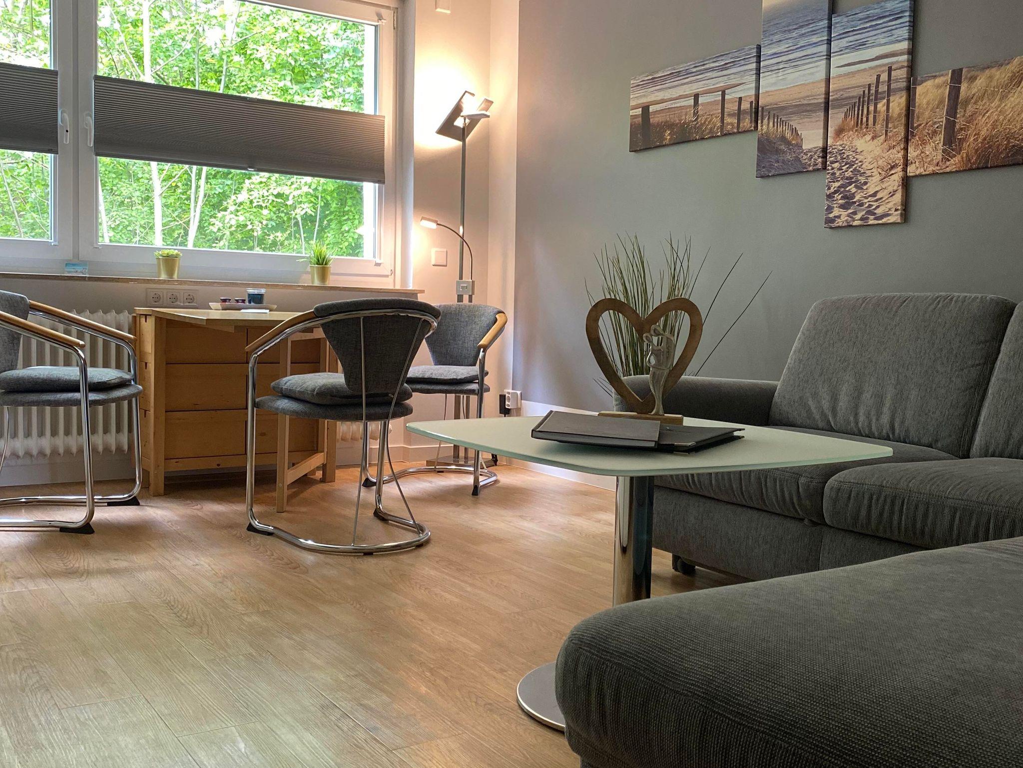 Das komplett ausgestattete Appartement mit Küche zur Selbstversorgung, Bad mit ebenerdiger Dusche und Fenster, Schlafzimmer und Wohnzimmer mit Unterhaltungsentertainment sowie zusätzlicher Schlafmöglichkeit befindet sich ruhig gelegen am Kurpark, im Hochparterre zwischen Sand, Strand und Naturschutzgebiet.